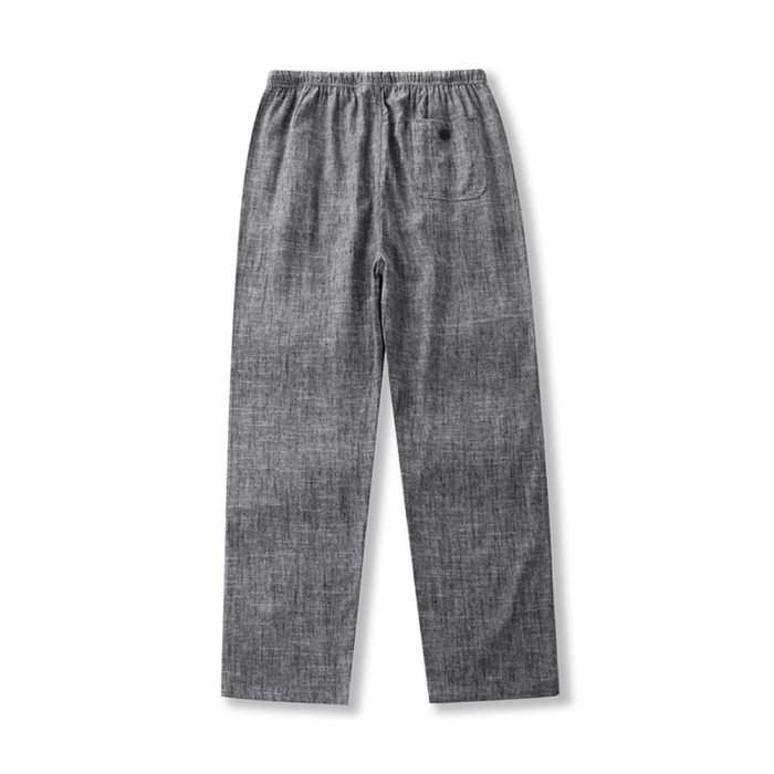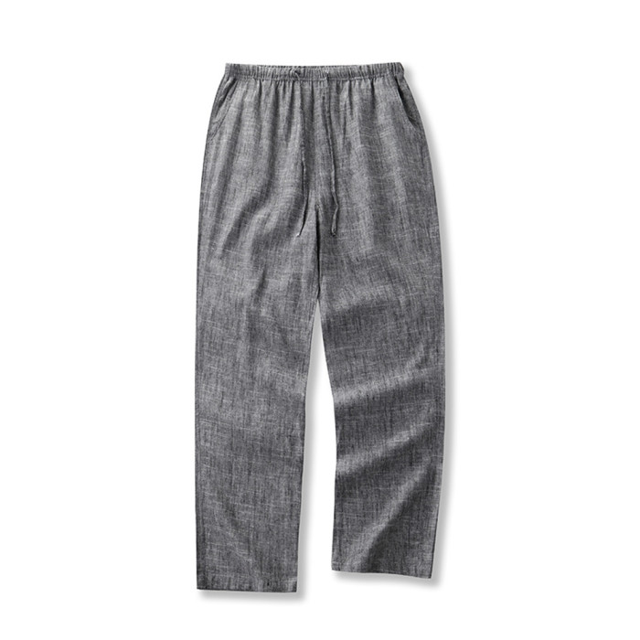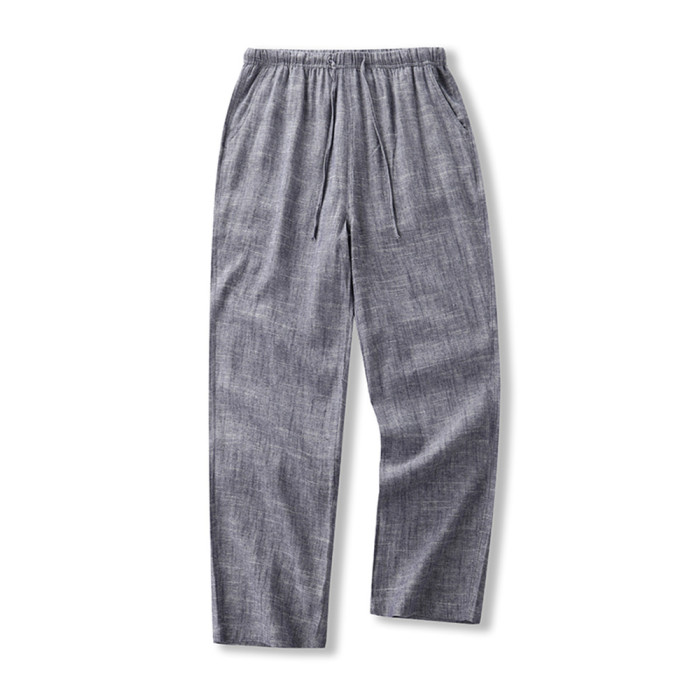 夏季男士薄款亞麻長褲松緊腰深襠褲中老年寬松版棉麻濶腿褲直筒褲