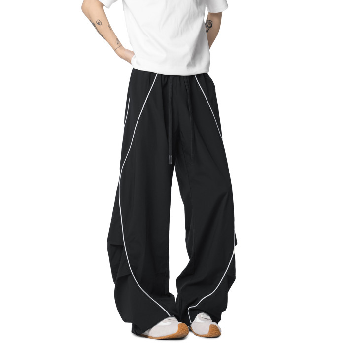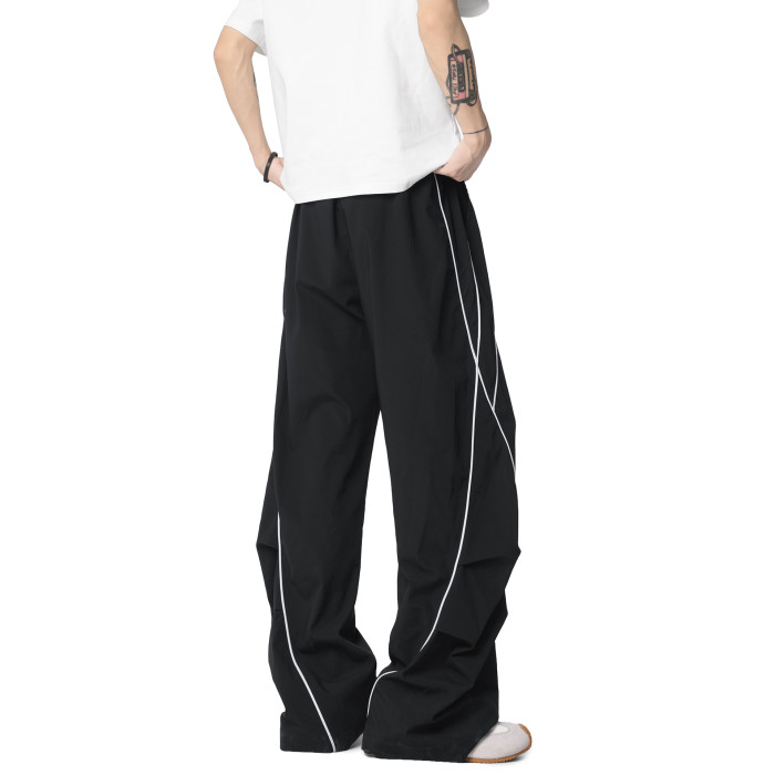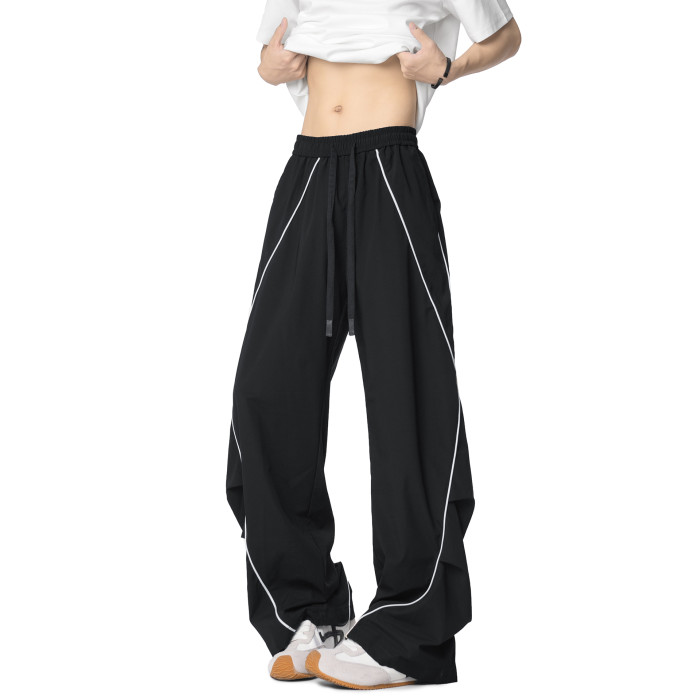 51嘻哈美式潮牌反光條運動休閒長褲男街頭hiphop彎刀寬松濶腿褲子
