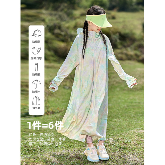 兒童防曬衣女童夏季輕薄冰絲皮膚衣大童防紫外線全身長款速乾外套