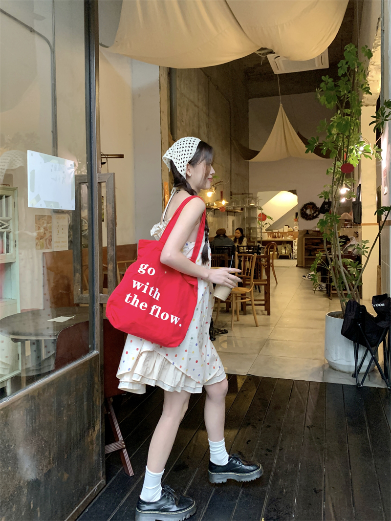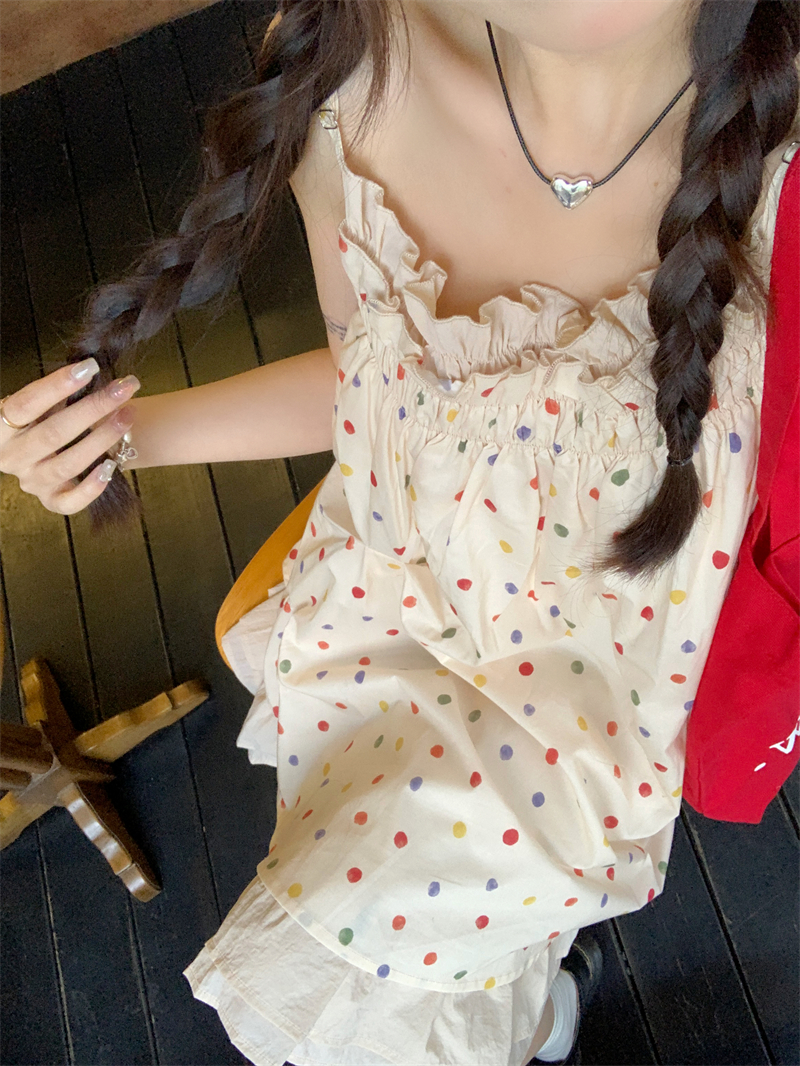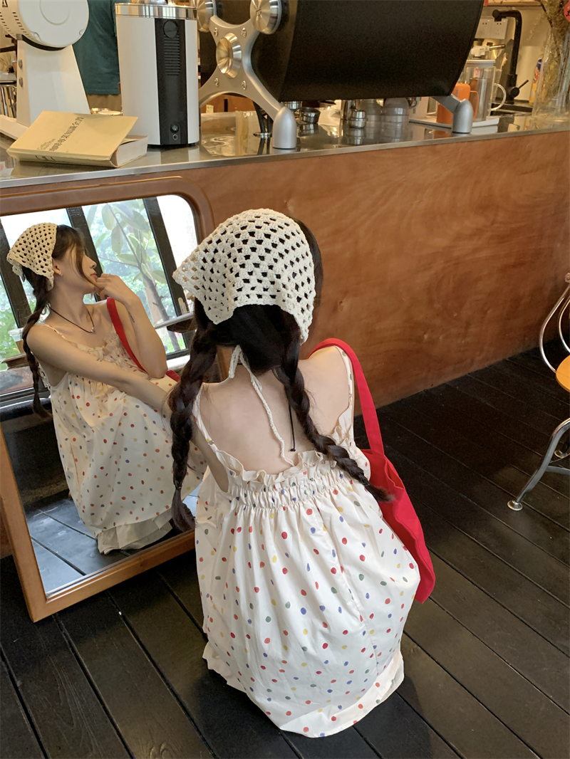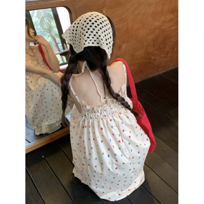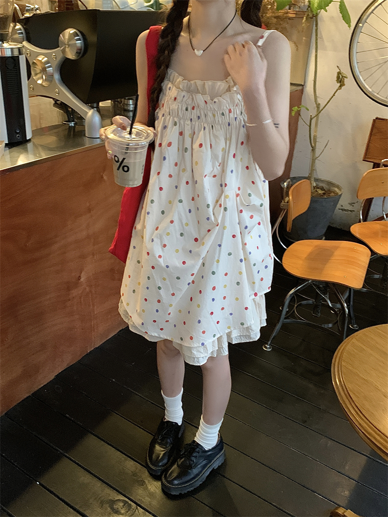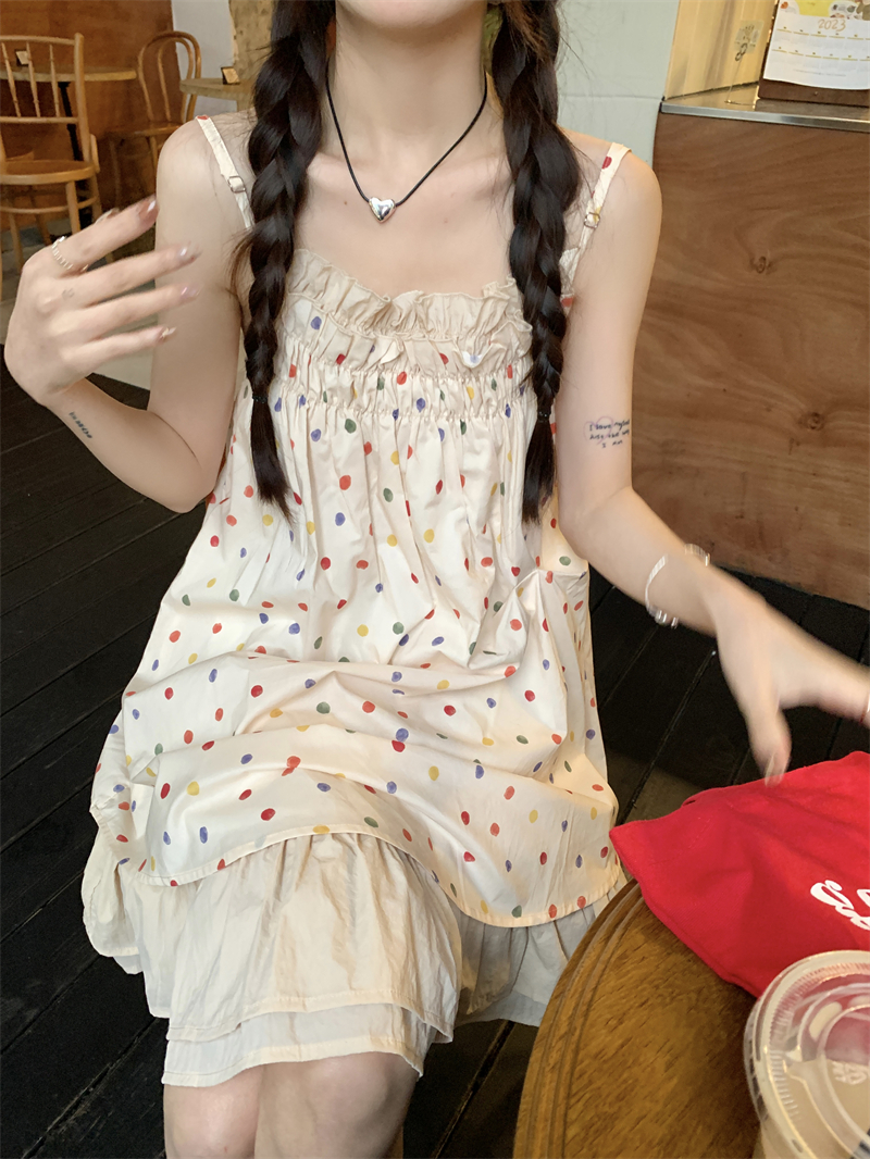 我在外面有 “告白氣球”日系小衆復古少女波點吊帶連衣裙女夏
