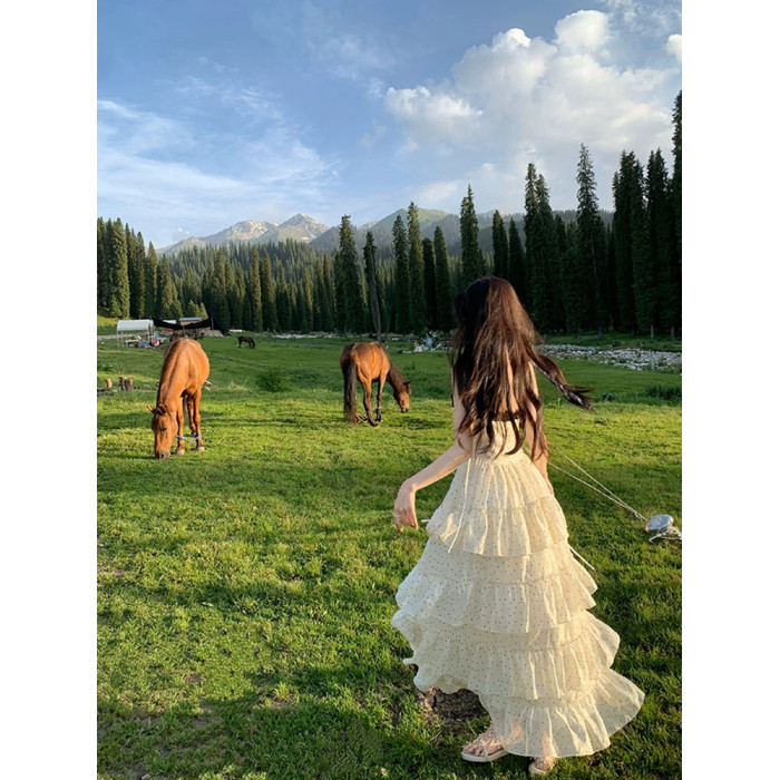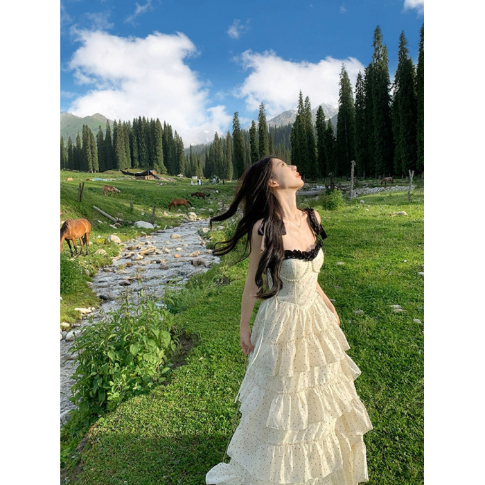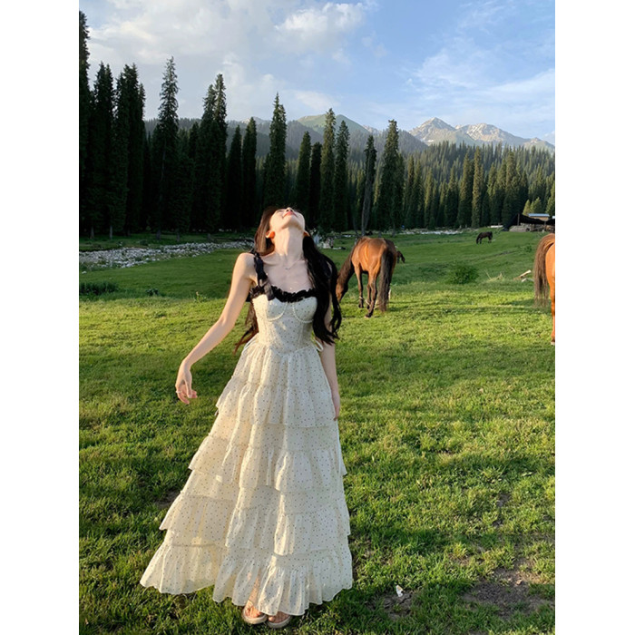 法式風波點連衣裙女絕美氣質抹胸吊帶裙子收腰顯瘦蛋糕長裙夏季裝