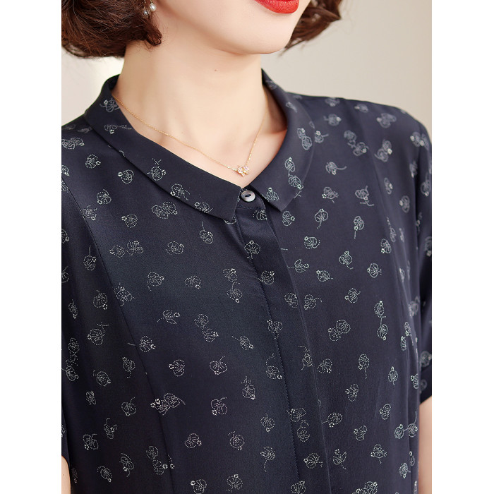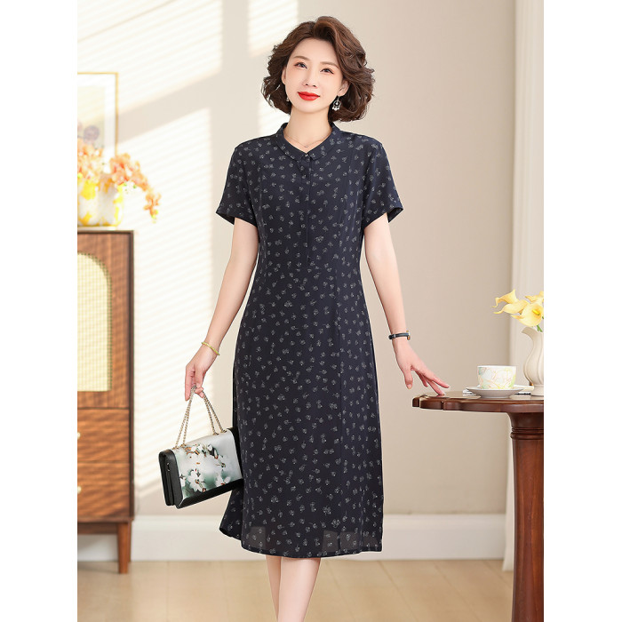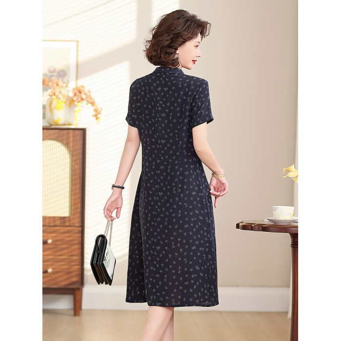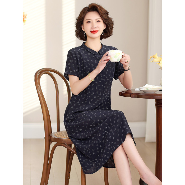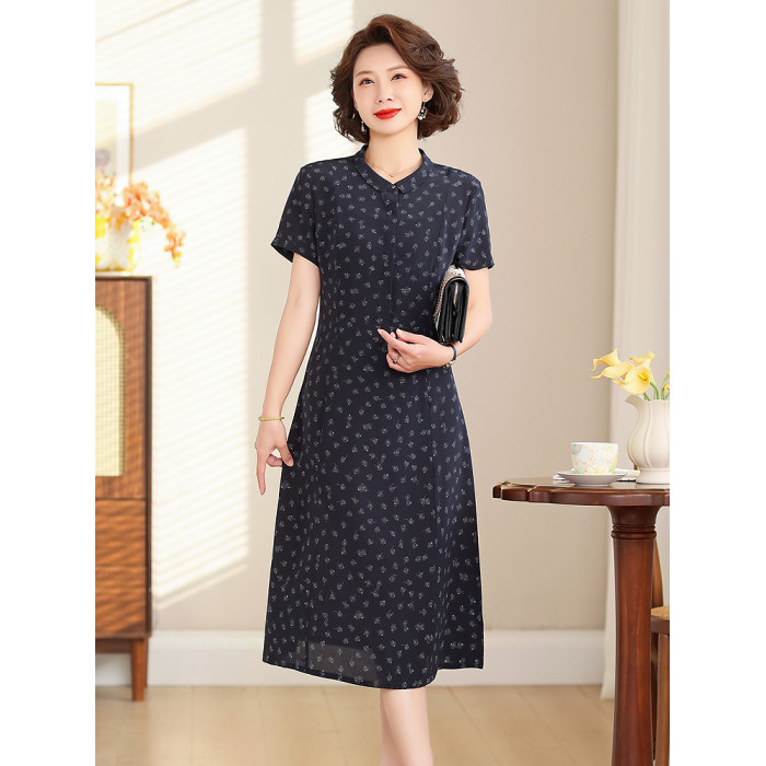 齊黛品牌真絲桑蠶絲連衣裙國際大牌2025春夏新款小個子媽媽A字裙