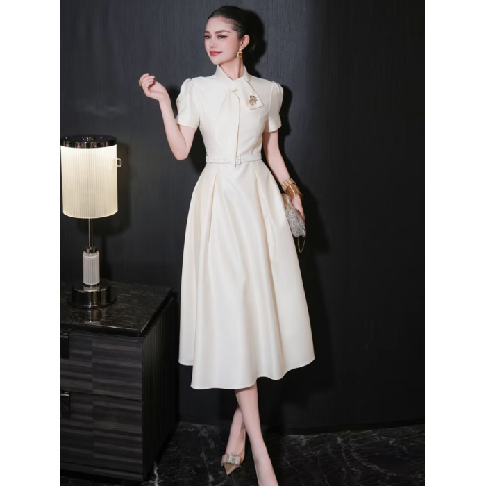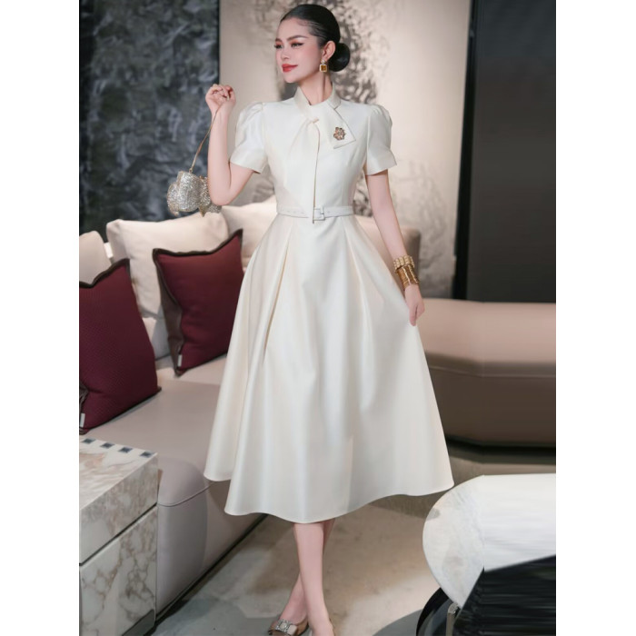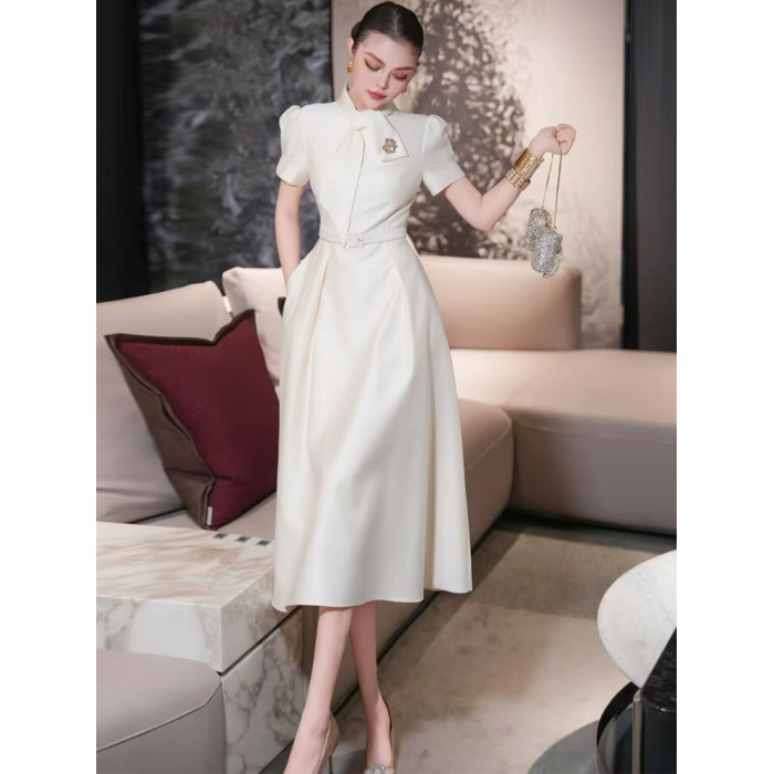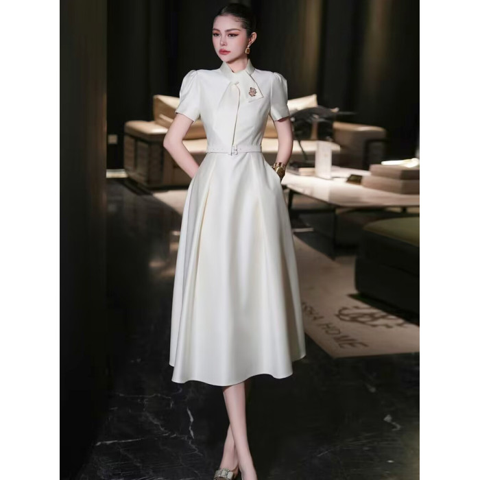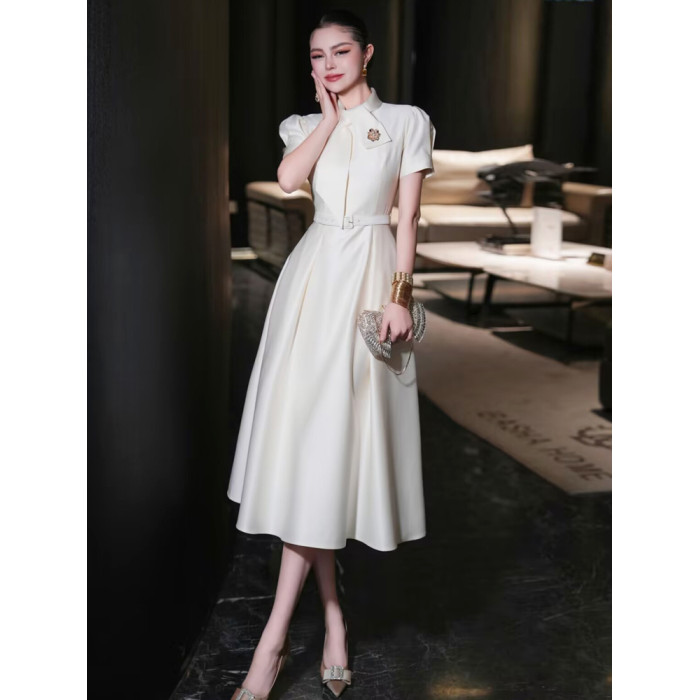歐洲站2025年夏季新款高級輕奢場合女裝法式氣質長裙女白色連衣裙