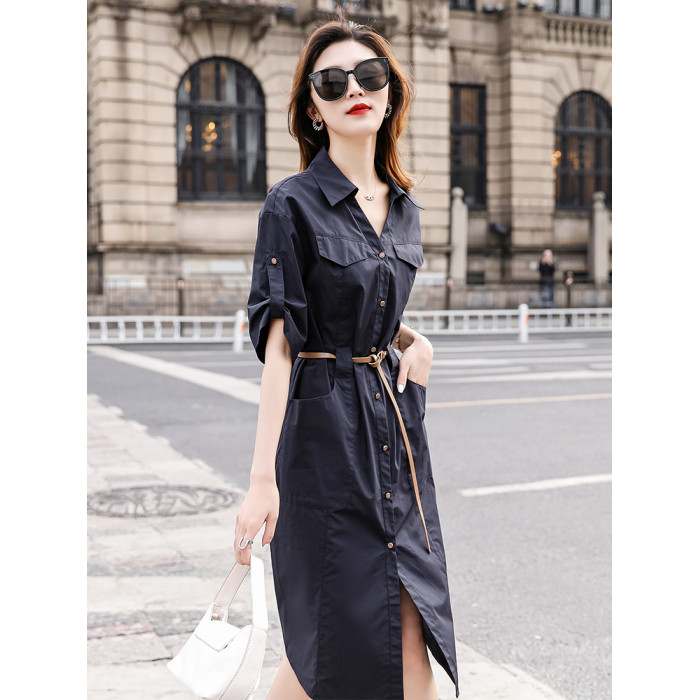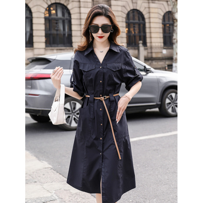 歐貨連衣裙女2025夏季新款高級感茶歇法式氣質OL收腰顯瘦襯衫裙子