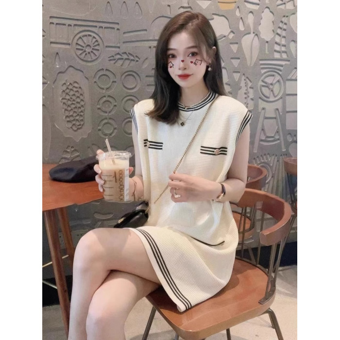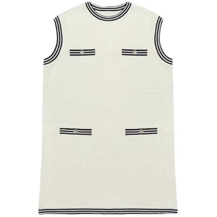 歐洲站2025新款時尚高級感洋氣減齡小個子無袖背心白色連衣裙女夏
