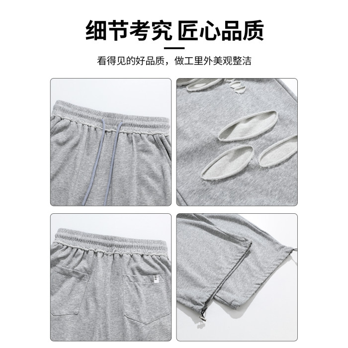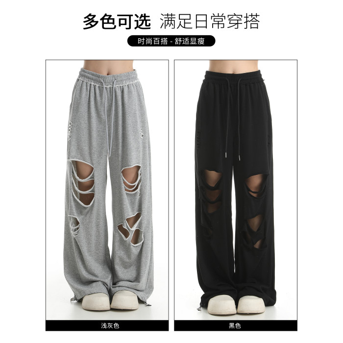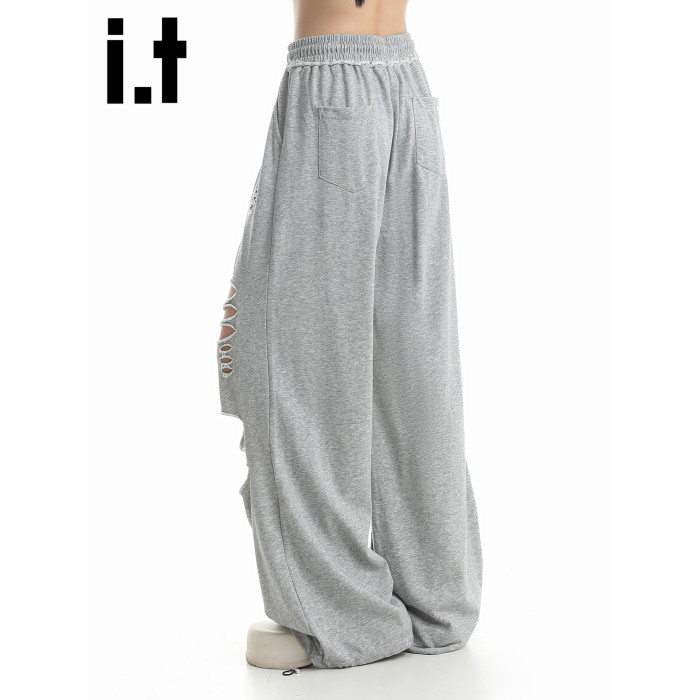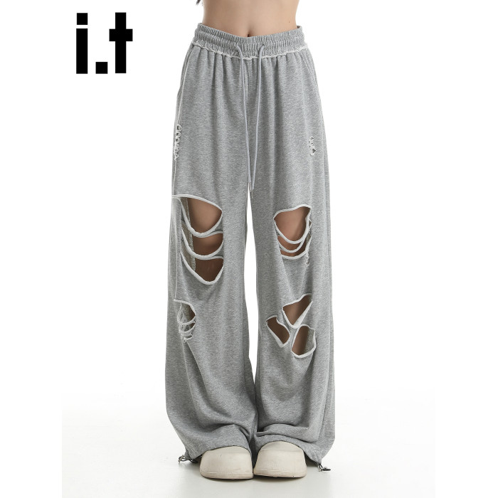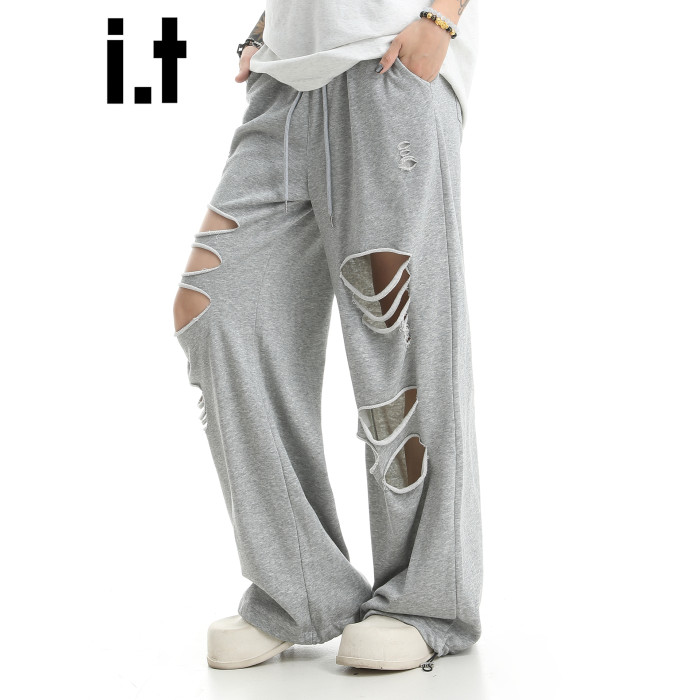it :5cm/FIVECM美式乞丐風破洞松緊腰濶腿褲男女2025夏季寬松長褲