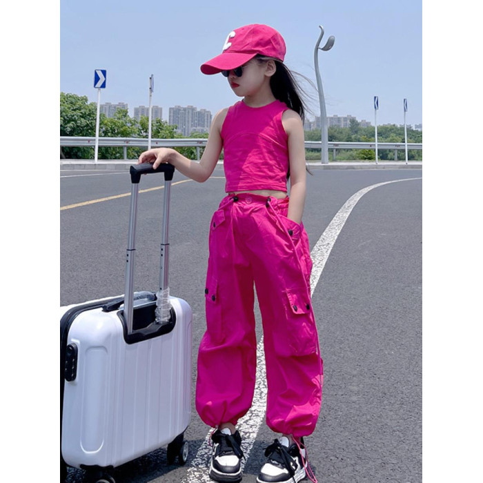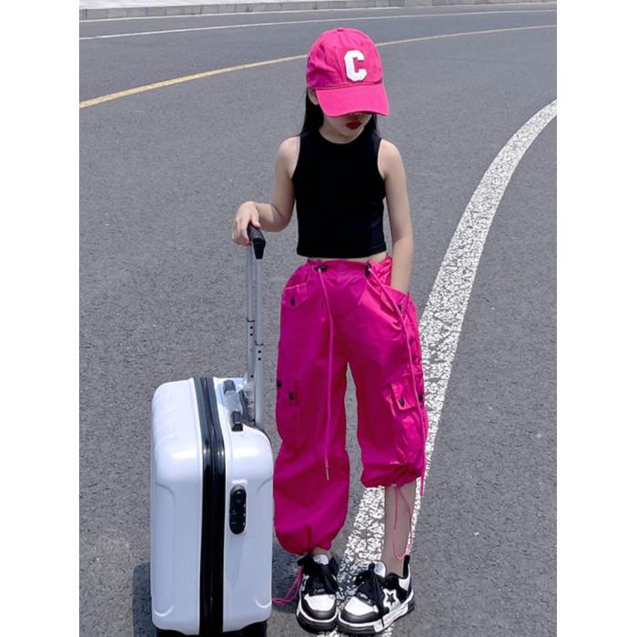 女童韓版工裝褲2025秋季新款中大童休閒百搭寬松束腳高腰炸街長褲