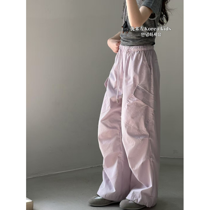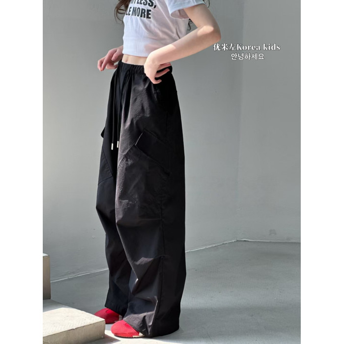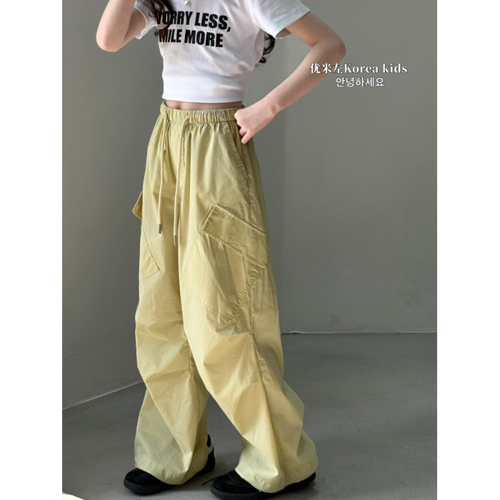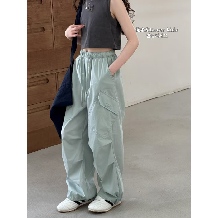 優米左女童工裝褲2025新款洋氣兒童夏裝褲子女孩寬松休閒褲夏天薄