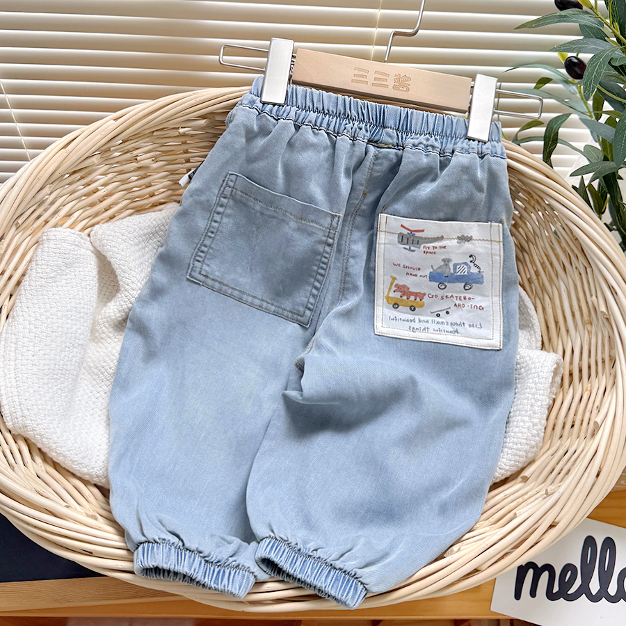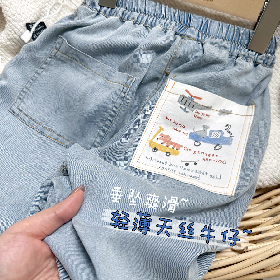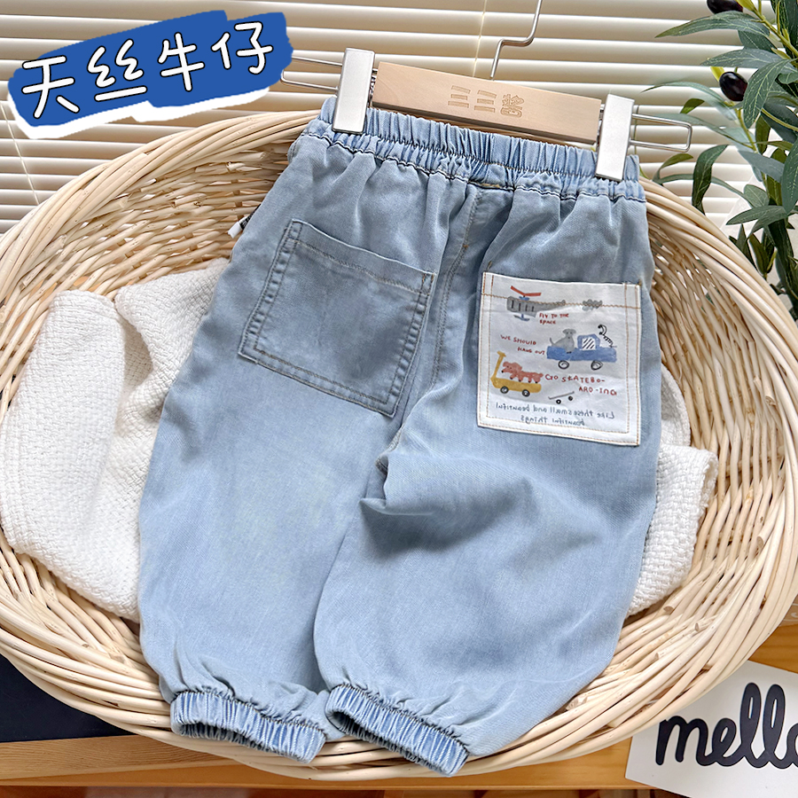 男童天絲軟牛仔褲夏季兒童輕薄褲子寶寶長褲運動褲小童寬松防蚊褲