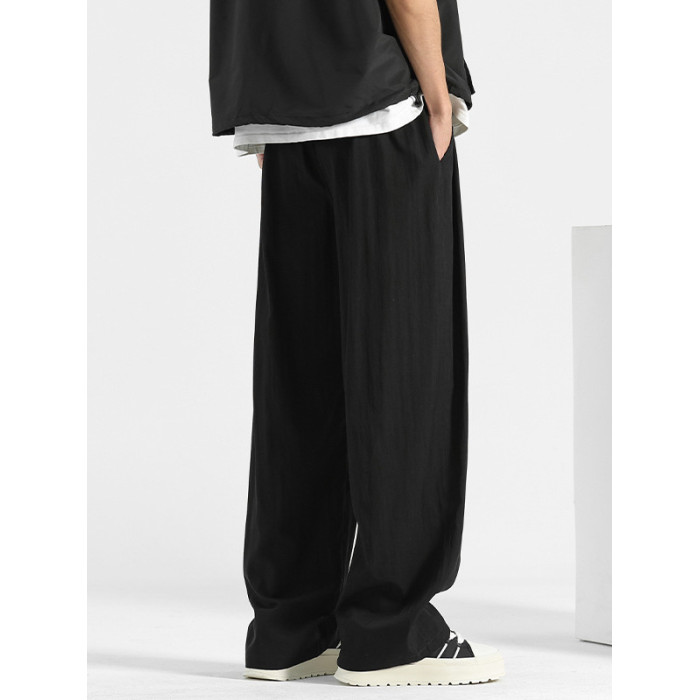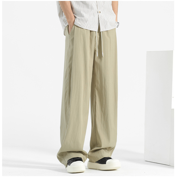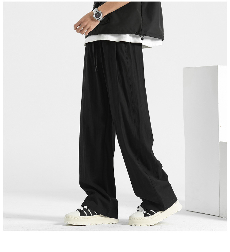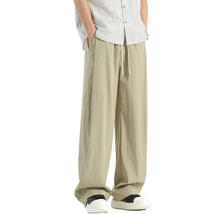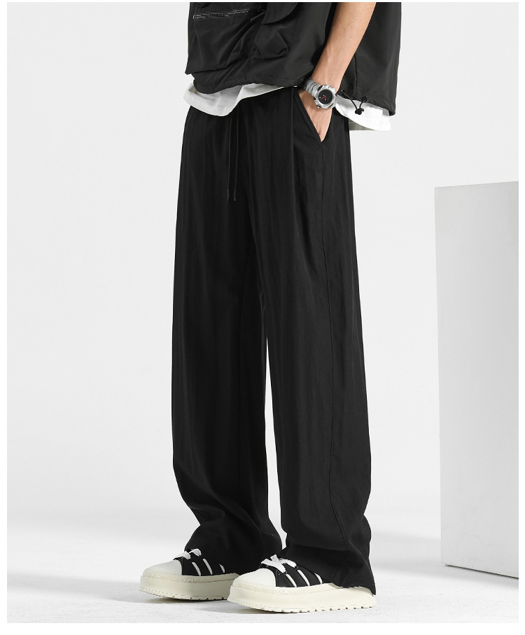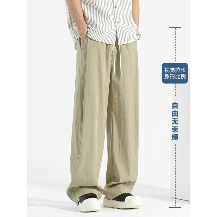 火焰達人夏季冰絲速乾褲男士潮流濶腿褲高級感休閒直筒亞麻長褲子