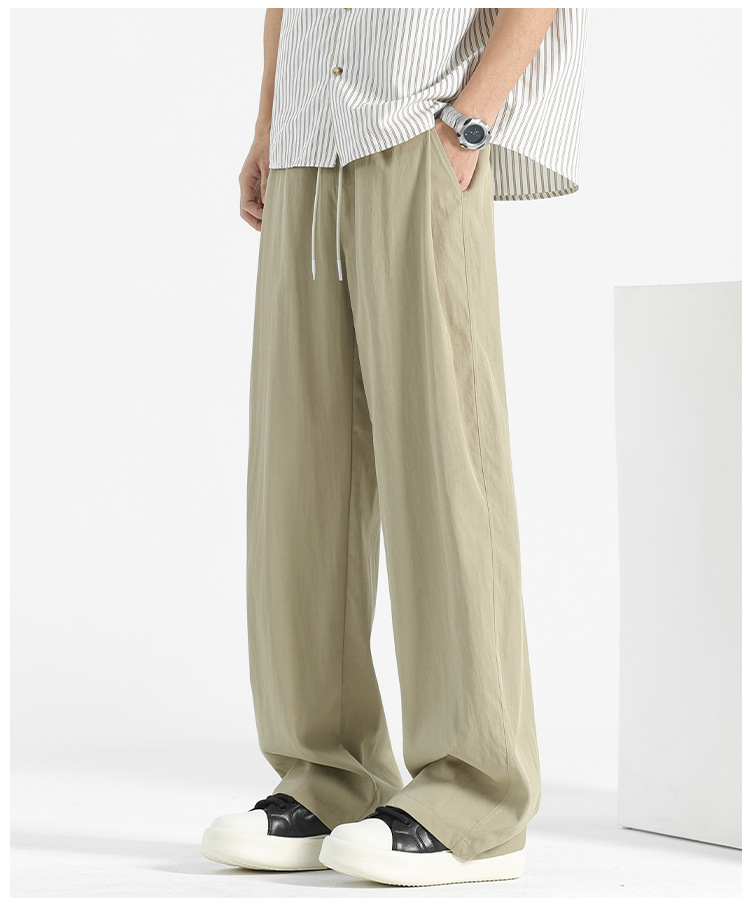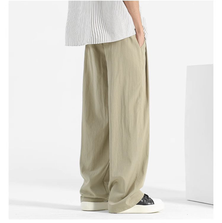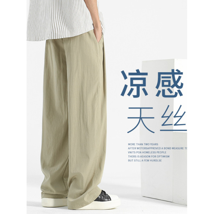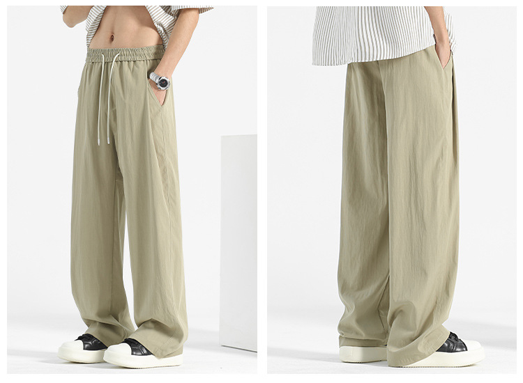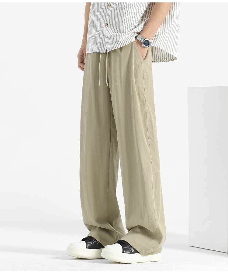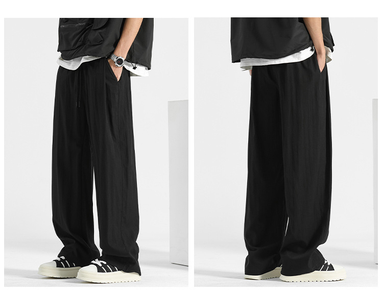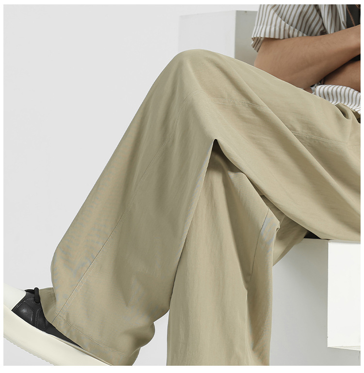 火焰達人夏季冰絲速乾褲男士潮流濶腿褲高級感休閒直筒亞麻長褲子