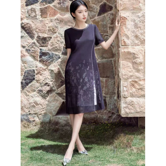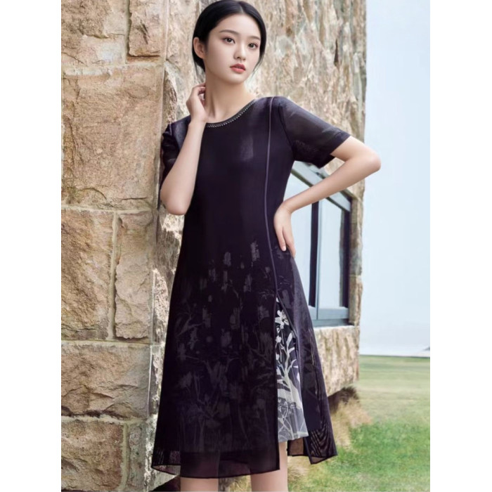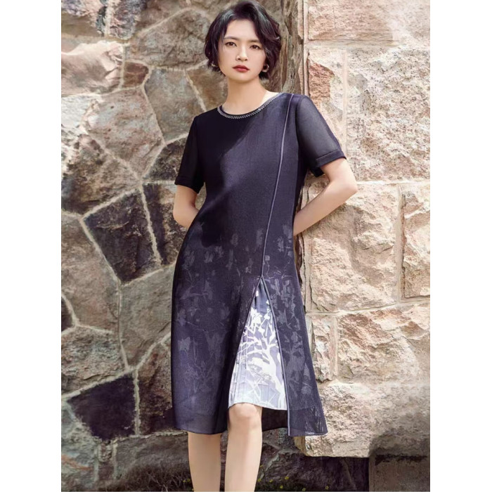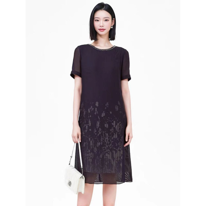 娜家新品2025商場同款時尚簡約氣質修身顯瘦曡映壓褶絞綜連衣裙子