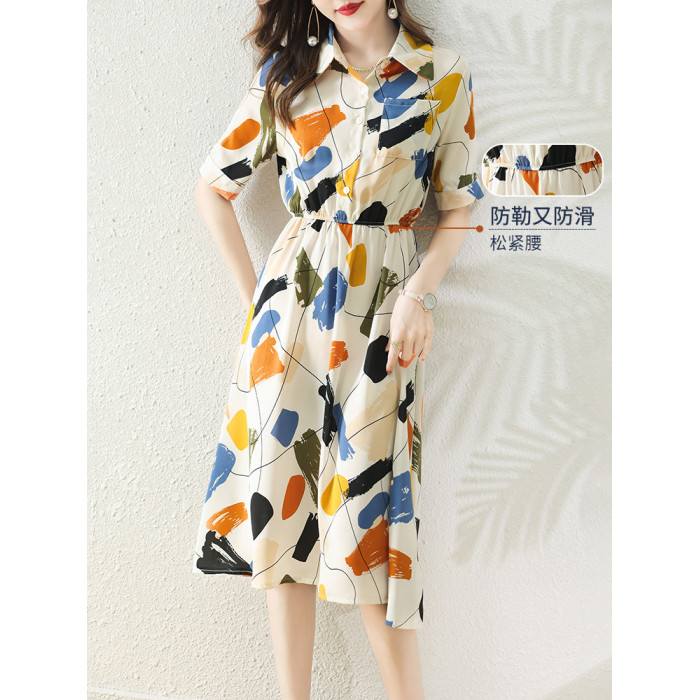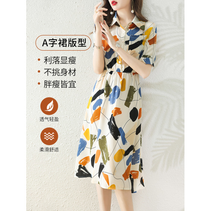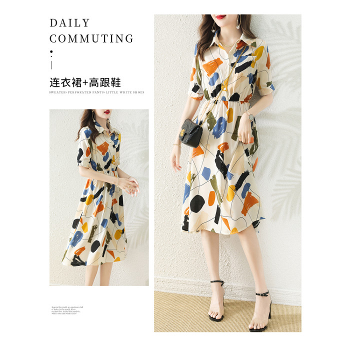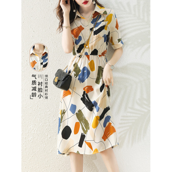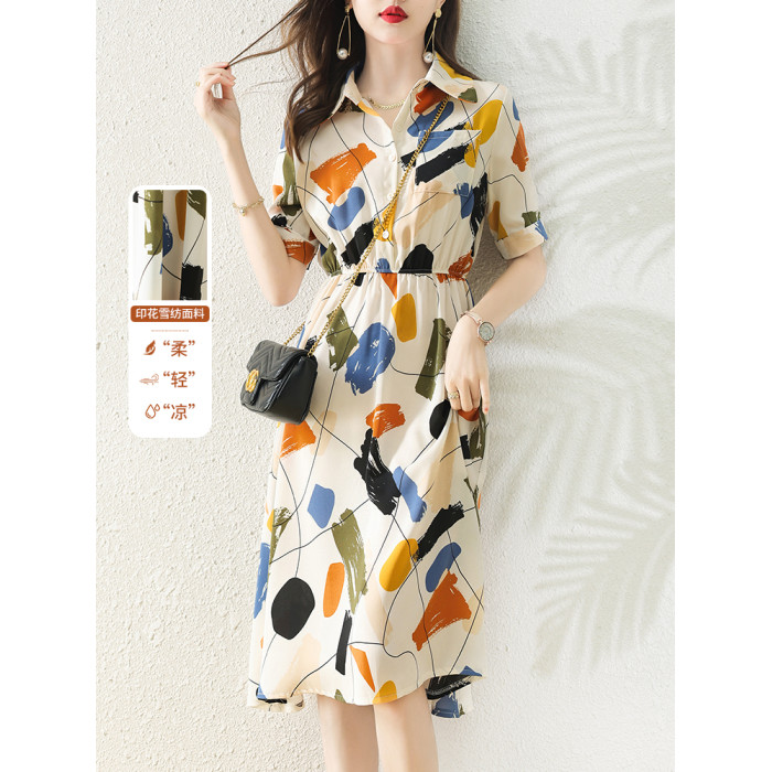 襯衫式短袖雪紡連衣裙女夏季2025新款氣質輕奢高級感小個子長裙子