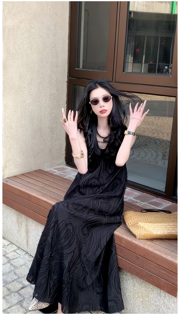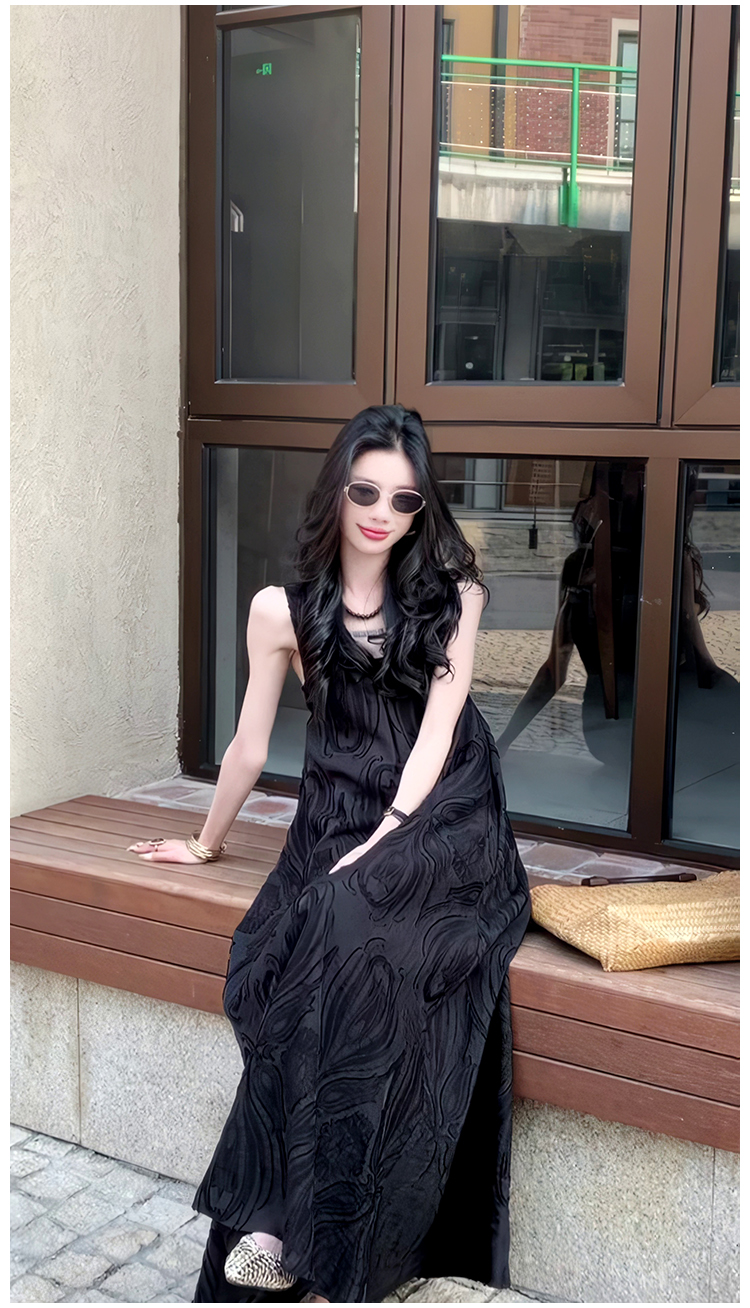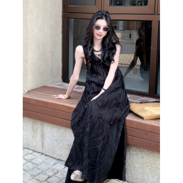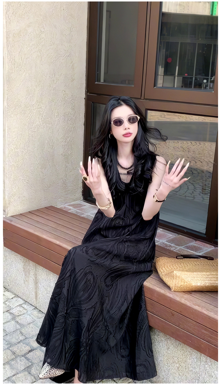 極簡風氣質提花高級V領連衣裙2025夏季新款小衆輕奢禮服長裙女裝