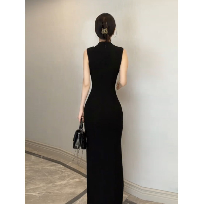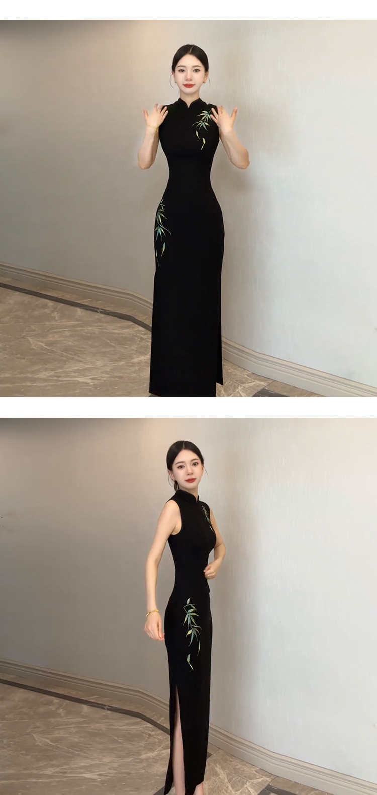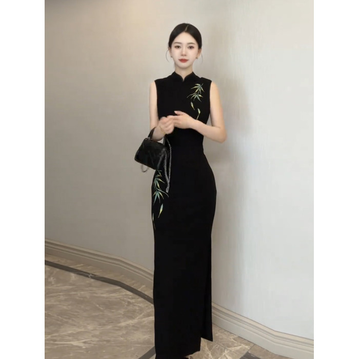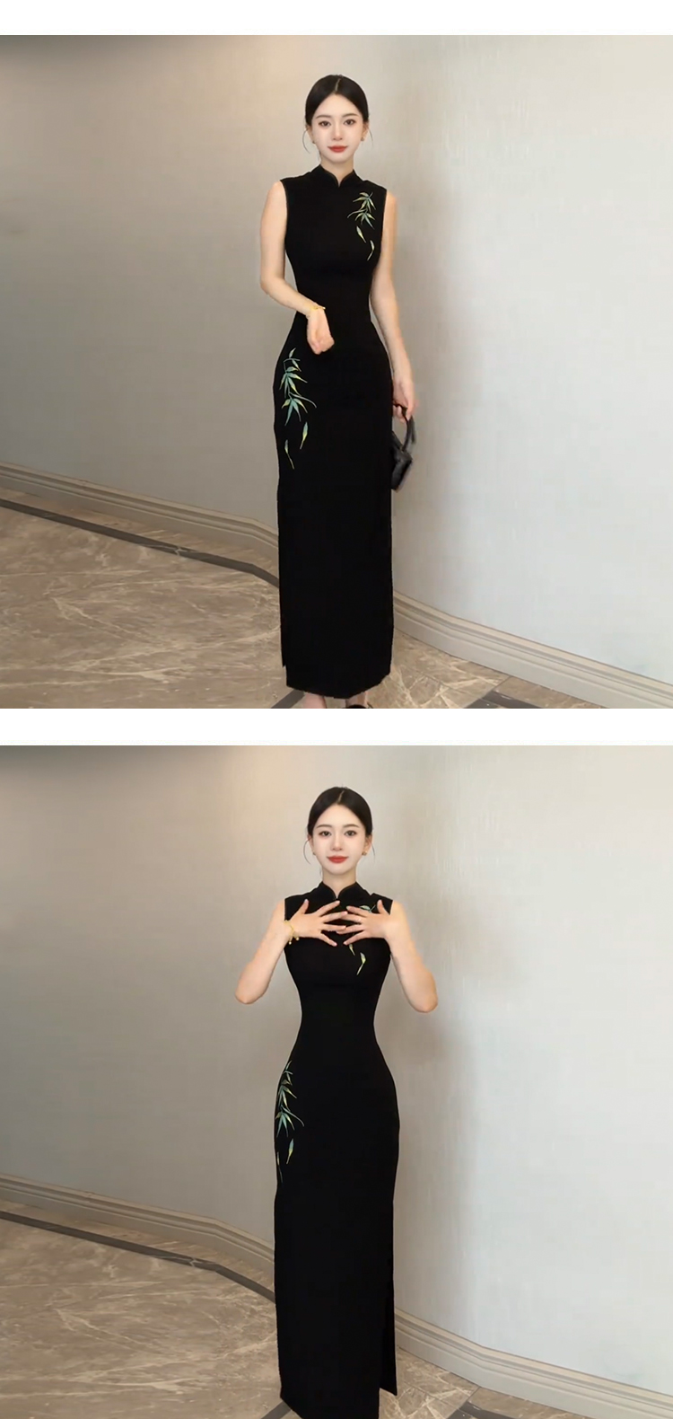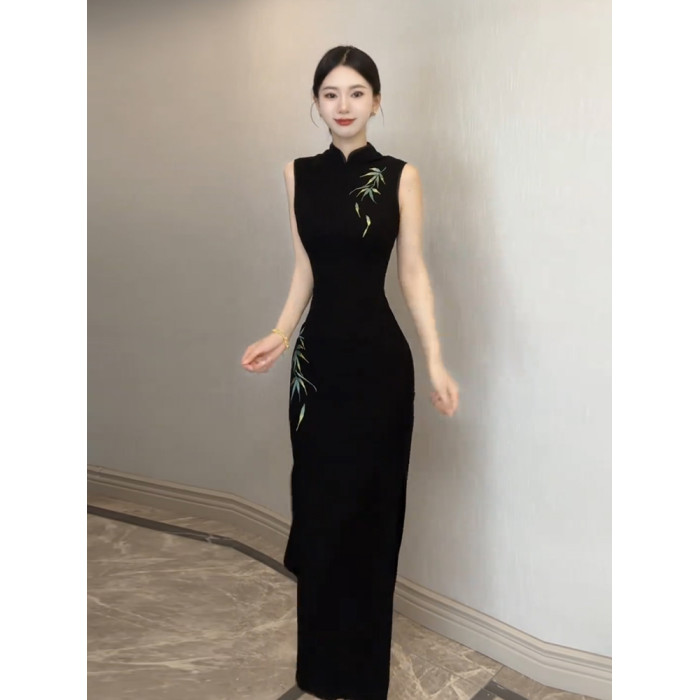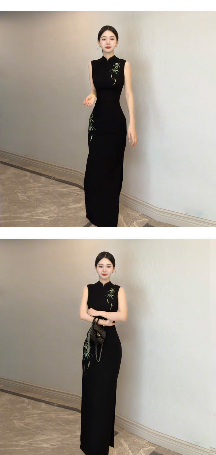 【加長版】高個子170夏季新中式包臀長裙修身刺綉旗袍無袖連衣裙