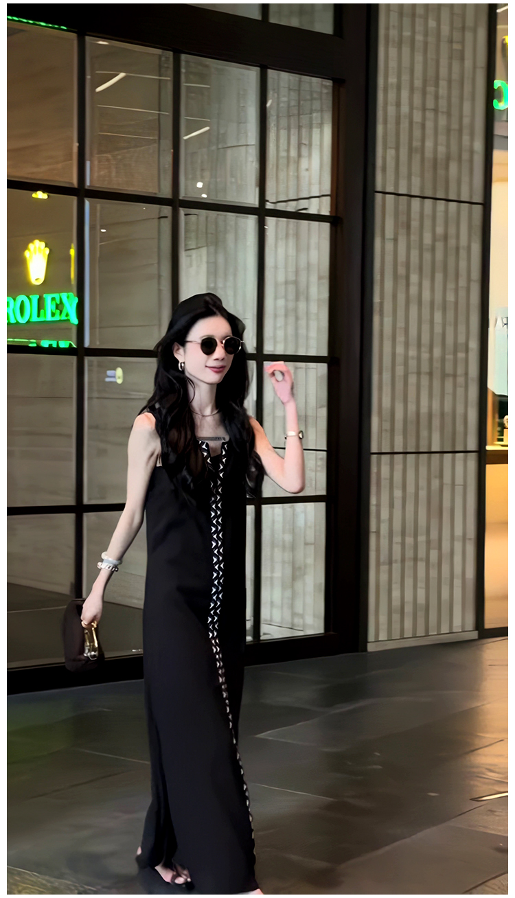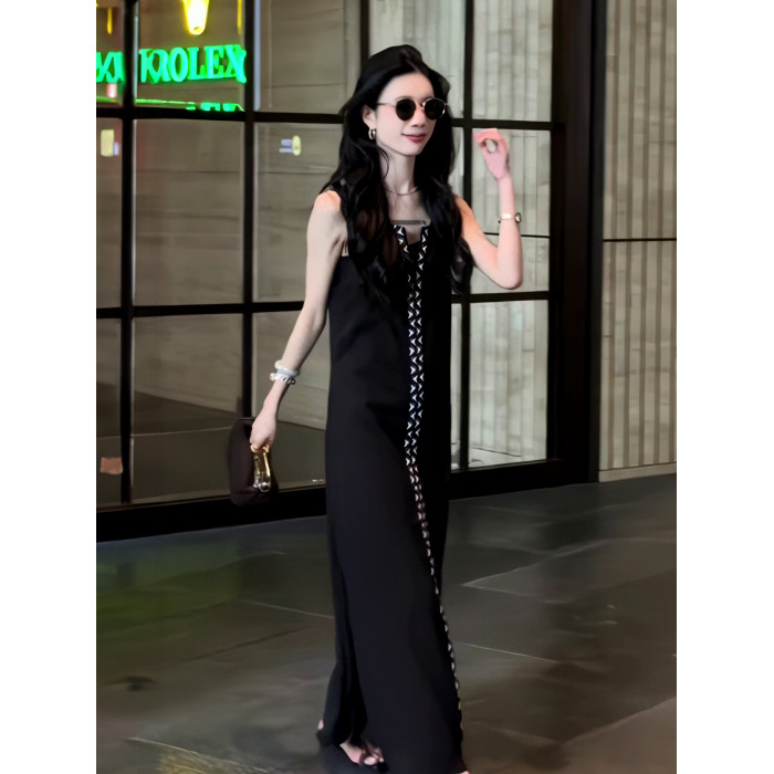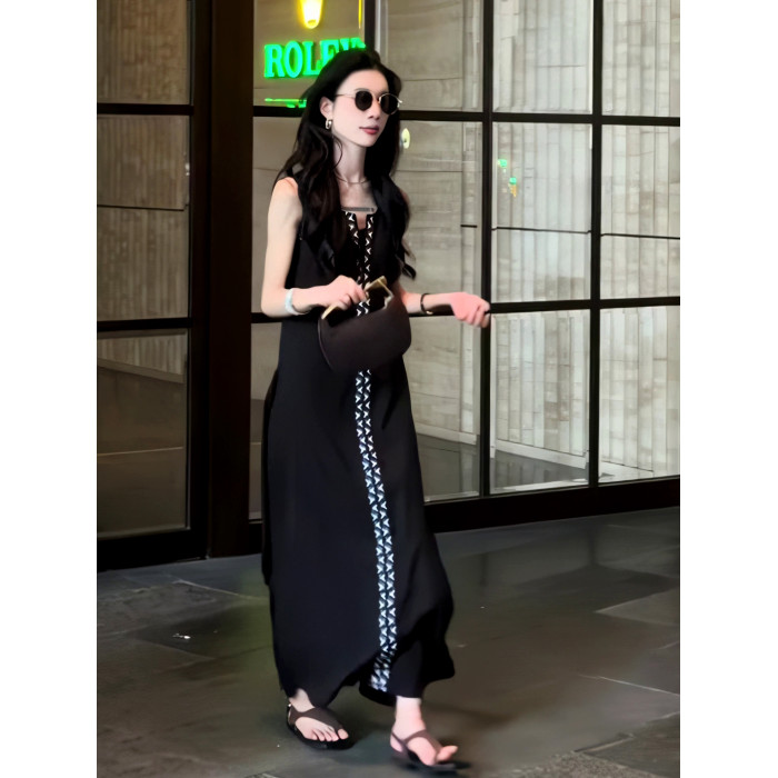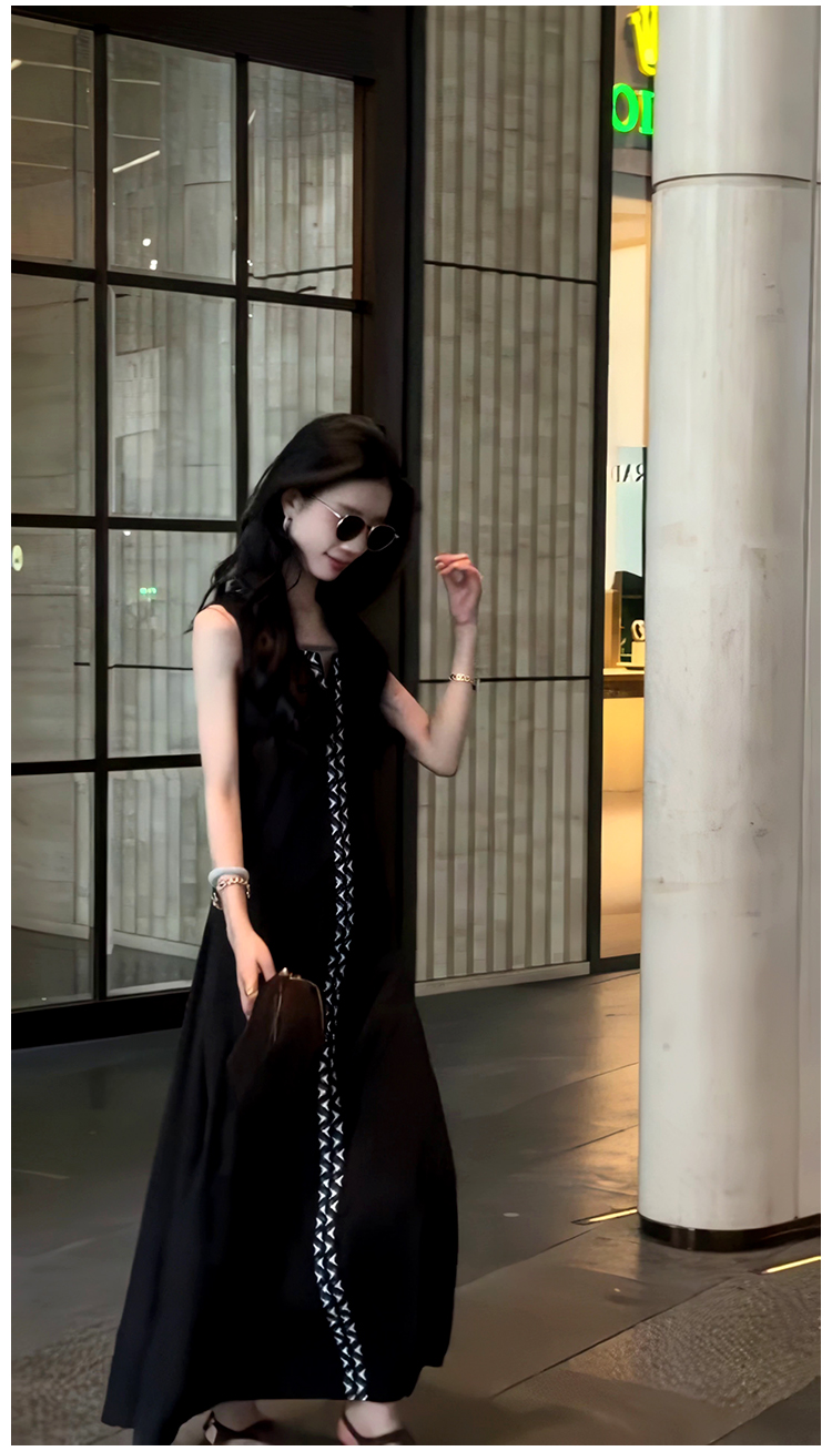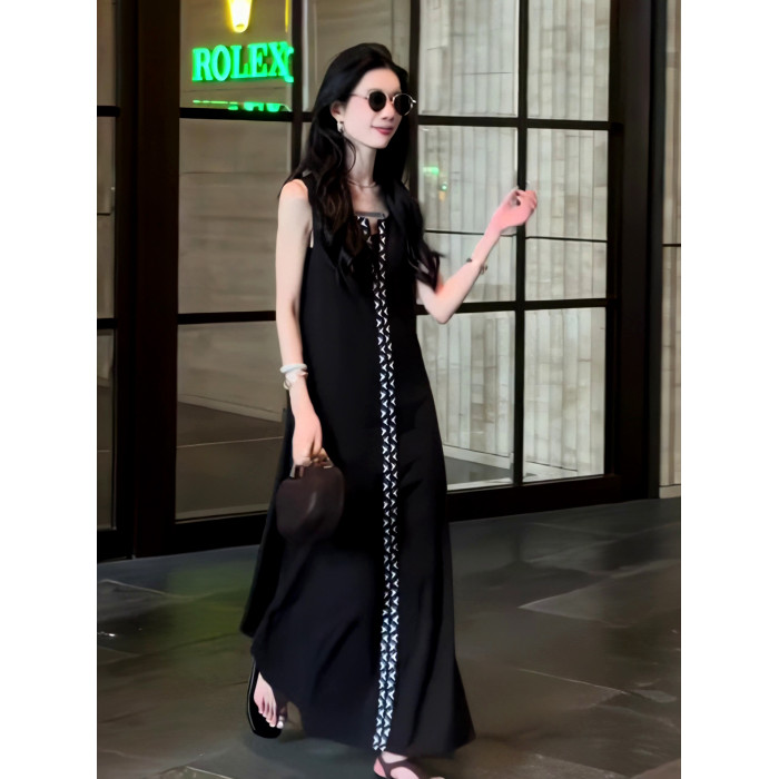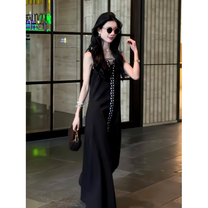 小衆設計感黑色無袖背心連衣裙女2025夏季新款高級氣質顯瘦長裙子