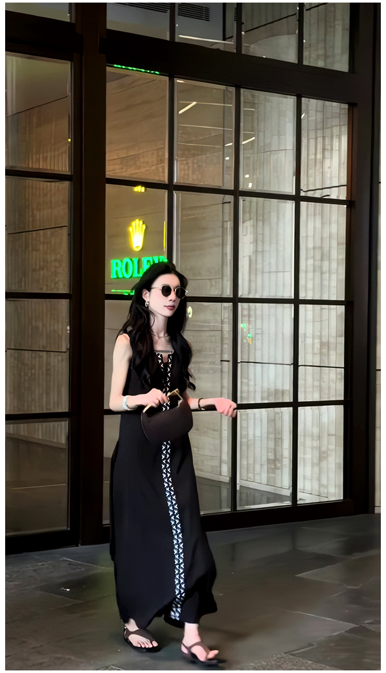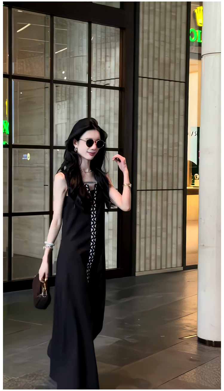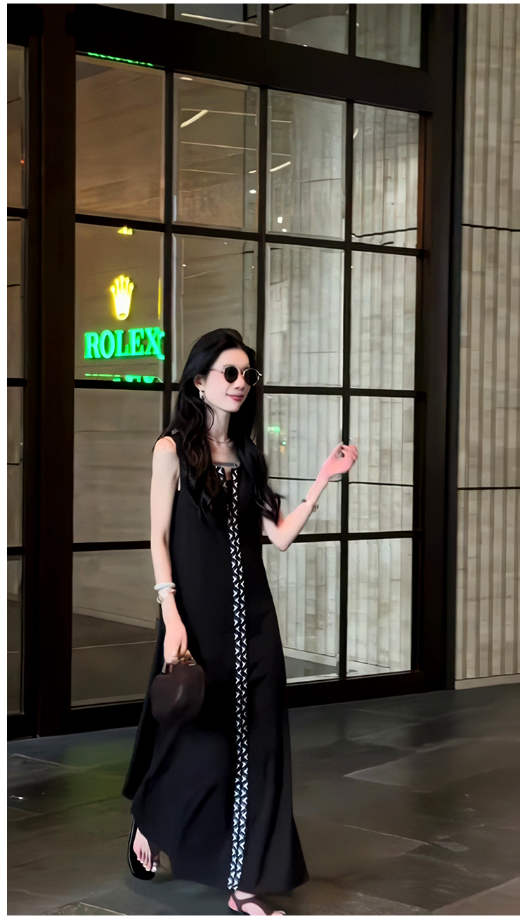 小衆設計感黑色無袖背心連衣裙女2025夏季新款高級氣質顯瘦長裙子
