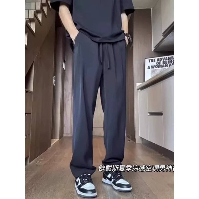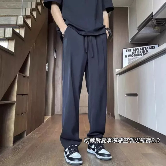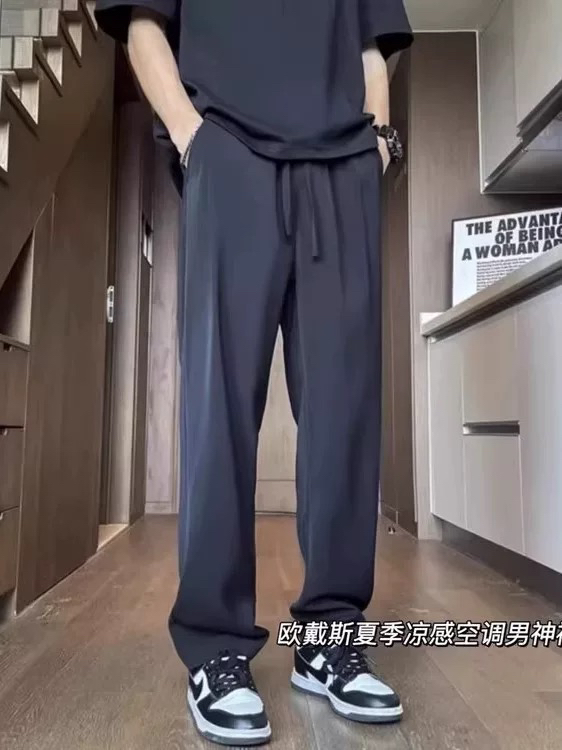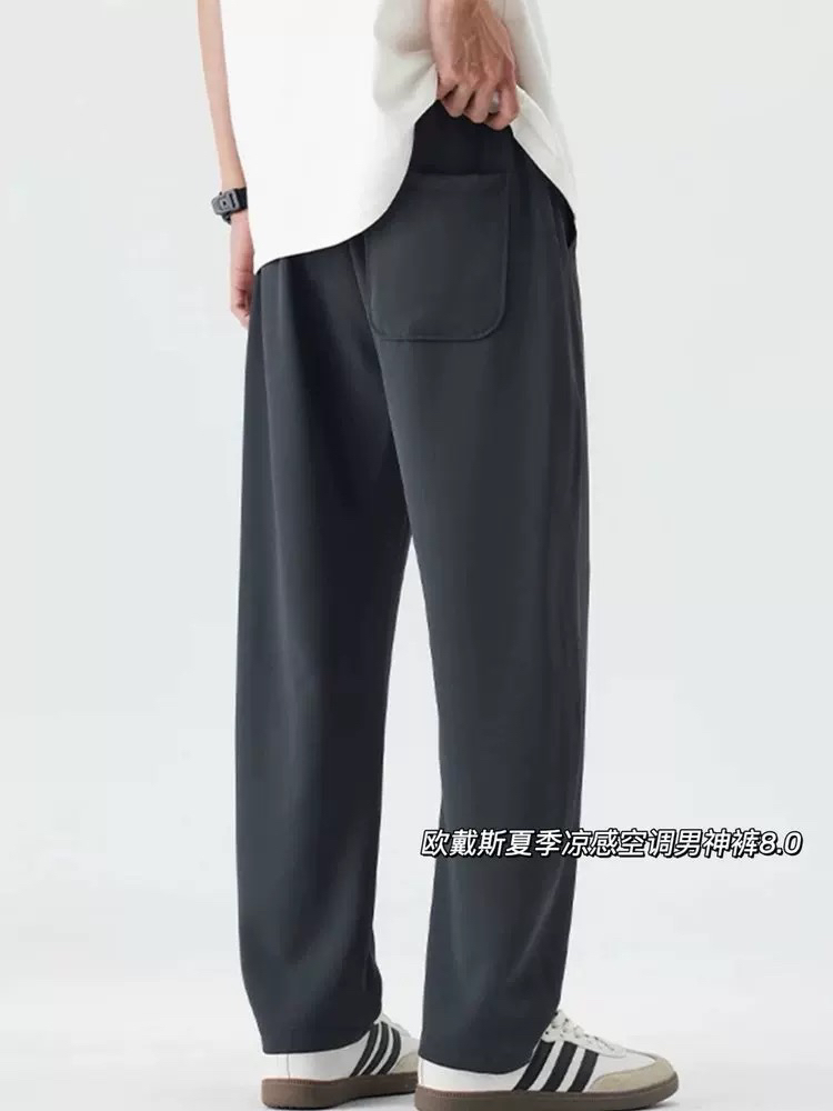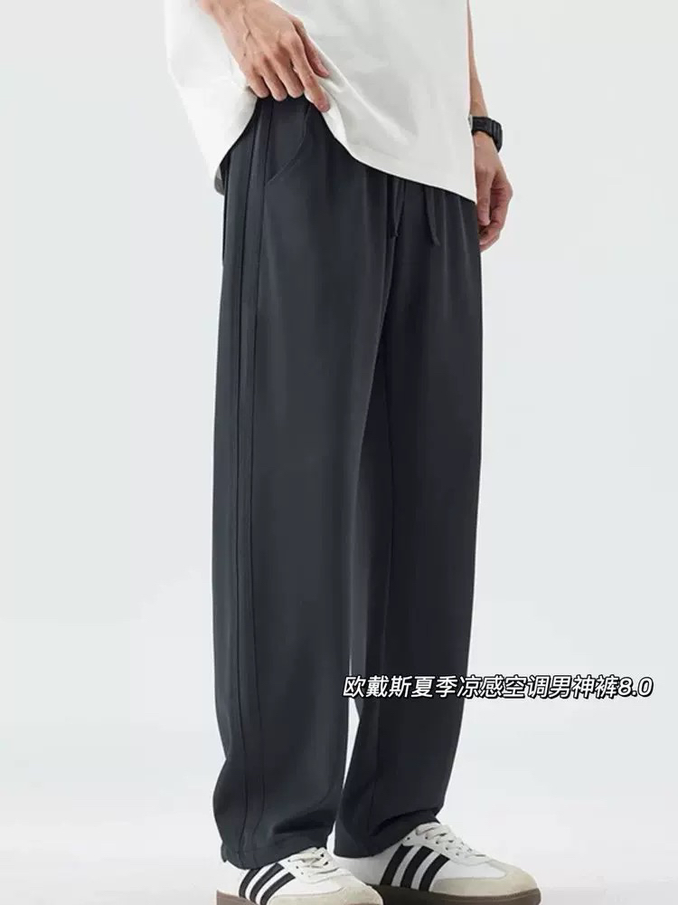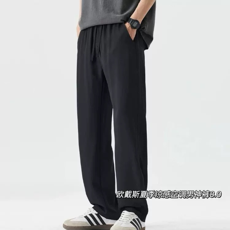 歐戴斯2025年夏季新款冰絲涼感薄款休閒褲男寬松直筒濶腿褲長褲子