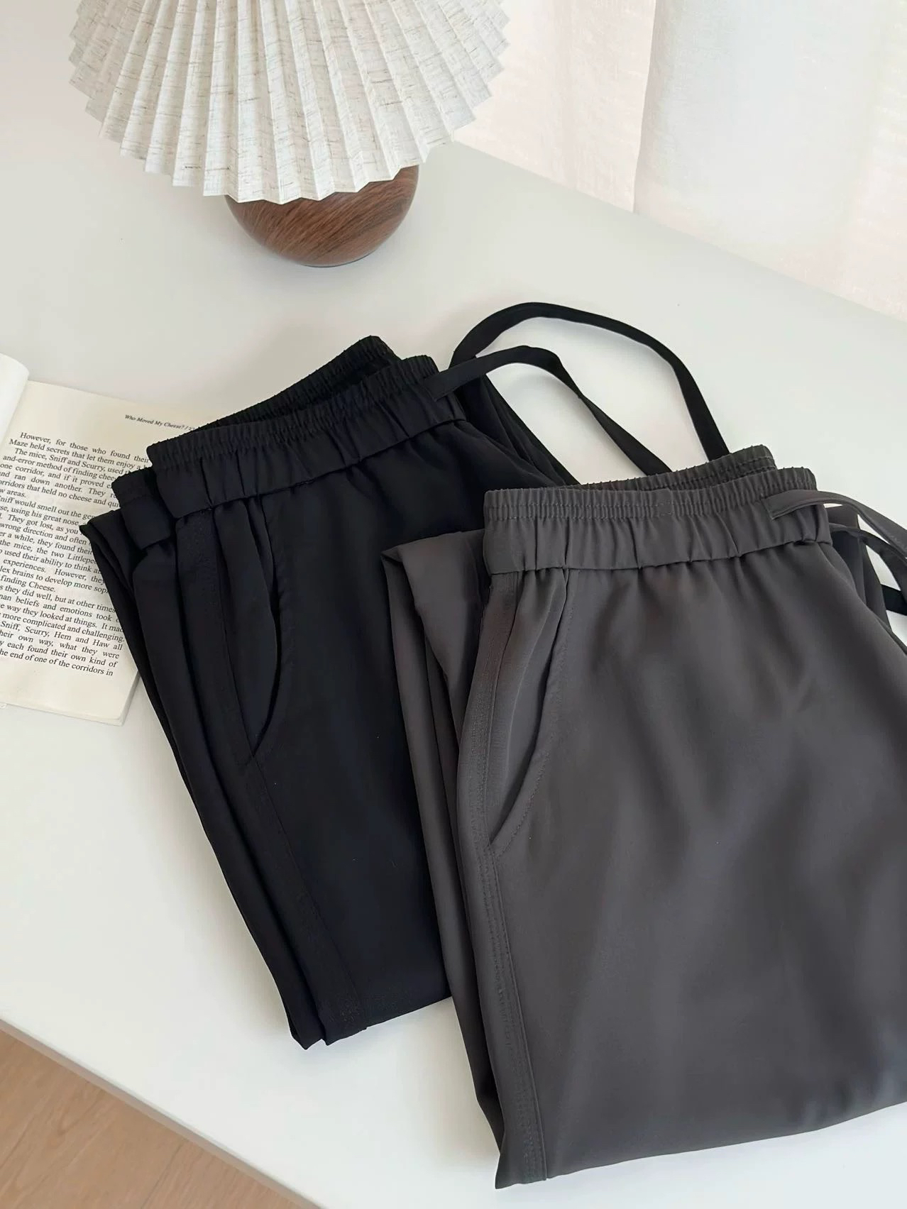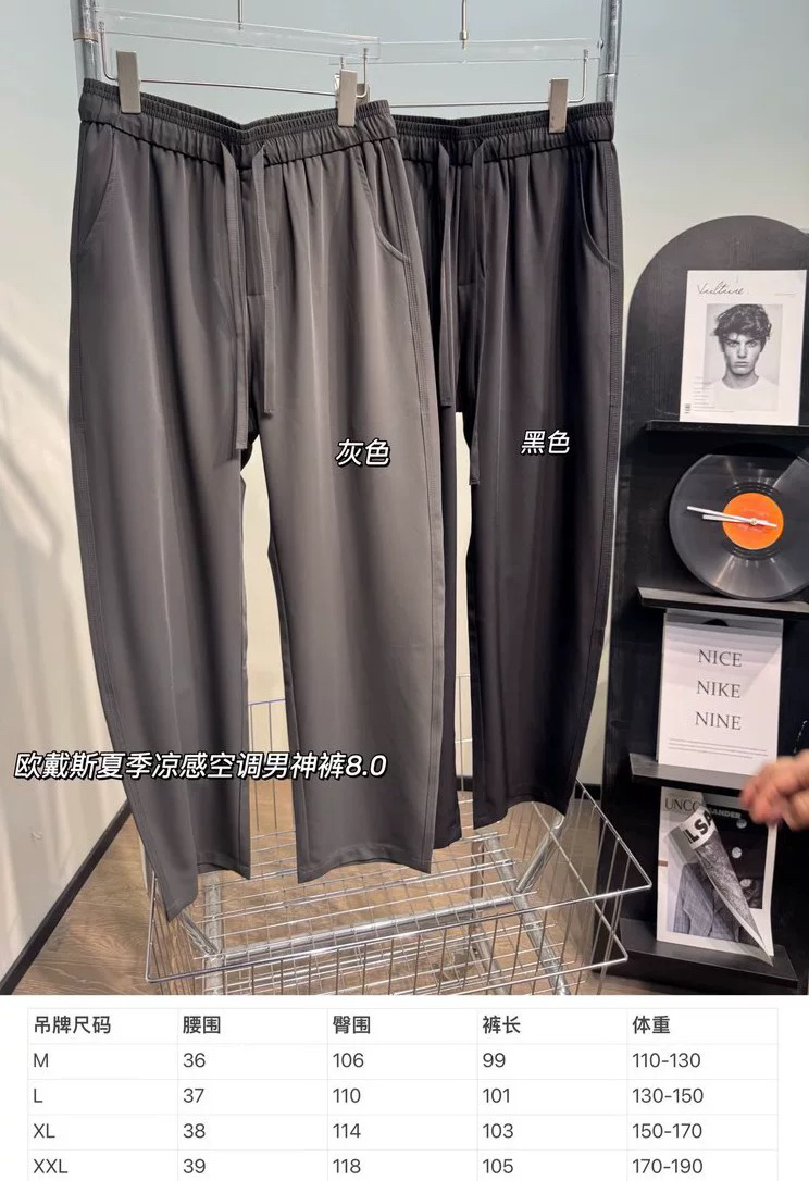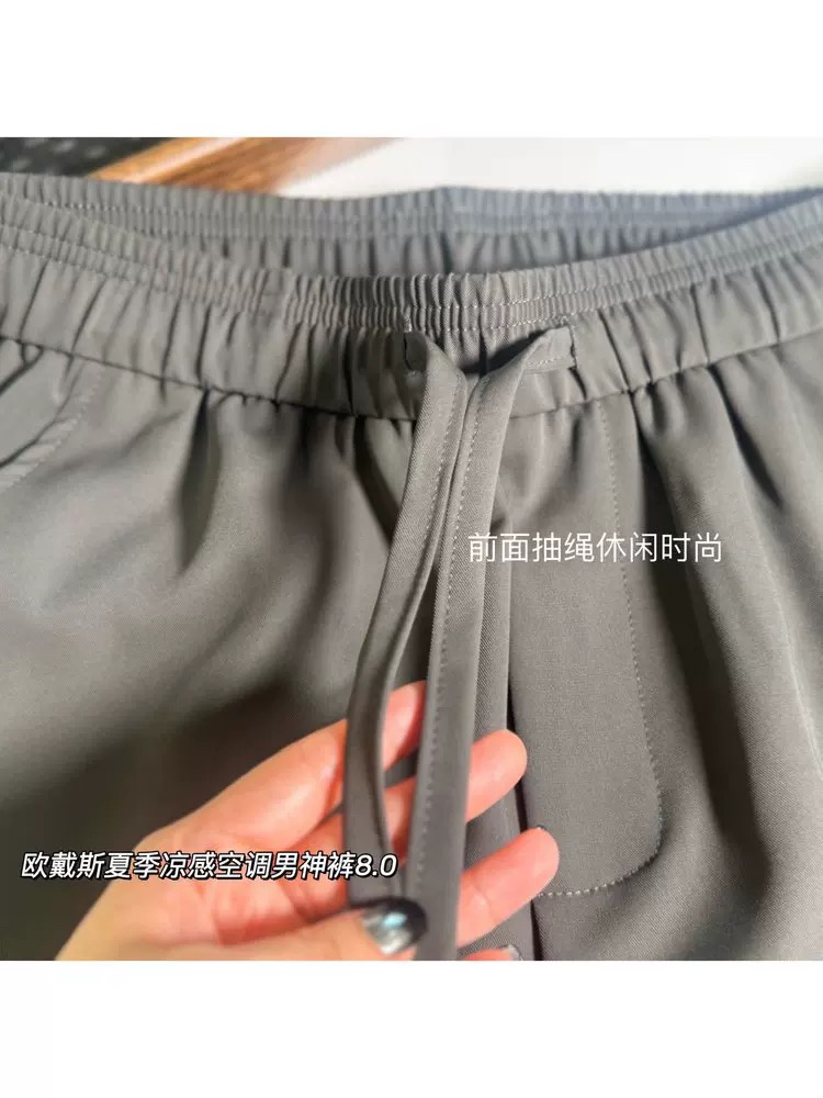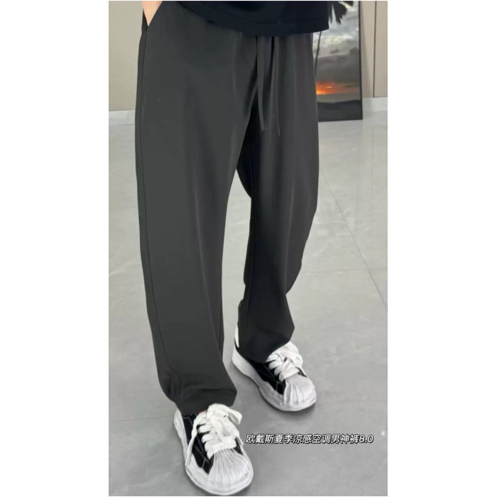 歐戴斯2025年夏季新款冰絲涼感薄款休閒褲男寬松直筒濶腿褲長褲子