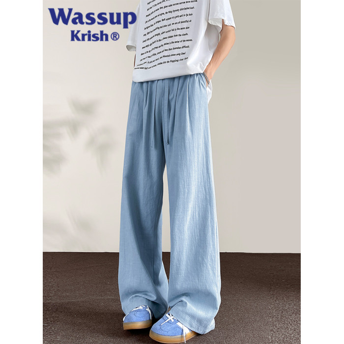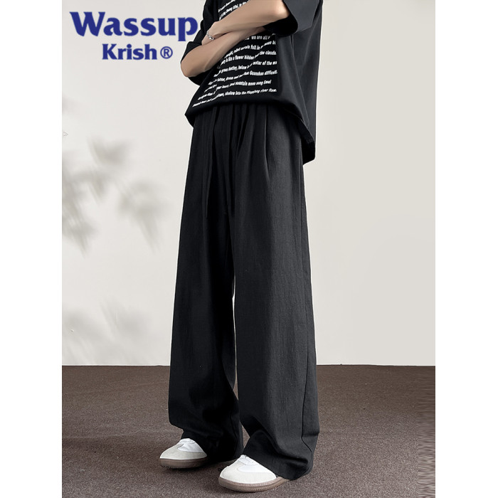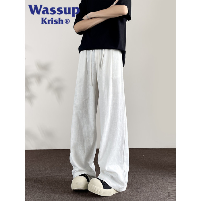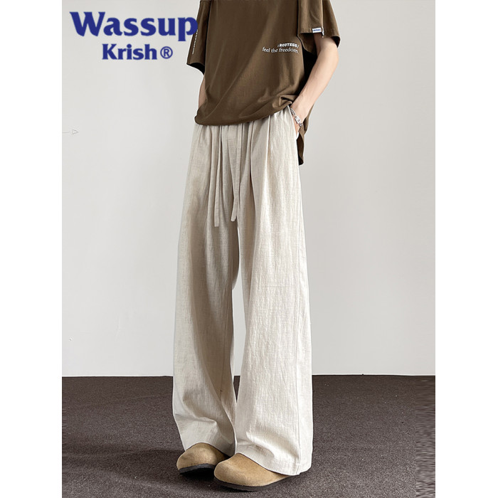 WASSUP KRISH棉麻新中式休閒褲子男款夏季新款日系純棉直筒濶腿褲