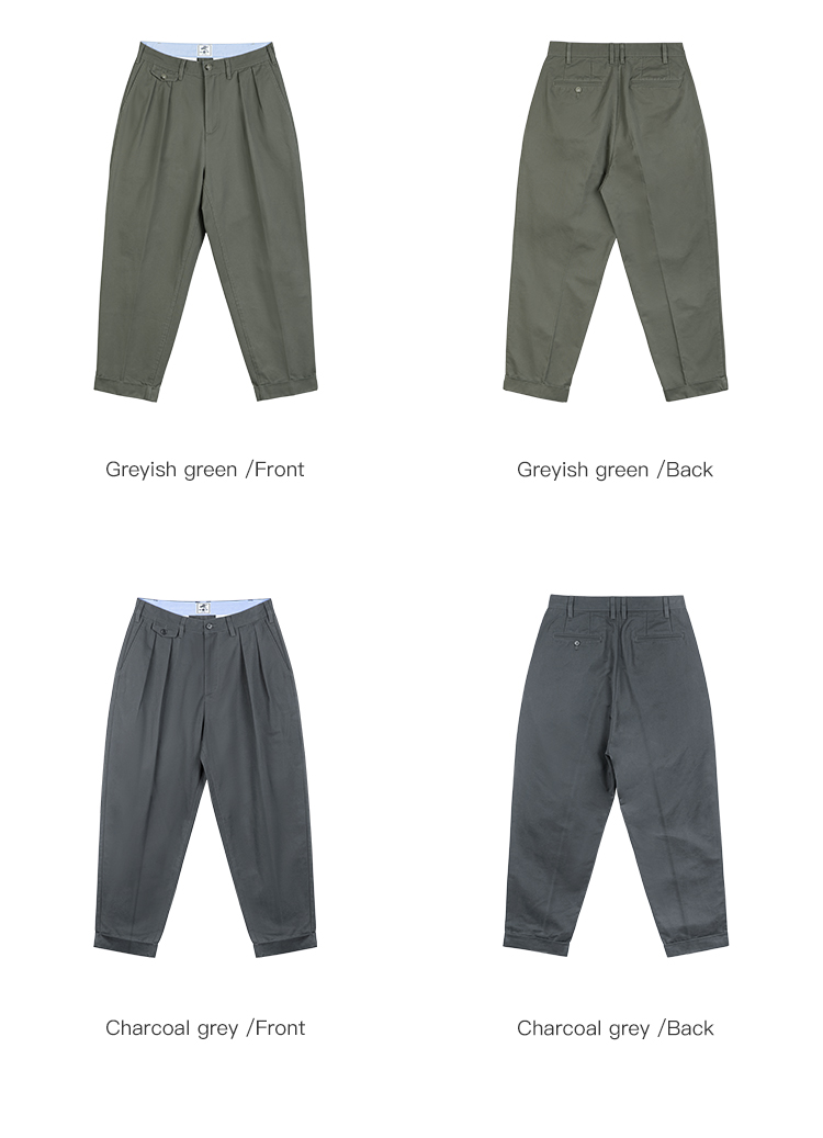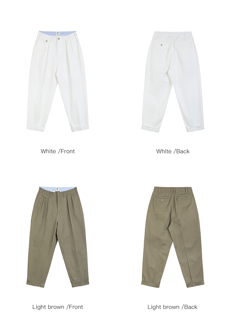 IDLT 錐形休閒褲 高品質雙褶濶腿褲寬松男卡其褲日本簡約cityboy
