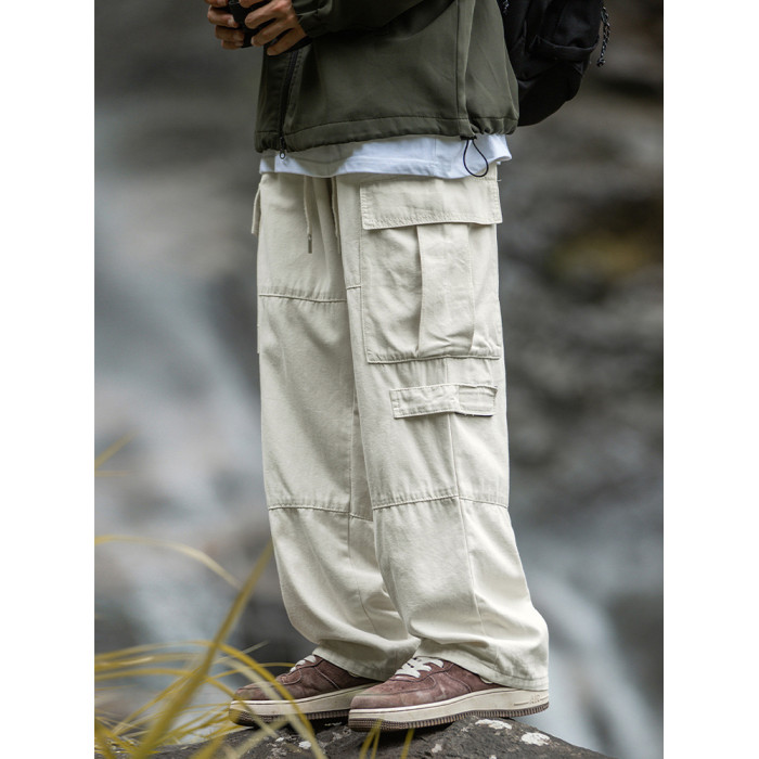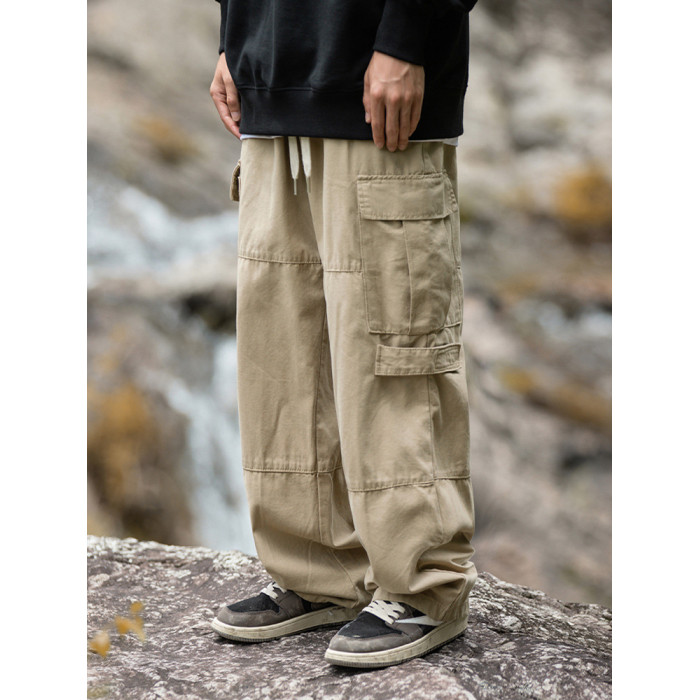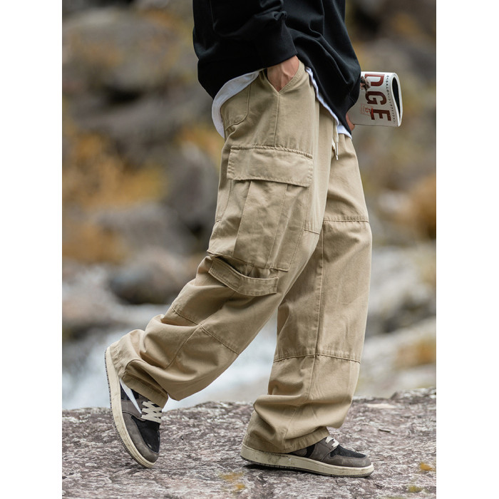 WASSUP復古濶腿褲男寬松直筒秋冬季美式街頭工裝潮牌風多口袋褲子