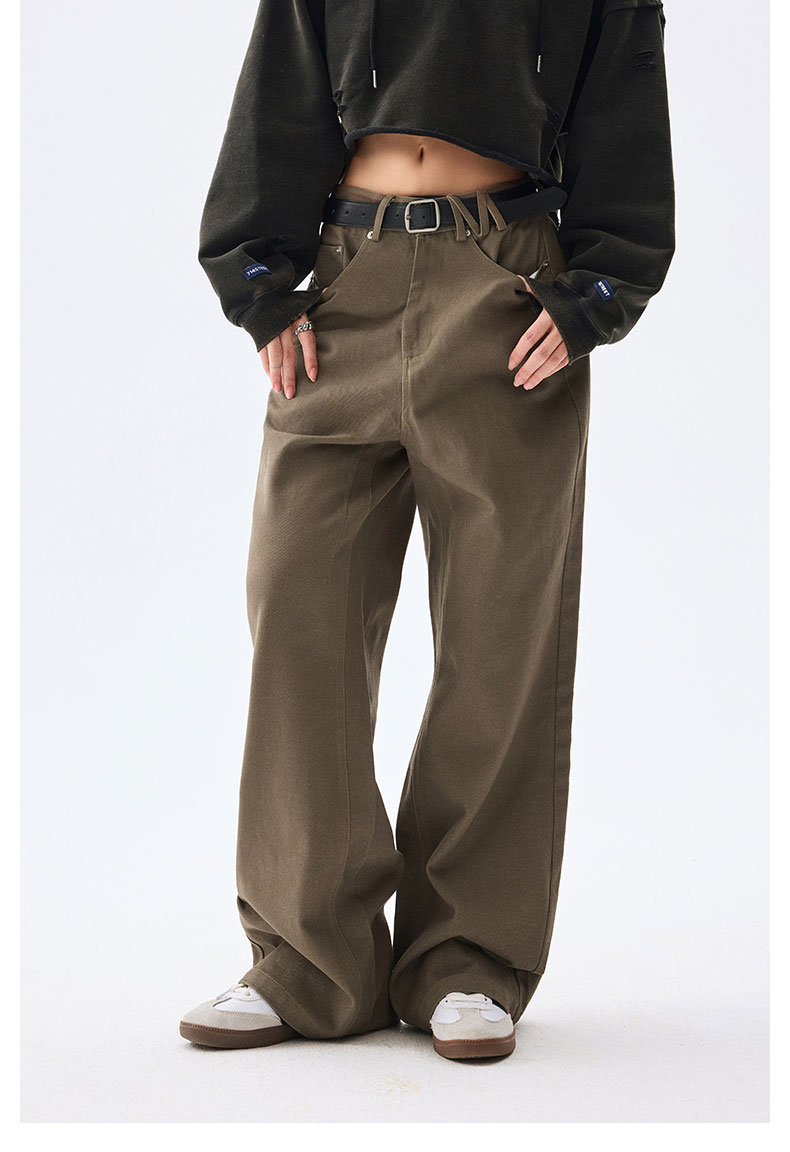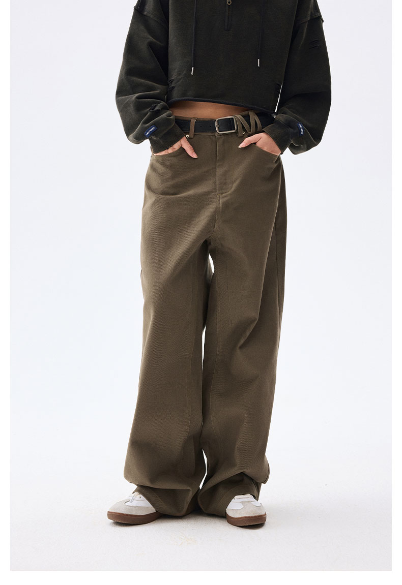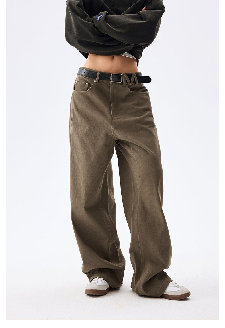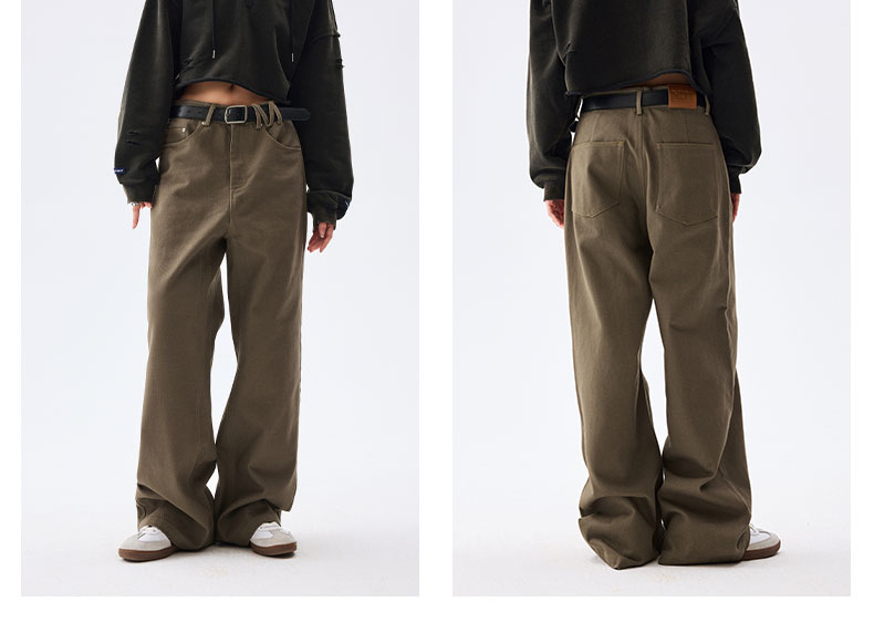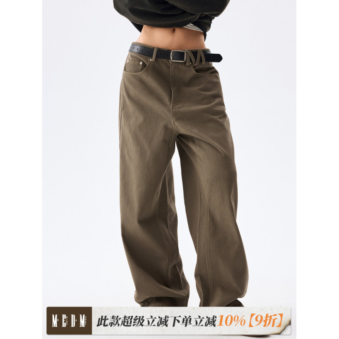 MEDM M形褲袢休閒長褲夏季美式潮牌設計感街頭復古寬松垂感濶腿褲