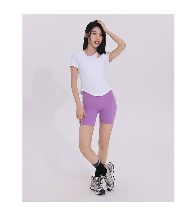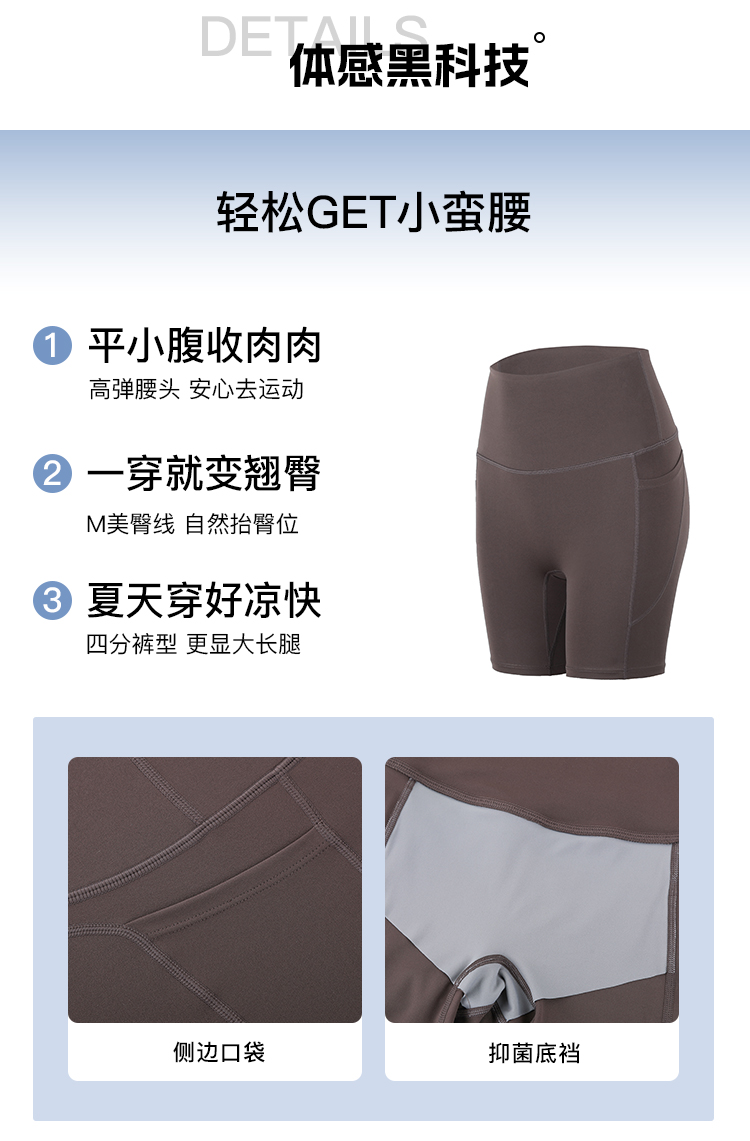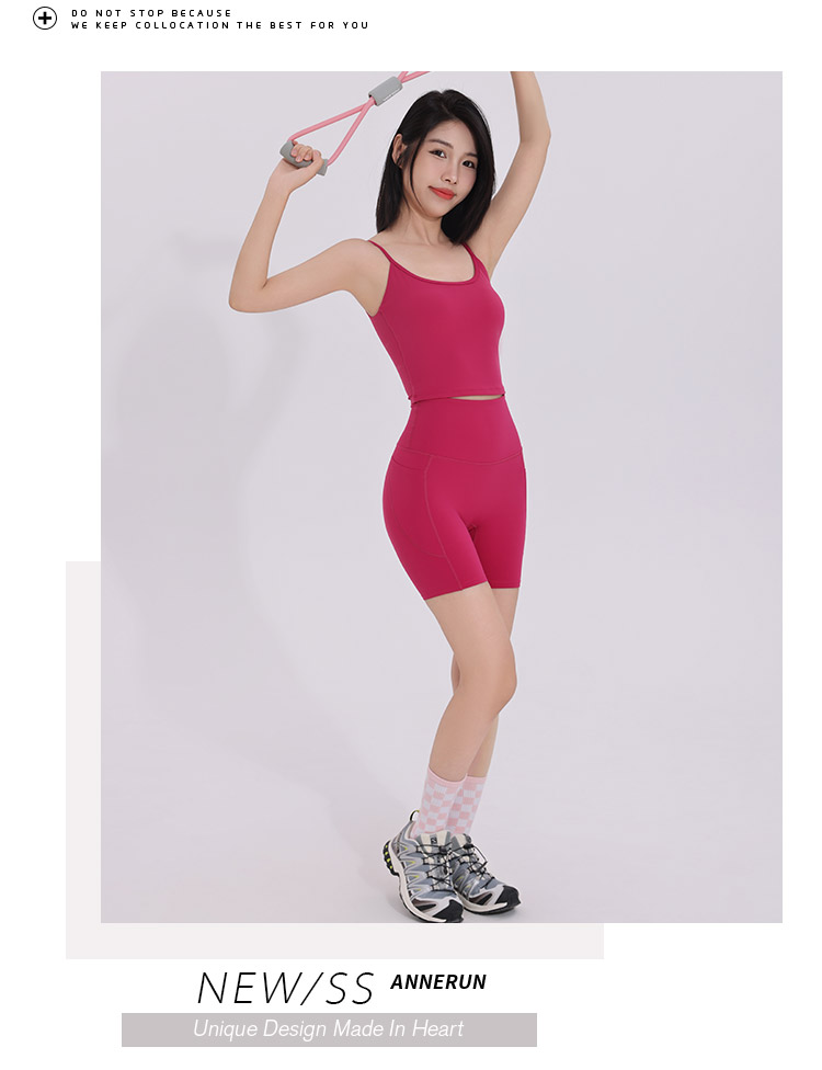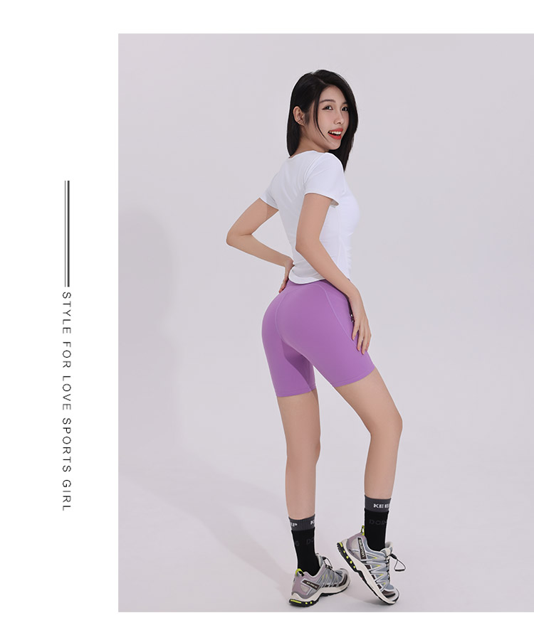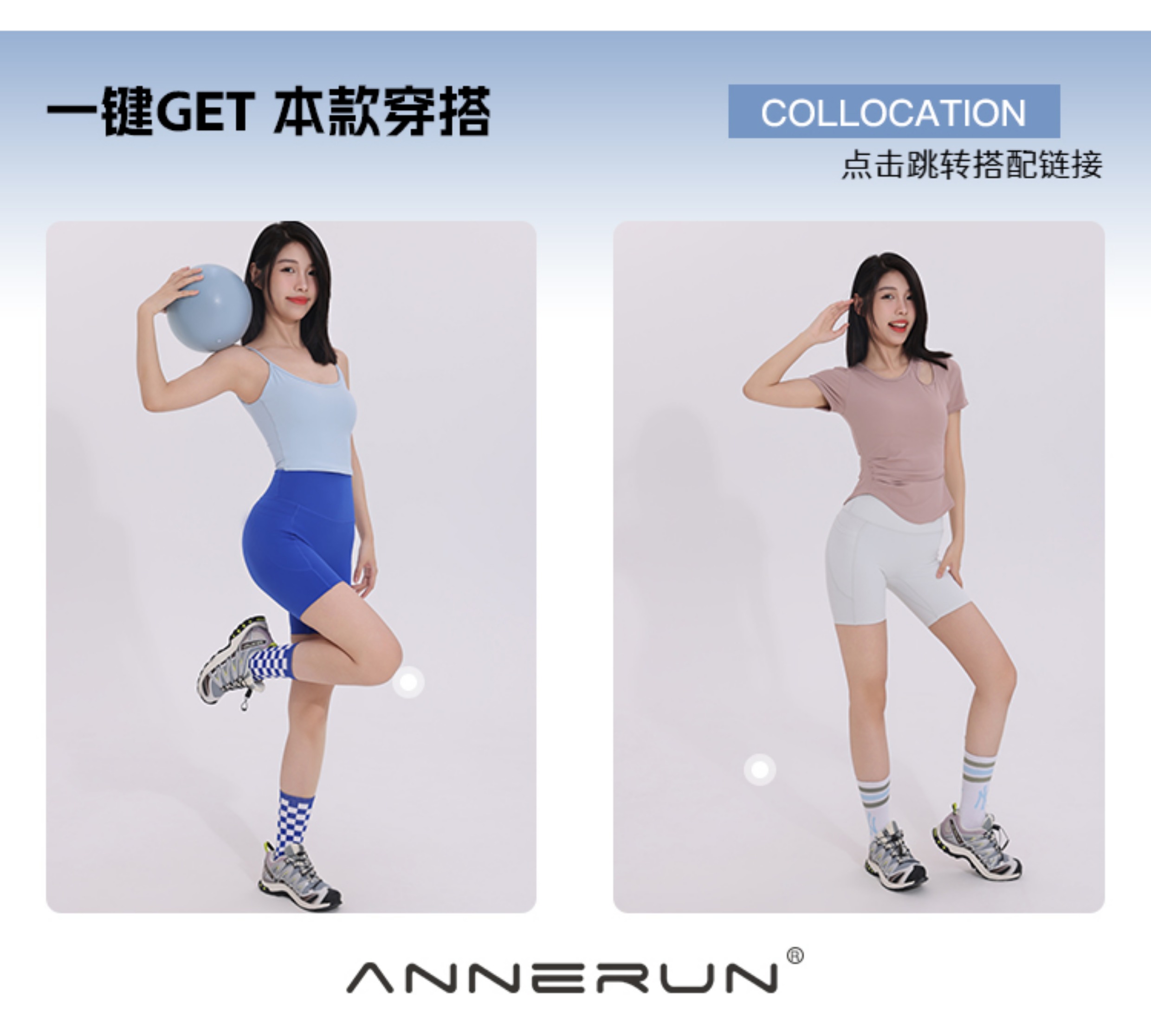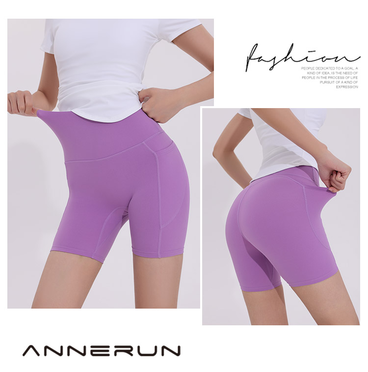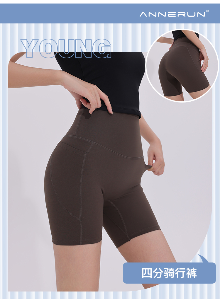 annerun四分瑜伽短褲女速乾騎行運動褲高腰提臀裸感跑步健身短褲