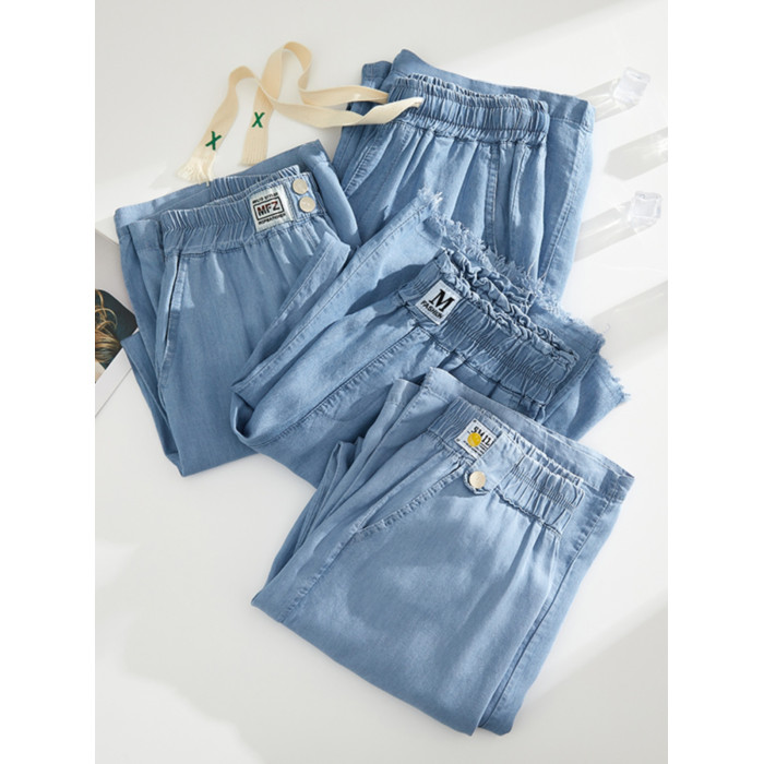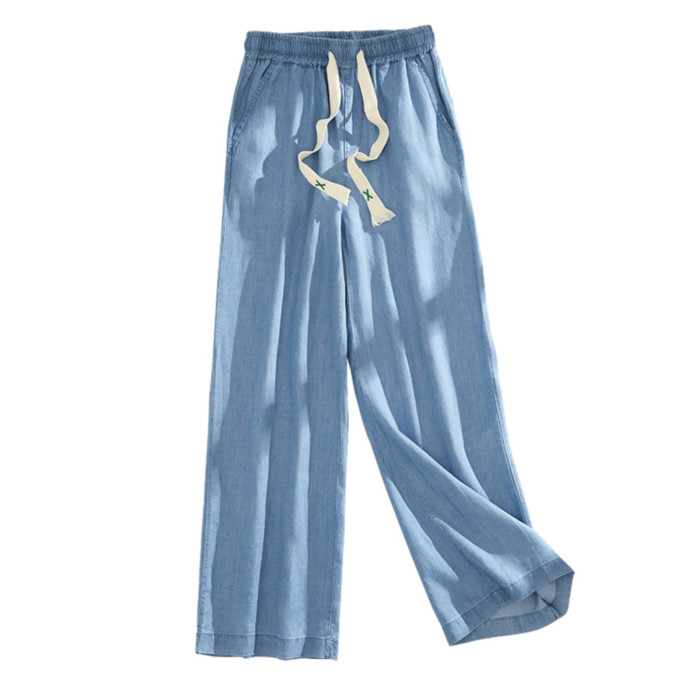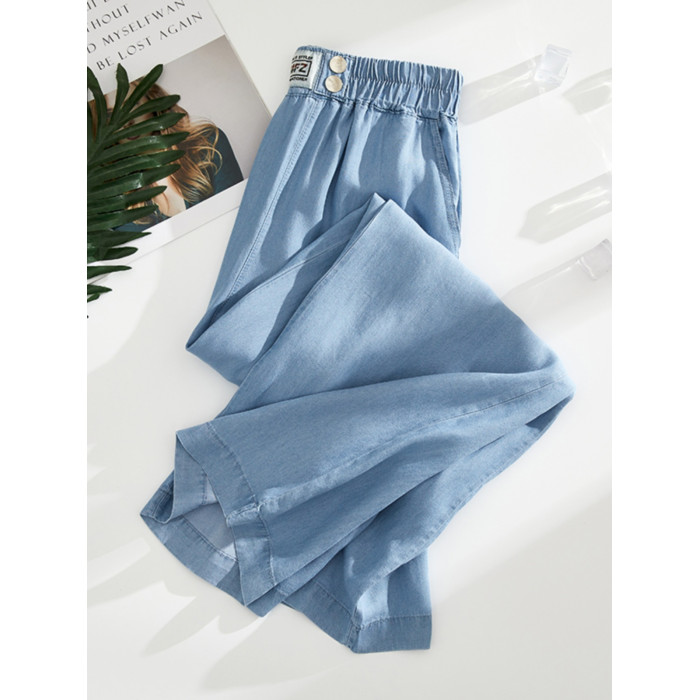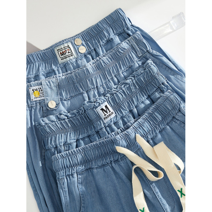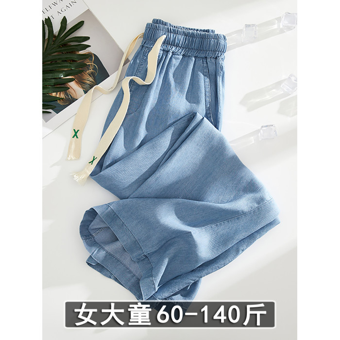 胖女童裝女孩大童加肥加大碼冰絲天絲牛仔褲寬松夏季薄款濶腿褲子