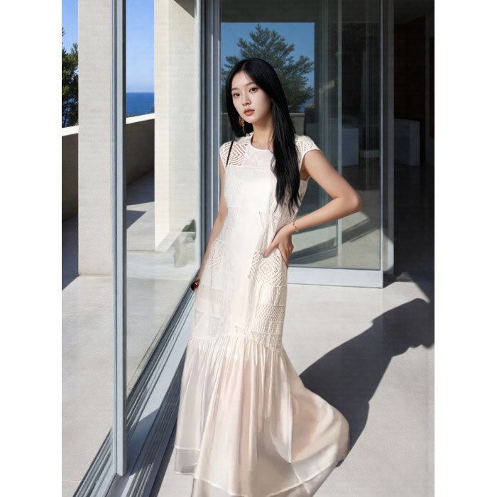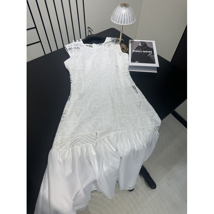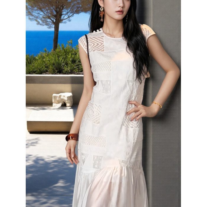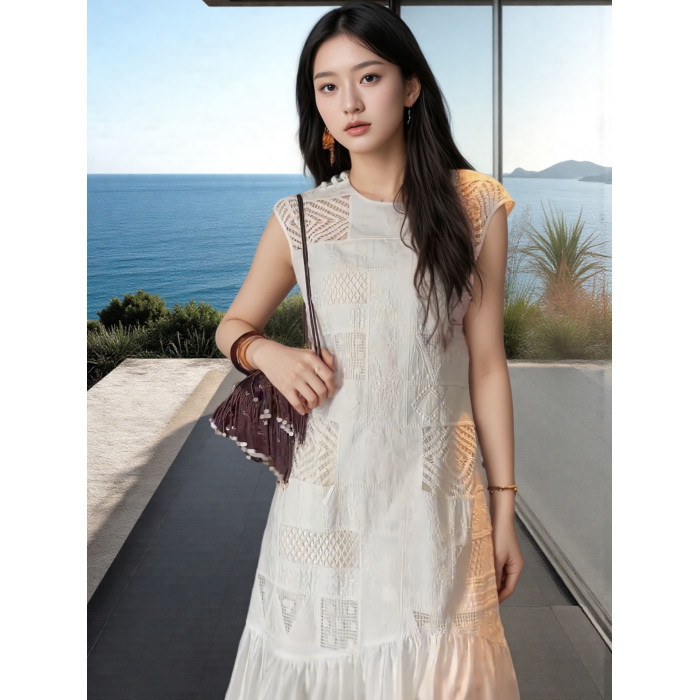 時尚名媛白色連衣裙女裝夏季爆款鏤空長裙子絕美別致背心裙大擺裙