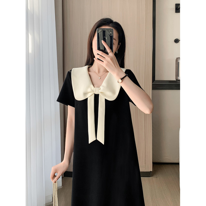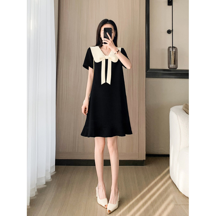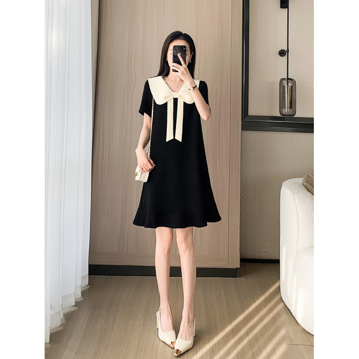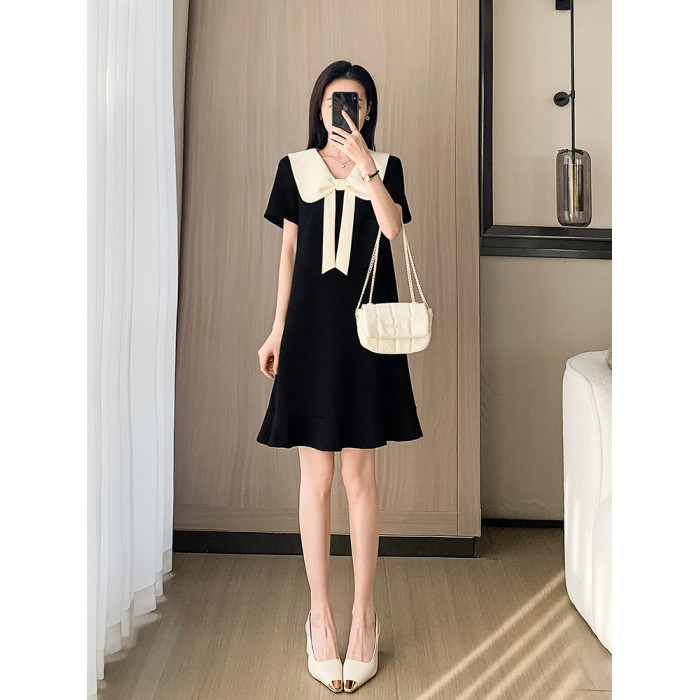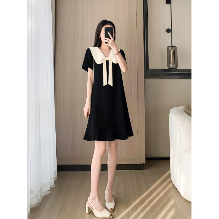 小黑裙娃娃領黑色氣質連衣裙女夏季2025新款收腰顯瘦a字裙小個子