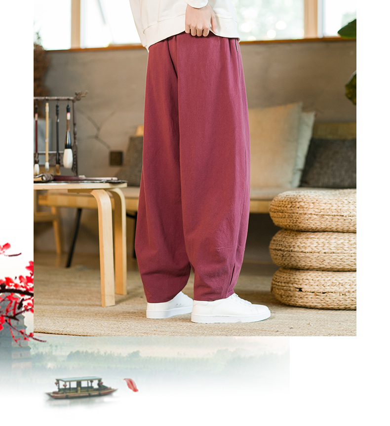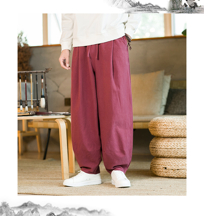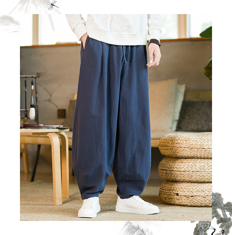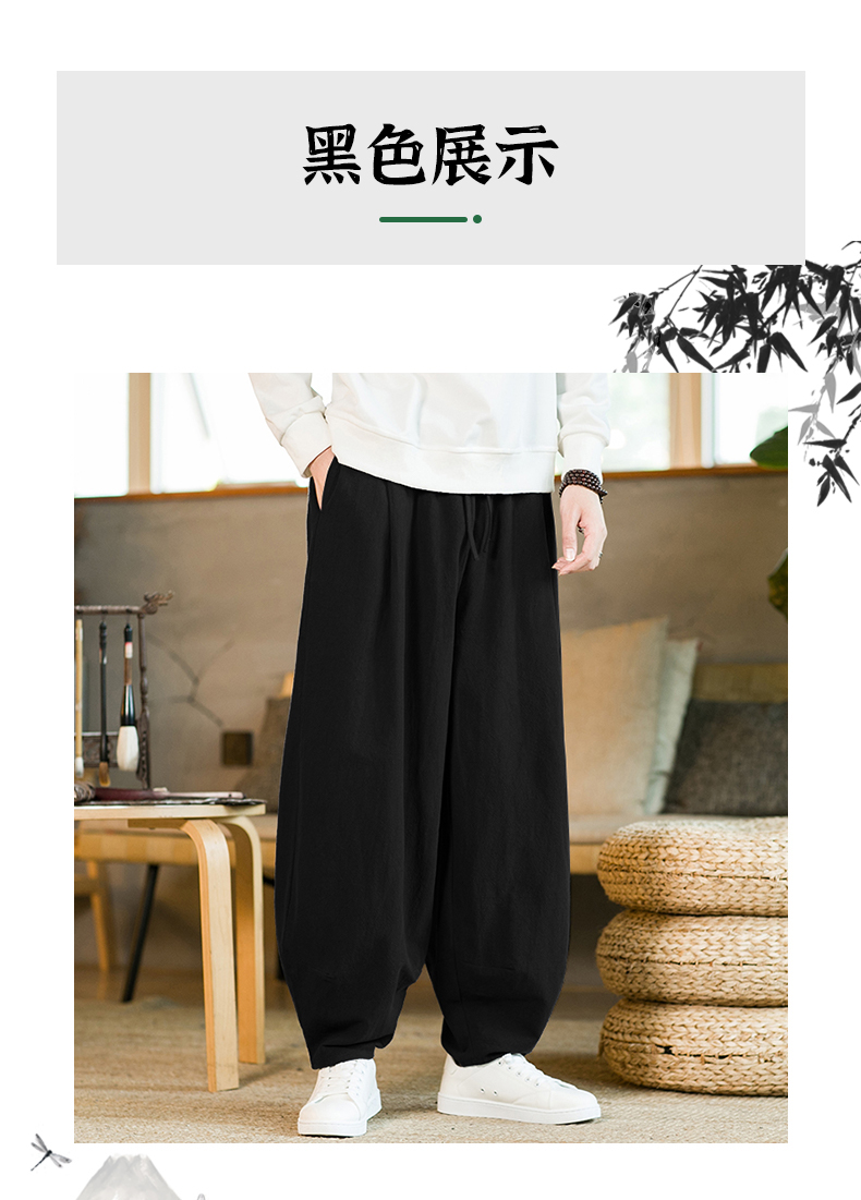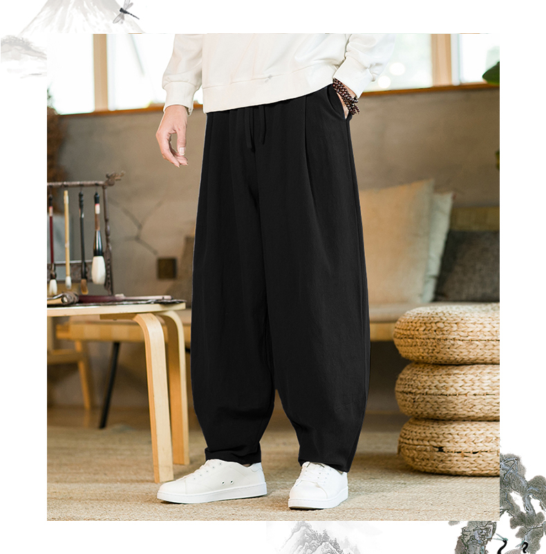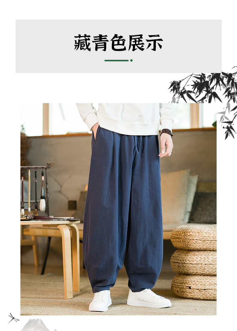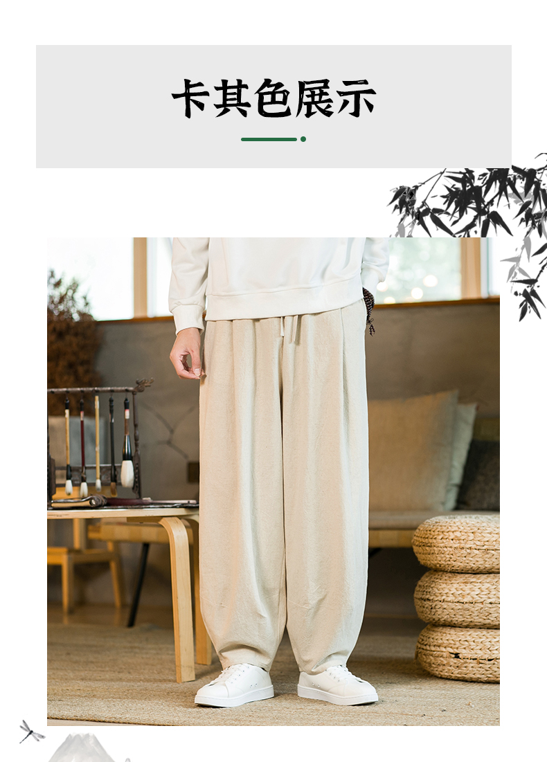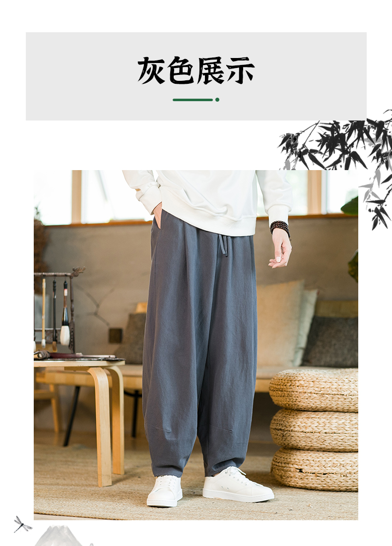 春夏風亞麻休閒褲濶腿褲中式棉麻燈籠褲道服褲寬松太極褲腔調