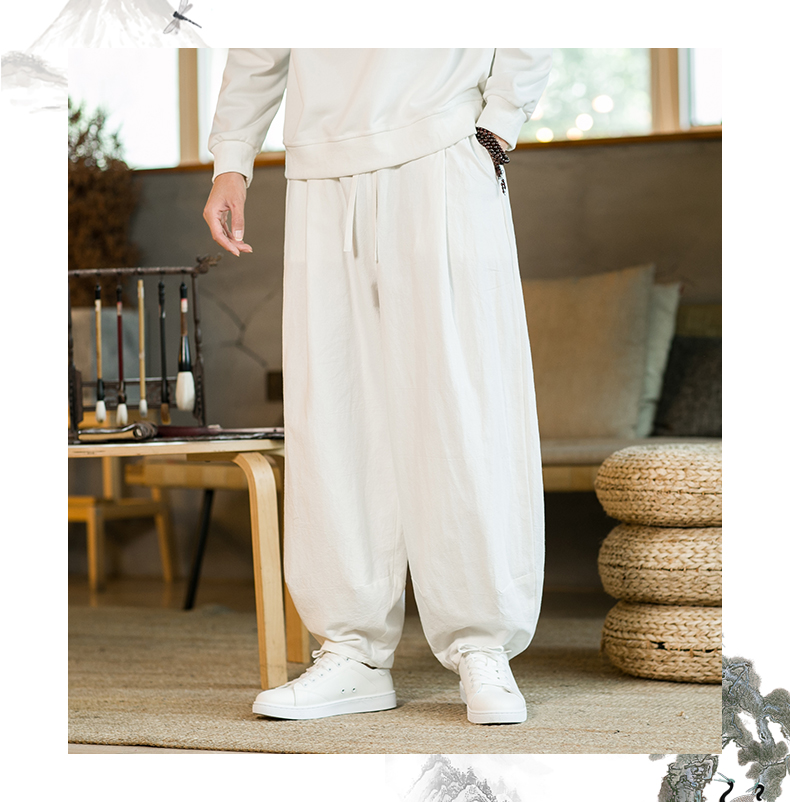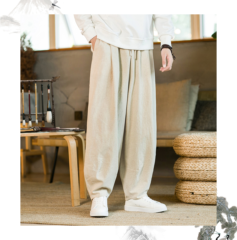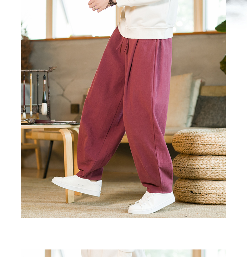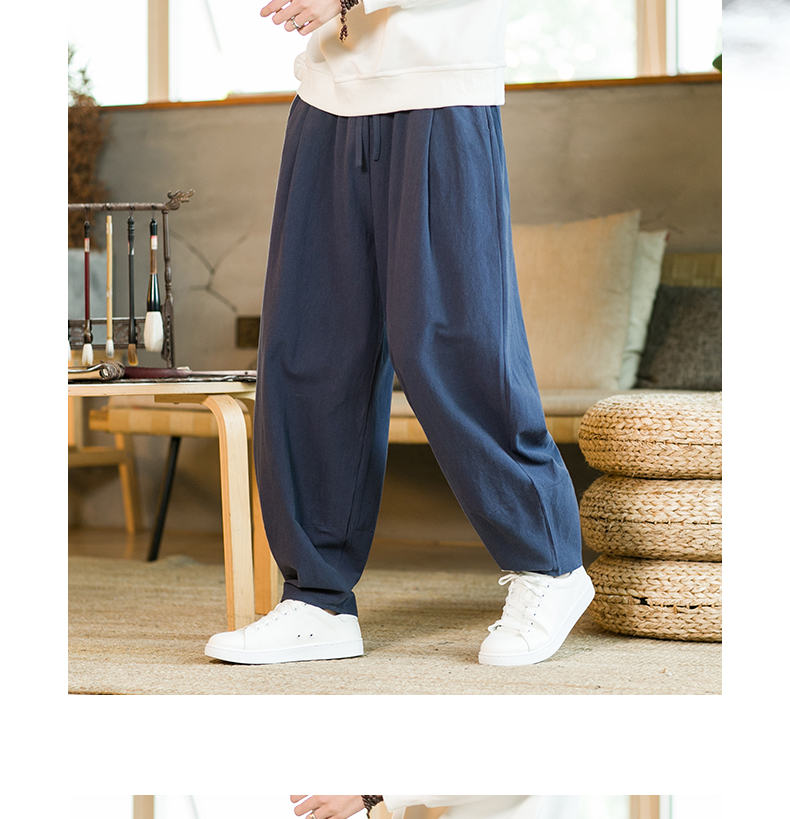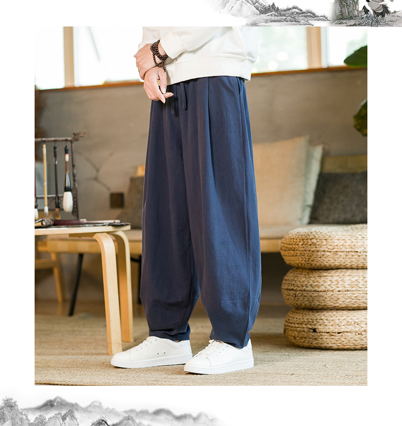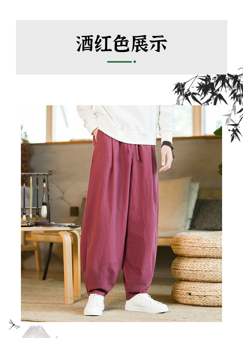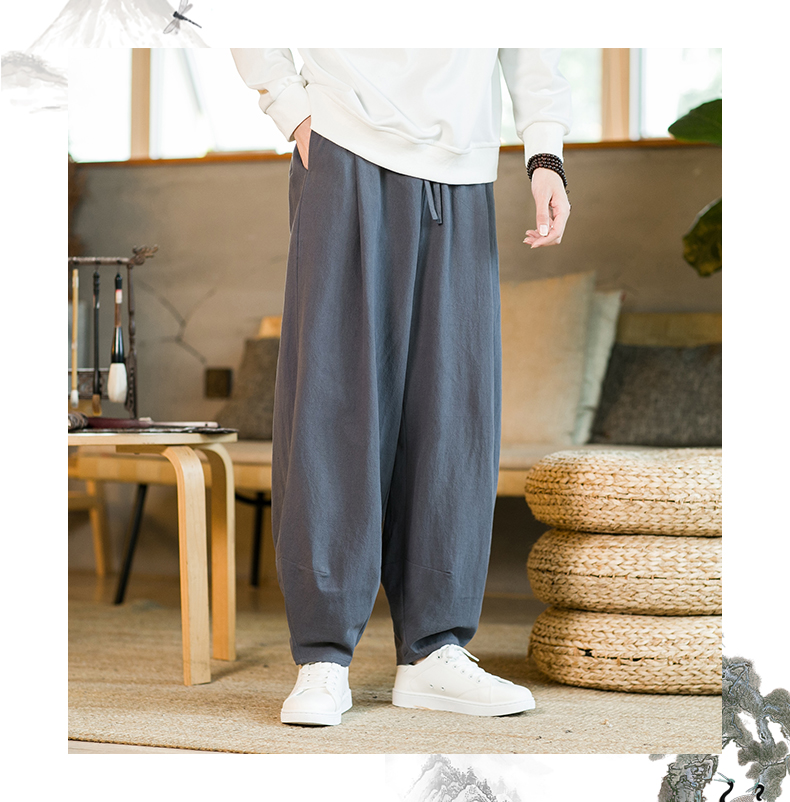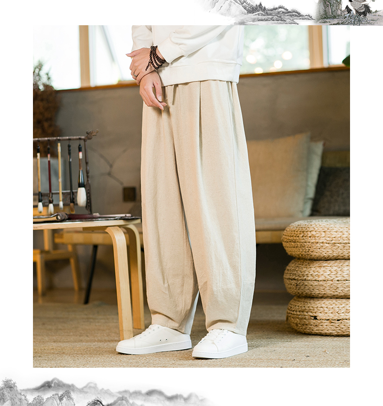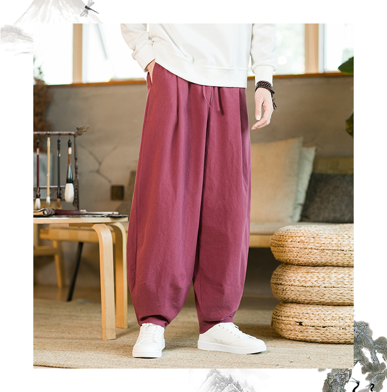 春夏風亞麻休閒褲濶腿褲中式棉麻燈籠褲道服褲寬松太極褲腔調