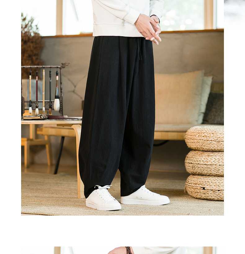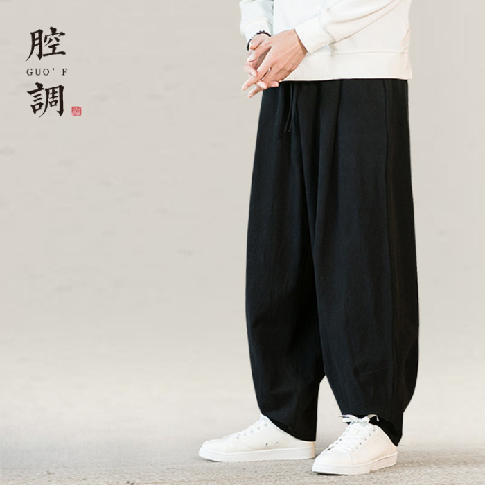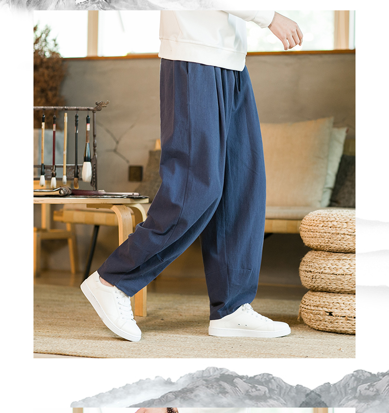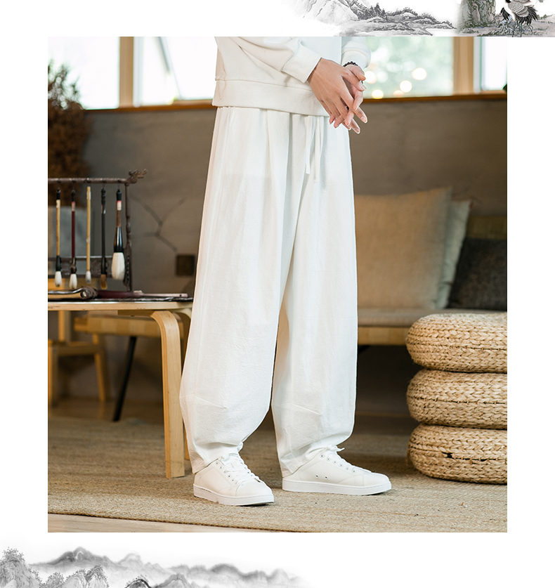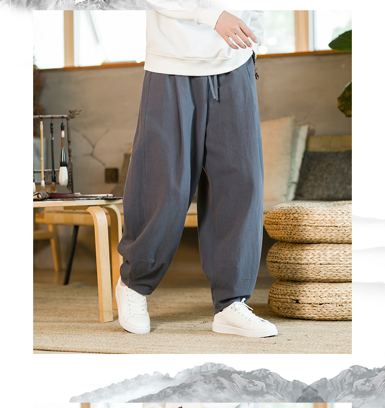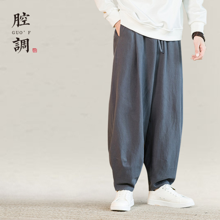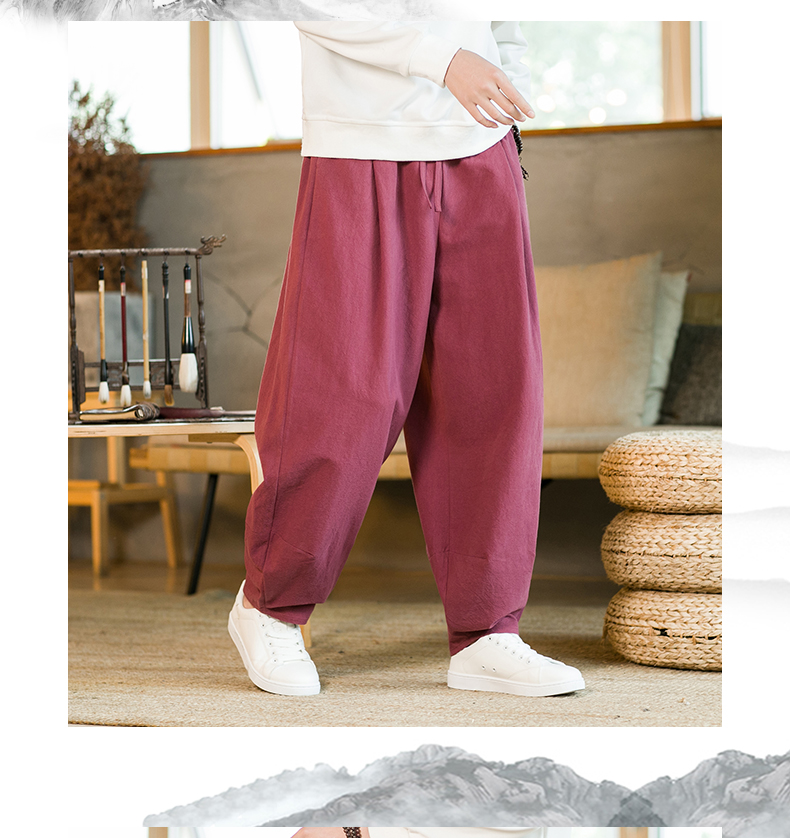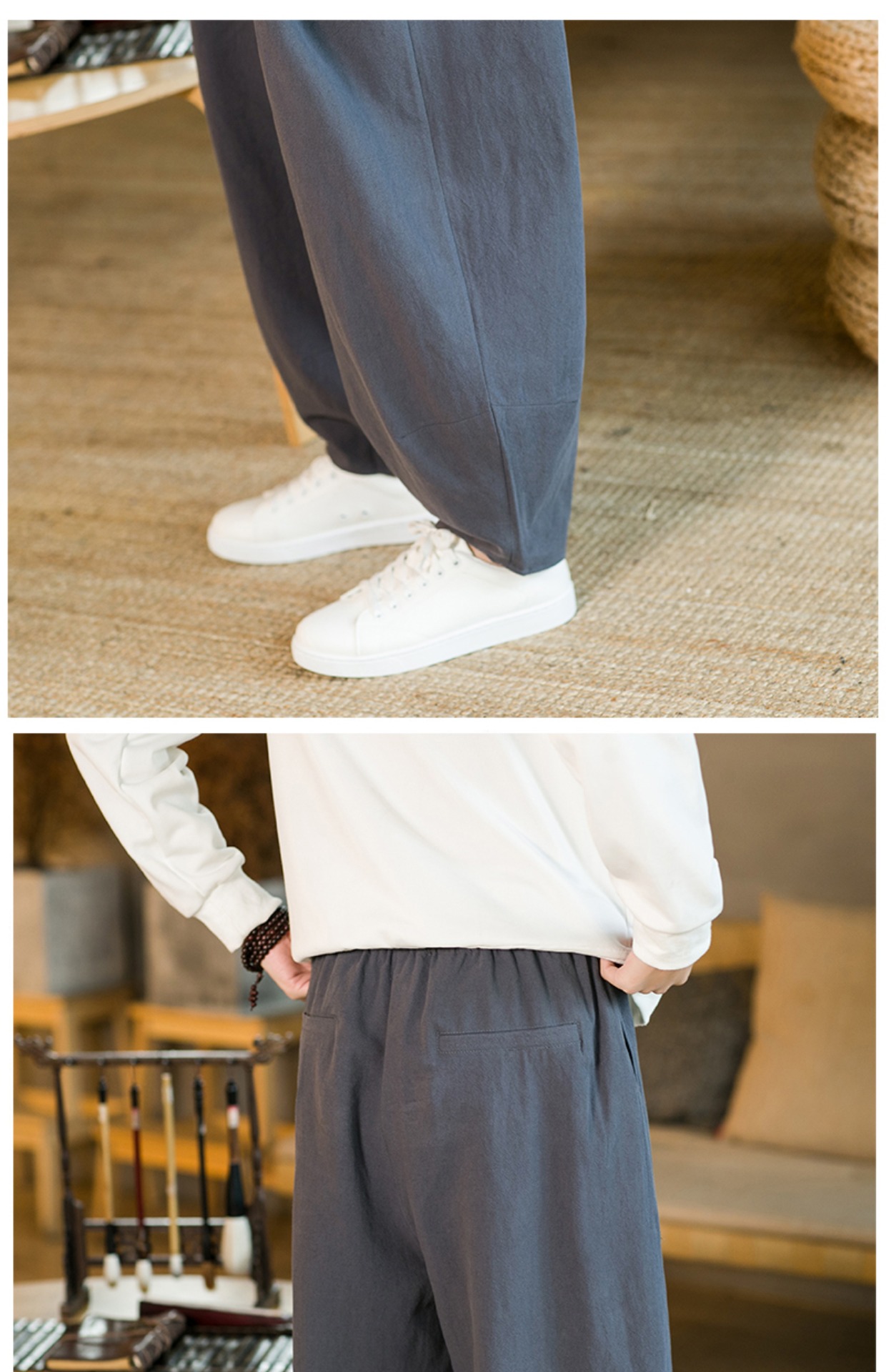 春夏風亞麻休閒褲濶腿褲中式棉麻燈籠褲道服褲寬松太極褲腔調
