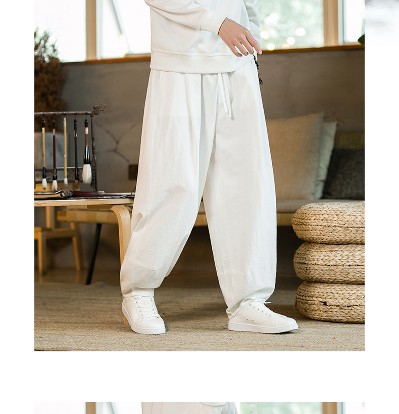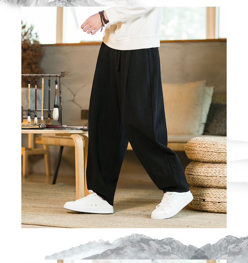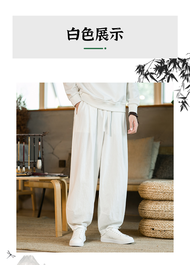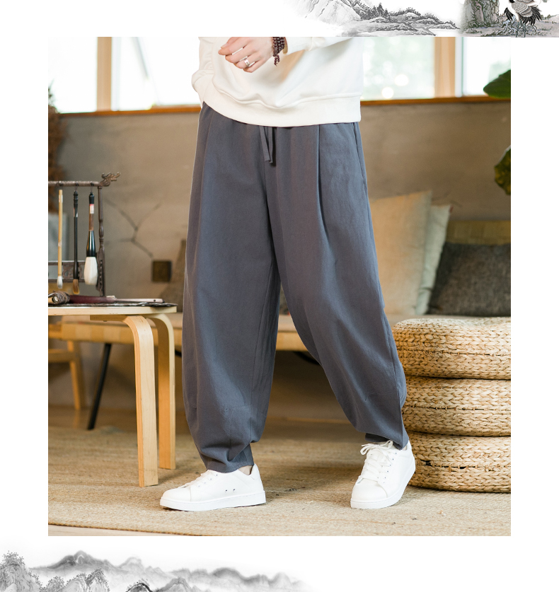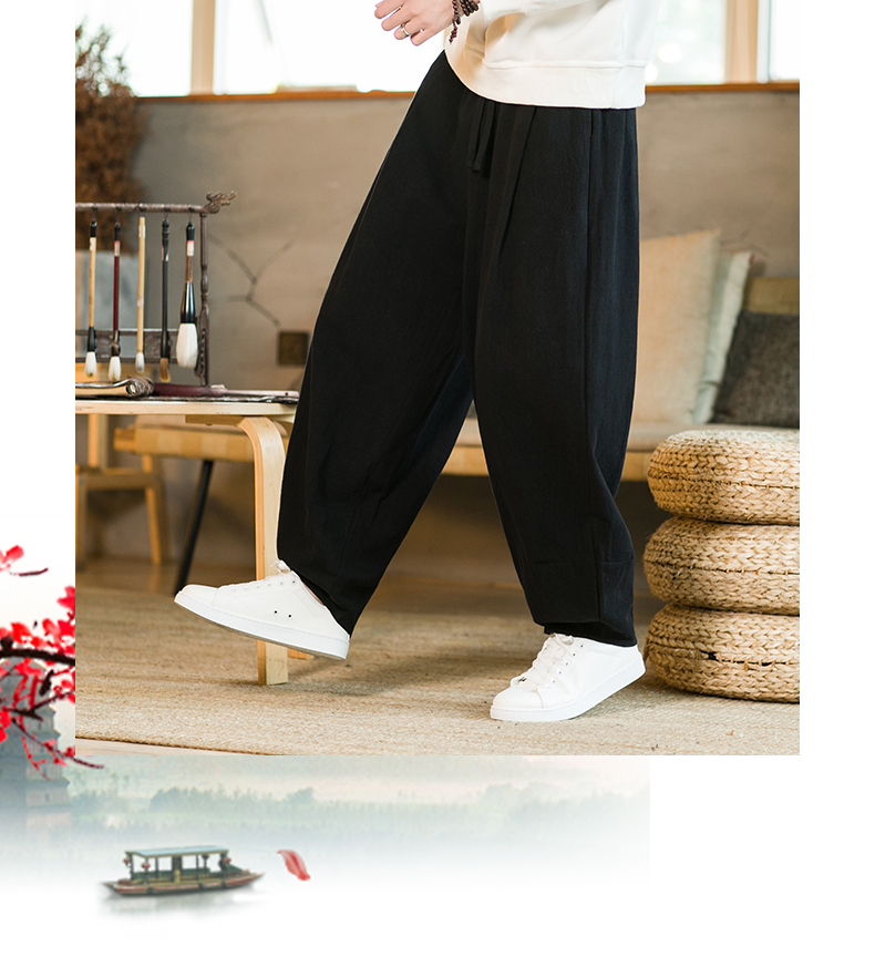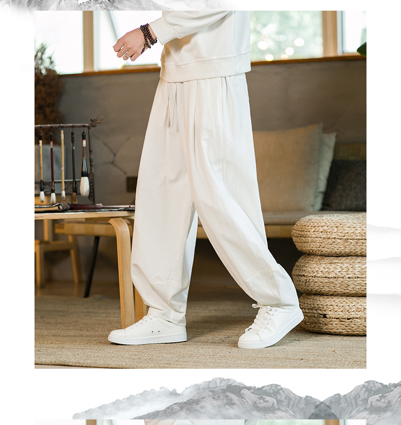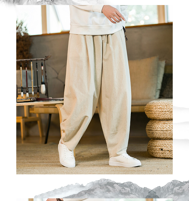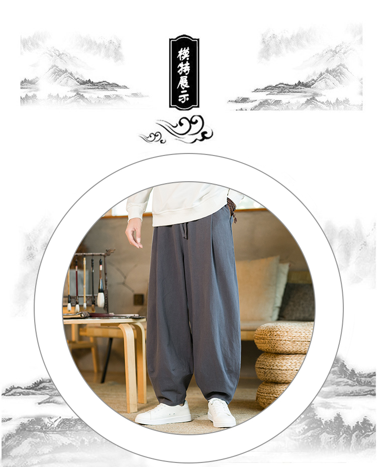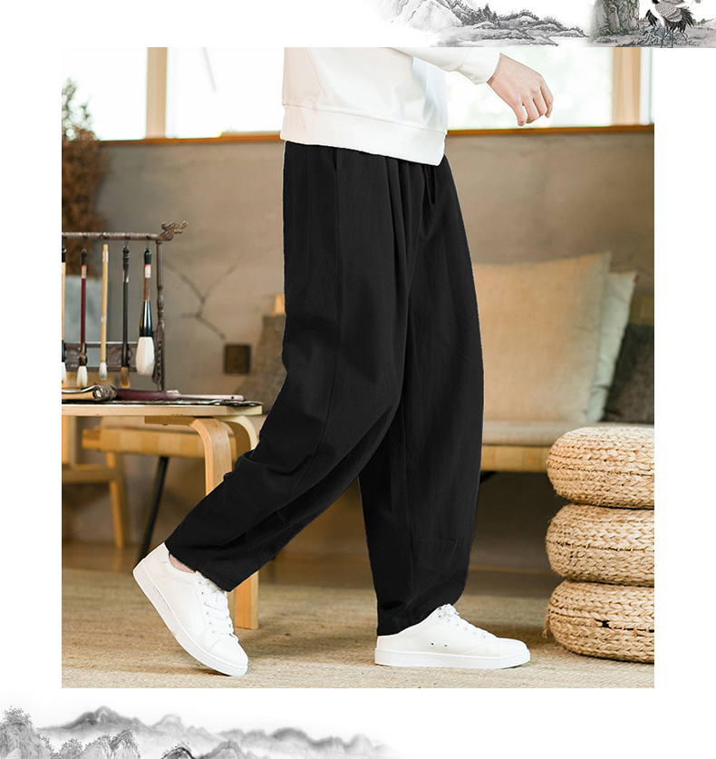 春夏風亞麻休閒褲濶腿褲中式棉麻燈籠褲道服褲寬松太極褲腔調