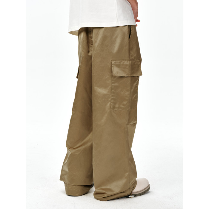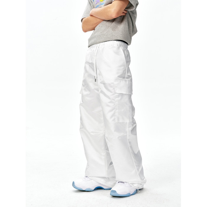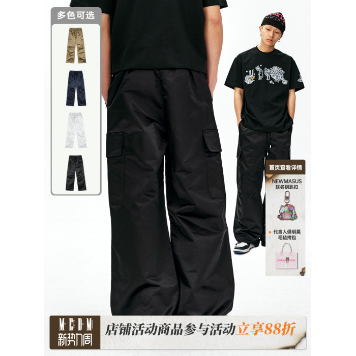 MEDM25SS尼龍工裝褲男春秋潮牌美式復古寬松濶腿褲抽繩休閒直筒褲