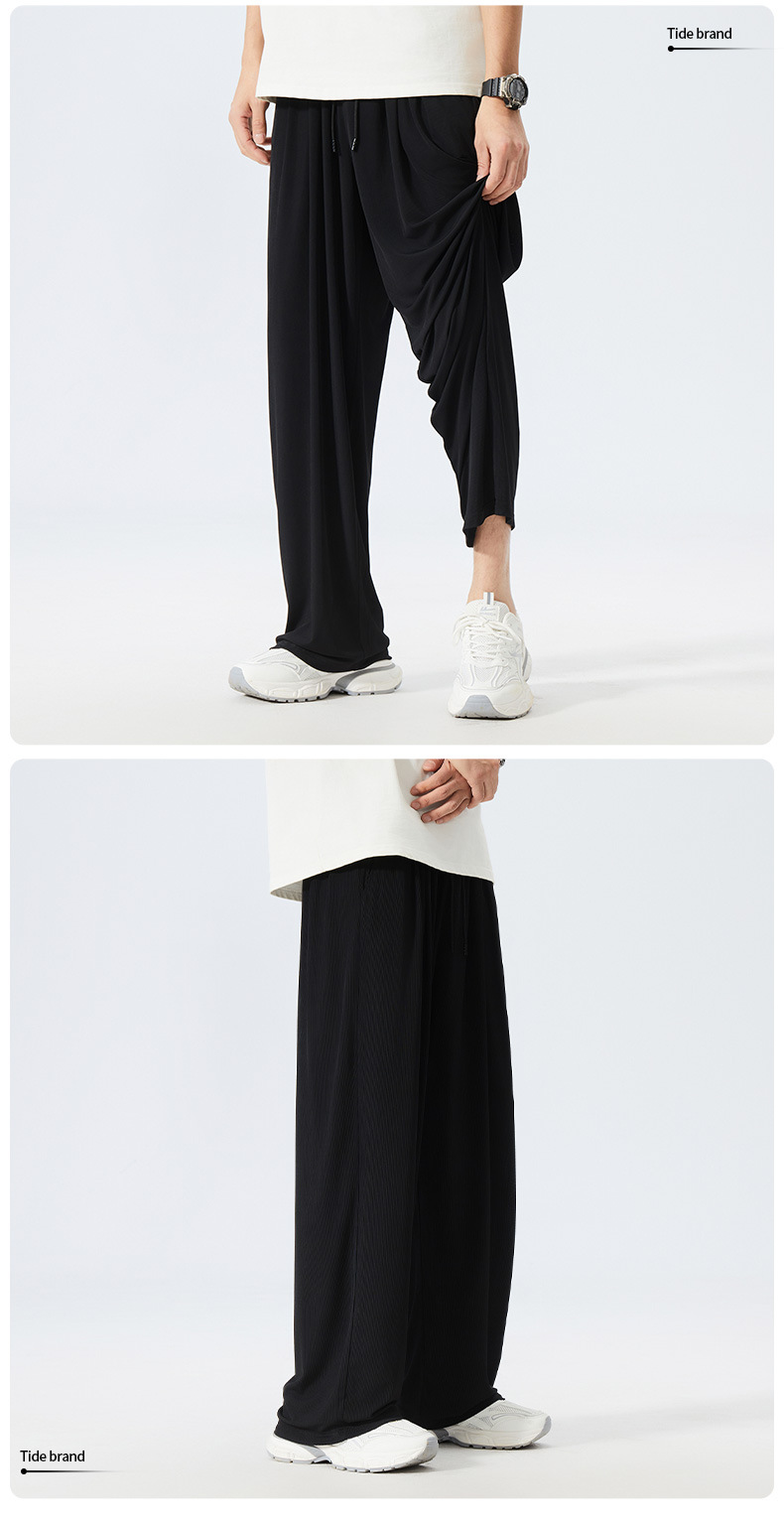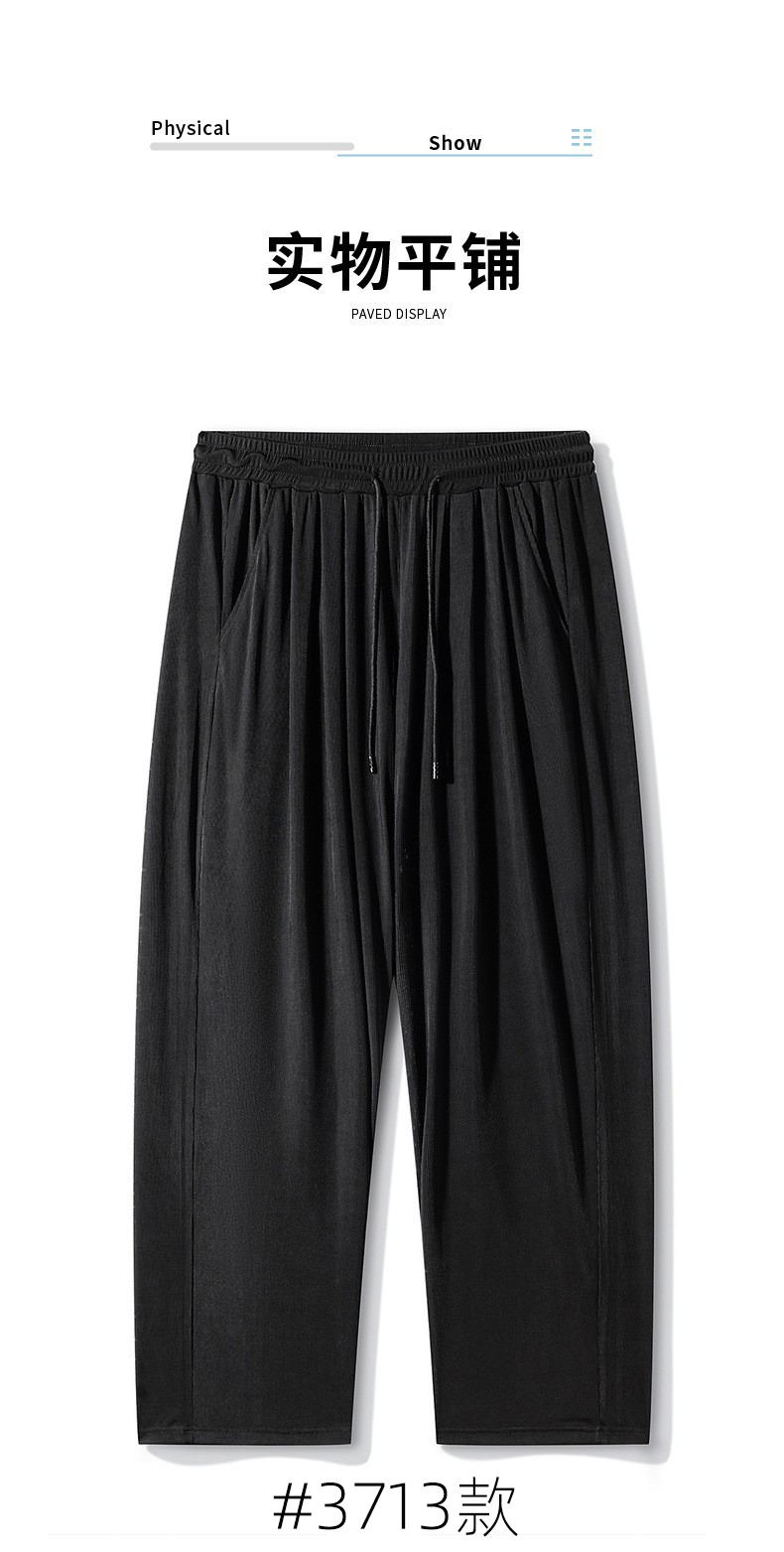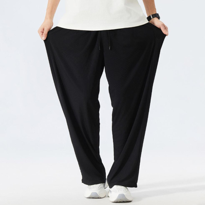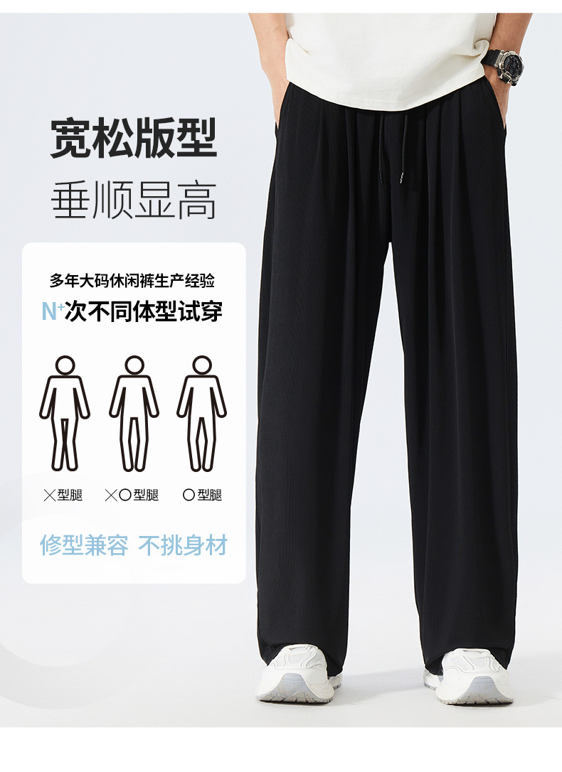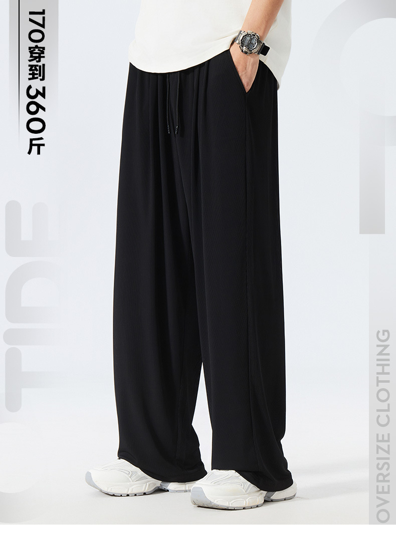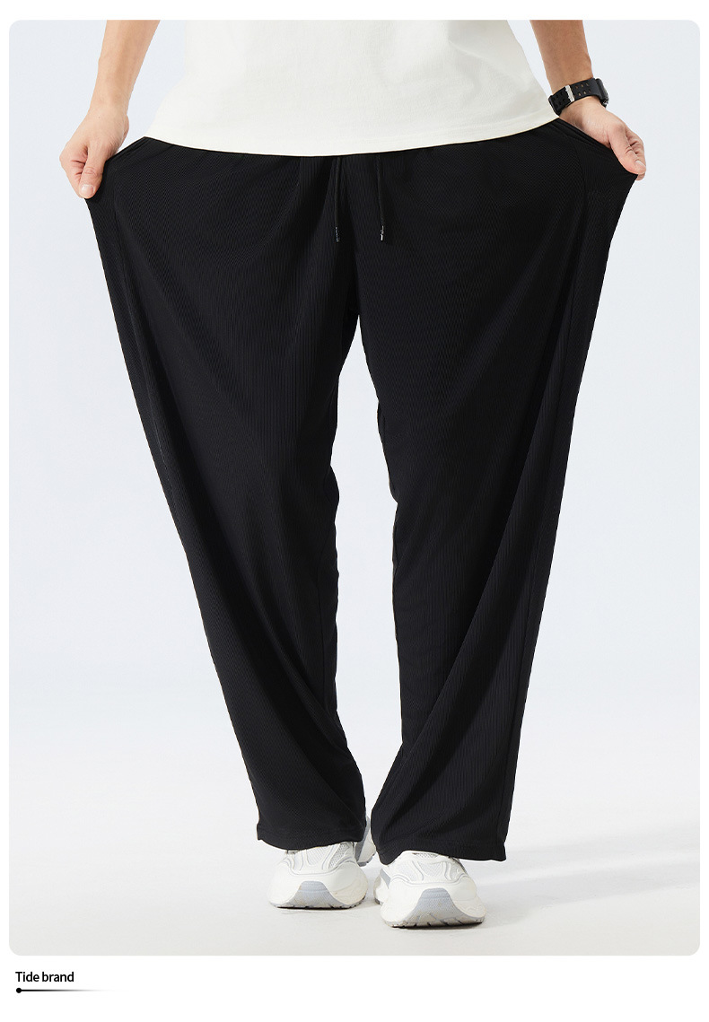 潮胖子冰絲褲男垂感濶腿褲直筒褲加肥加大碼休閒褲肥佬寬松300斤