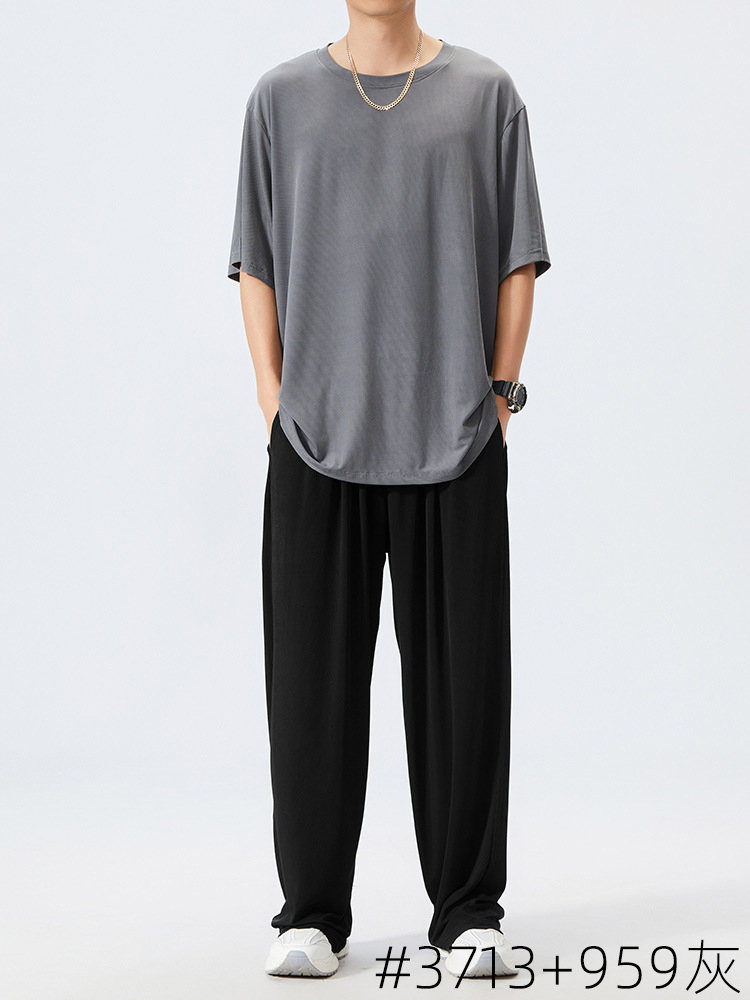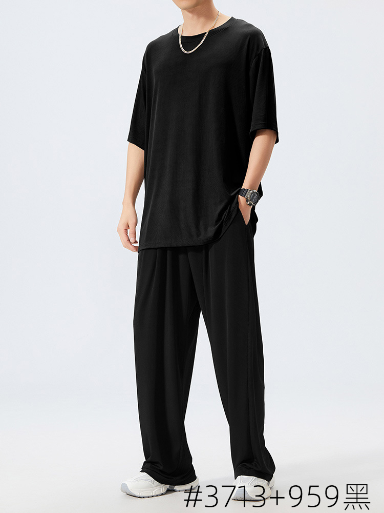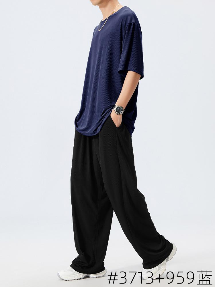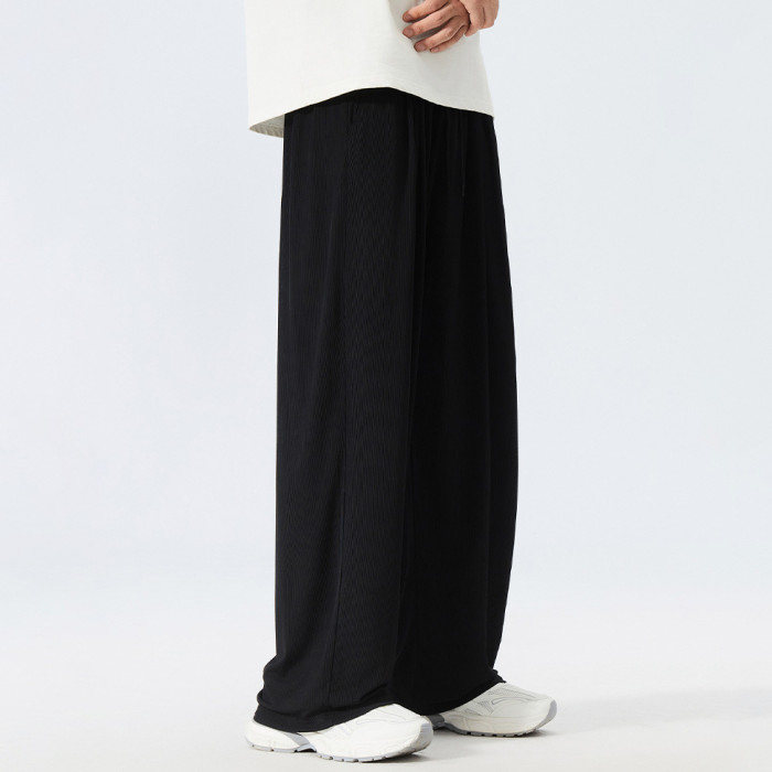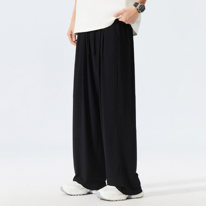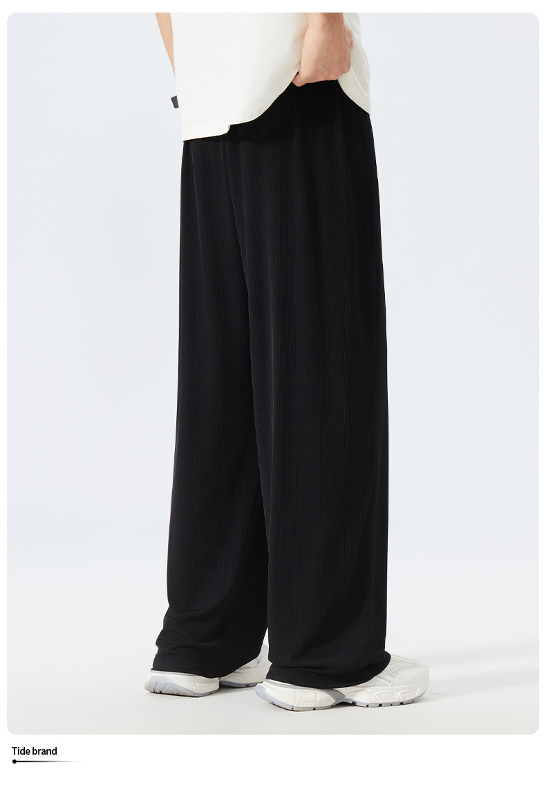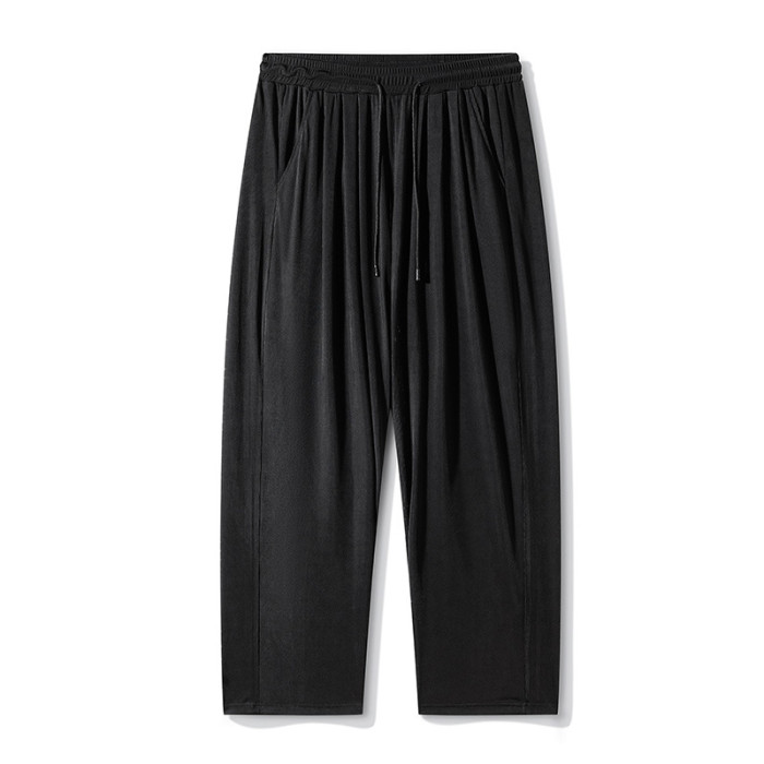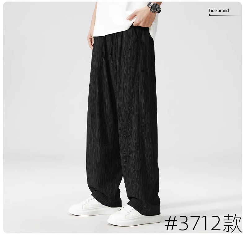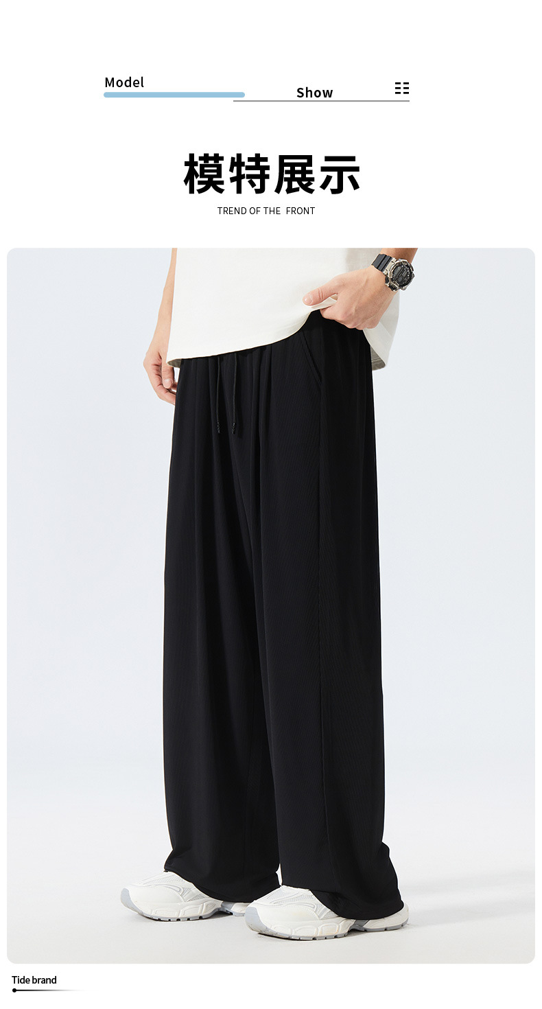 潮胖子冰絲褲男垂感濶腿褲直筒褲加肥加大碼休閒褲肥佬寬松300斤