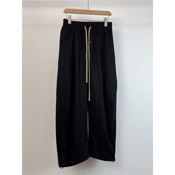【川】夏季新款潮牌抽繩輕薄亞麻彎刀濶腿褲男美式百搭直筒休閒褲