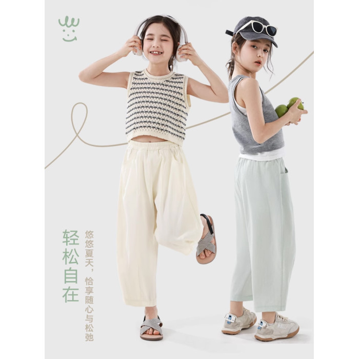 DOMIO女童防蚊褲子夏輕薄9分褲休閒褲兒童濶腿褲大童運動褲7分褲