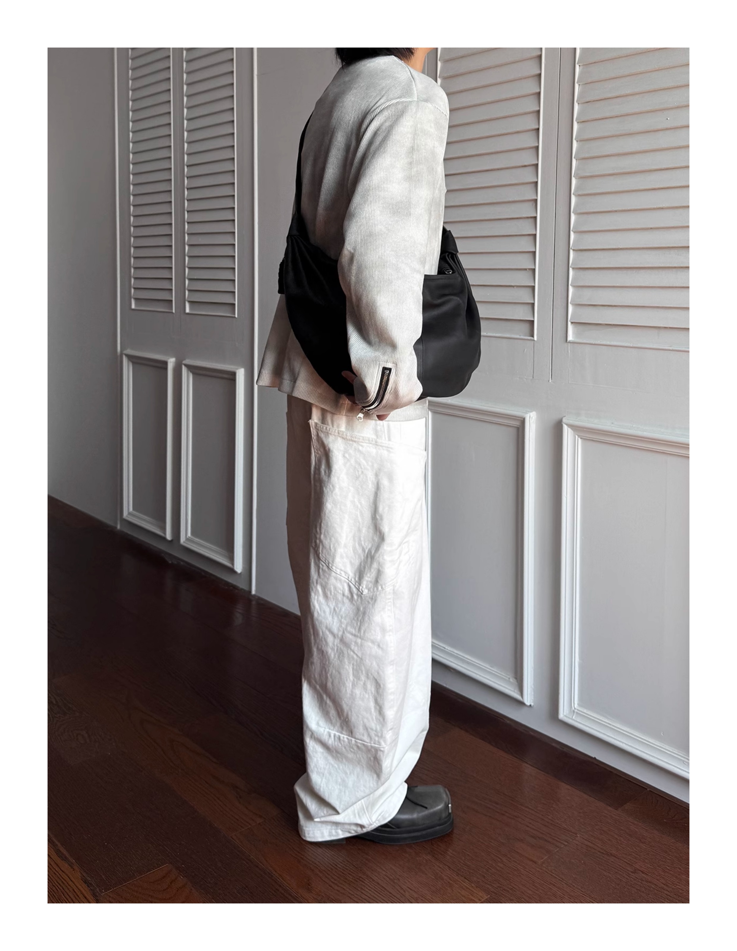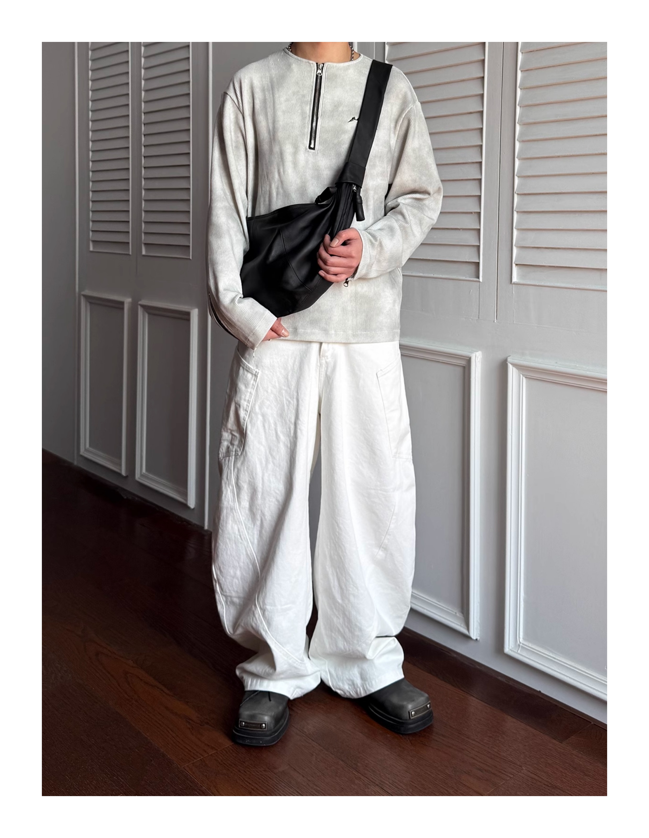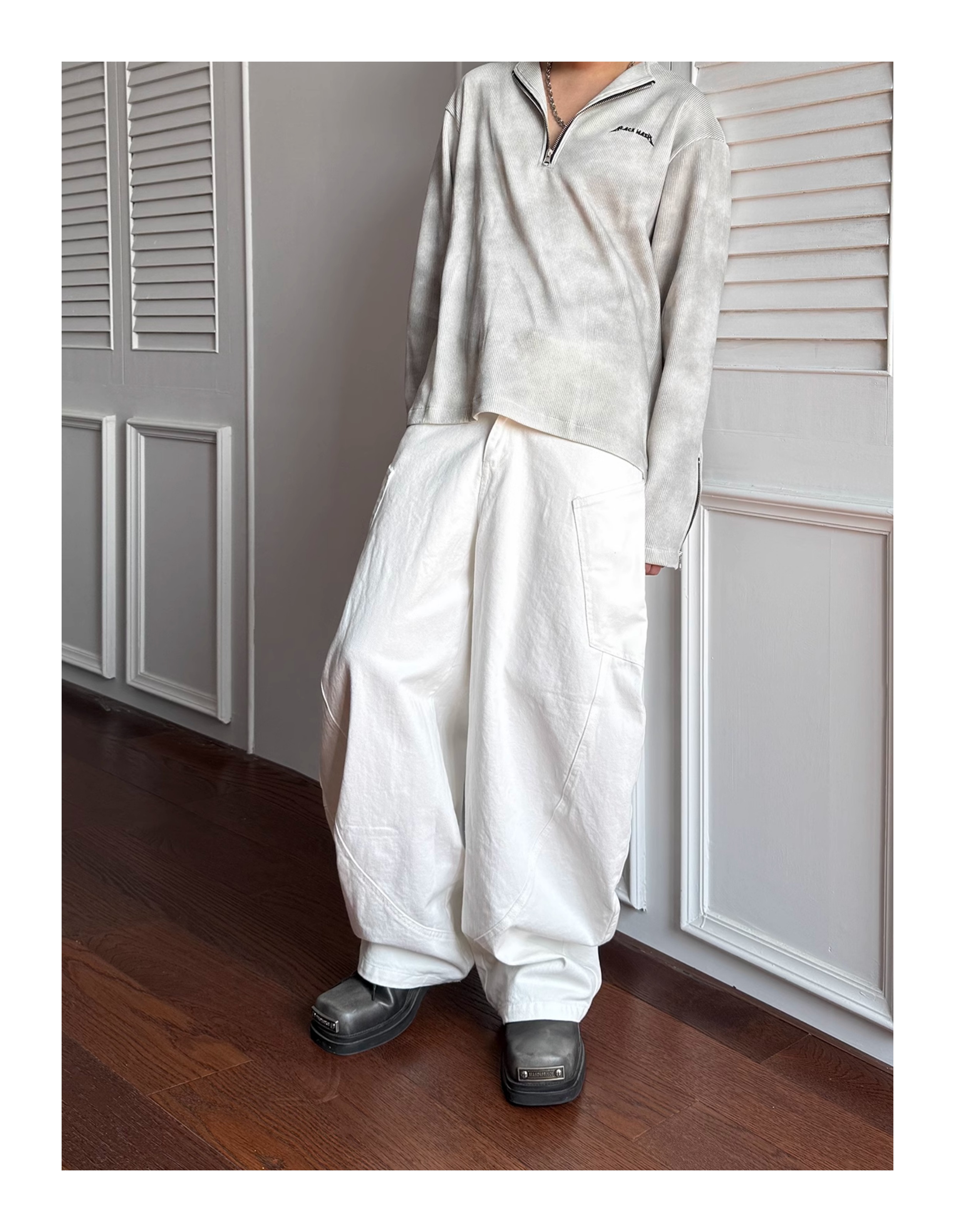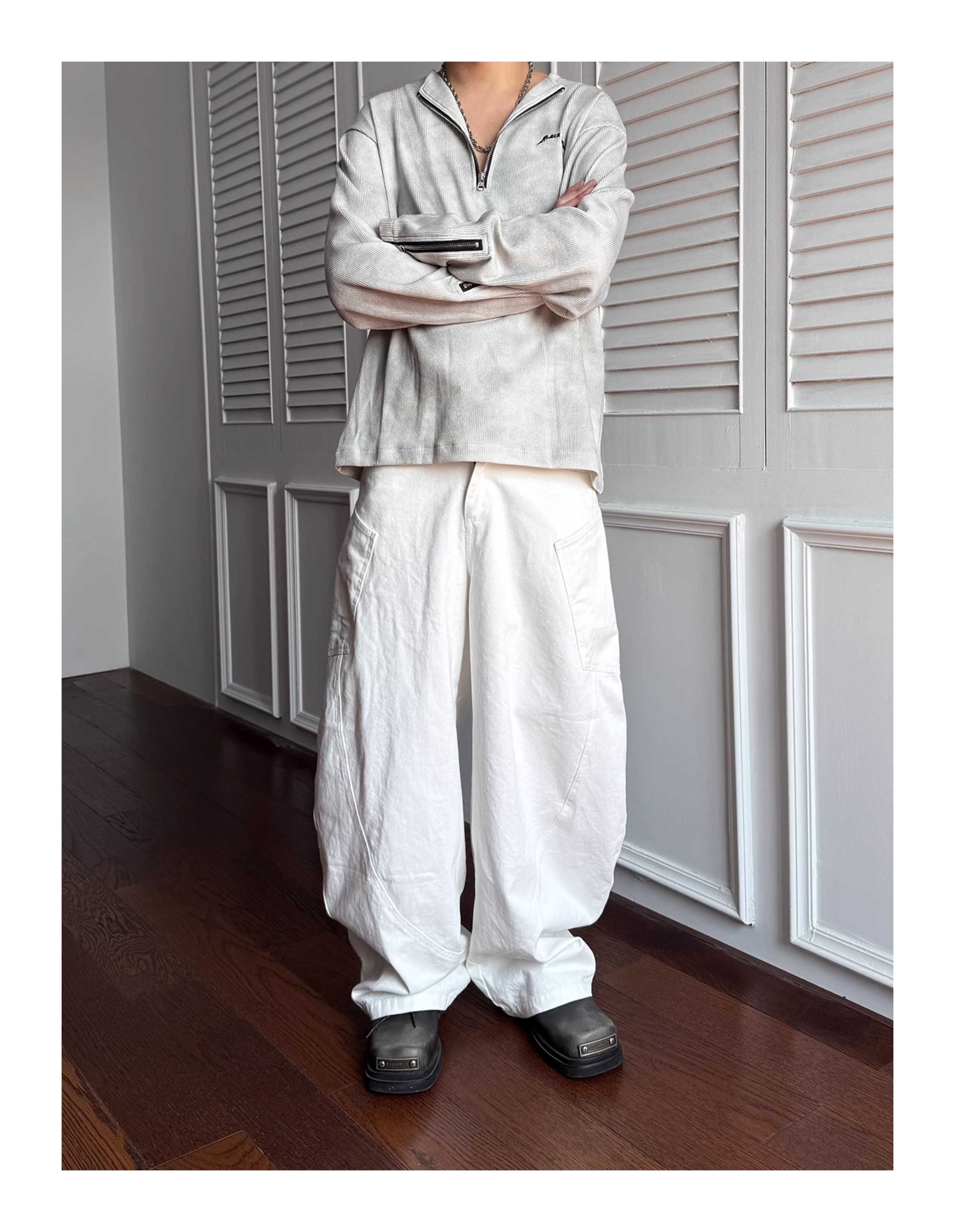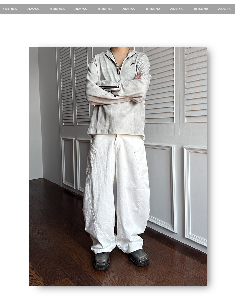 KUBU美式復古大口袋彎刀褲男痞帥高級感白色褲子寬松直筒濶腿褲潮