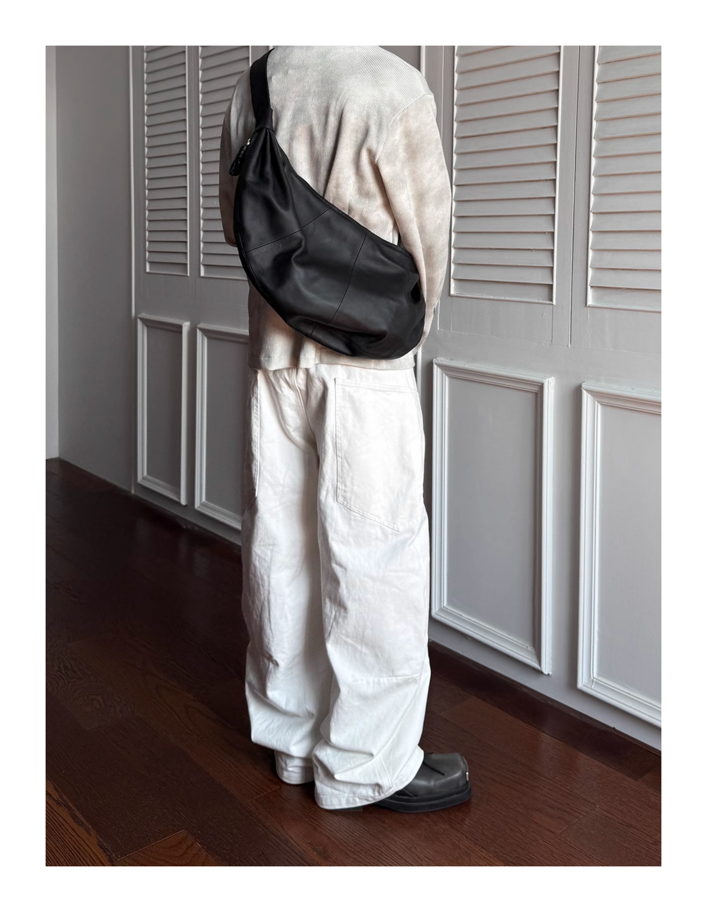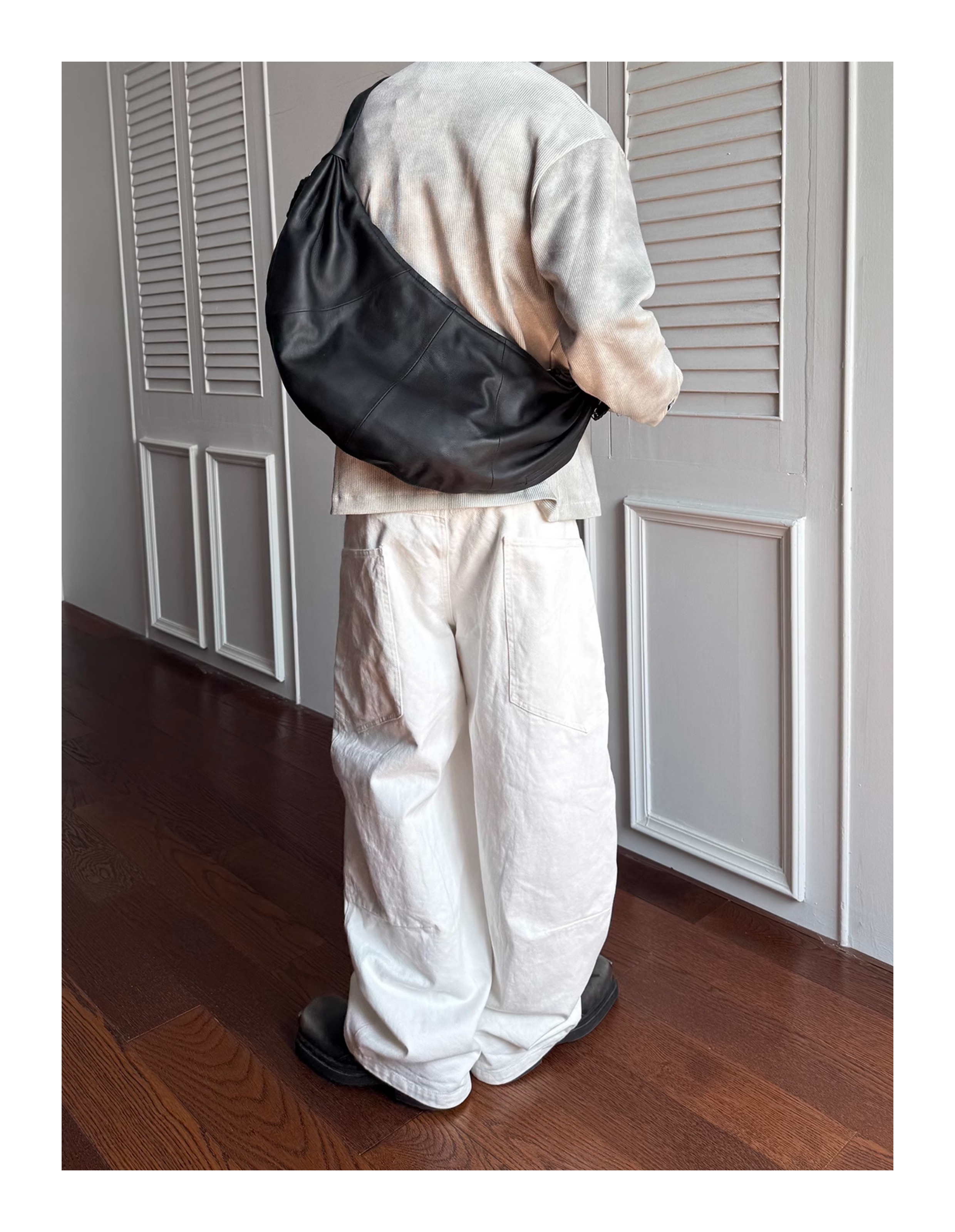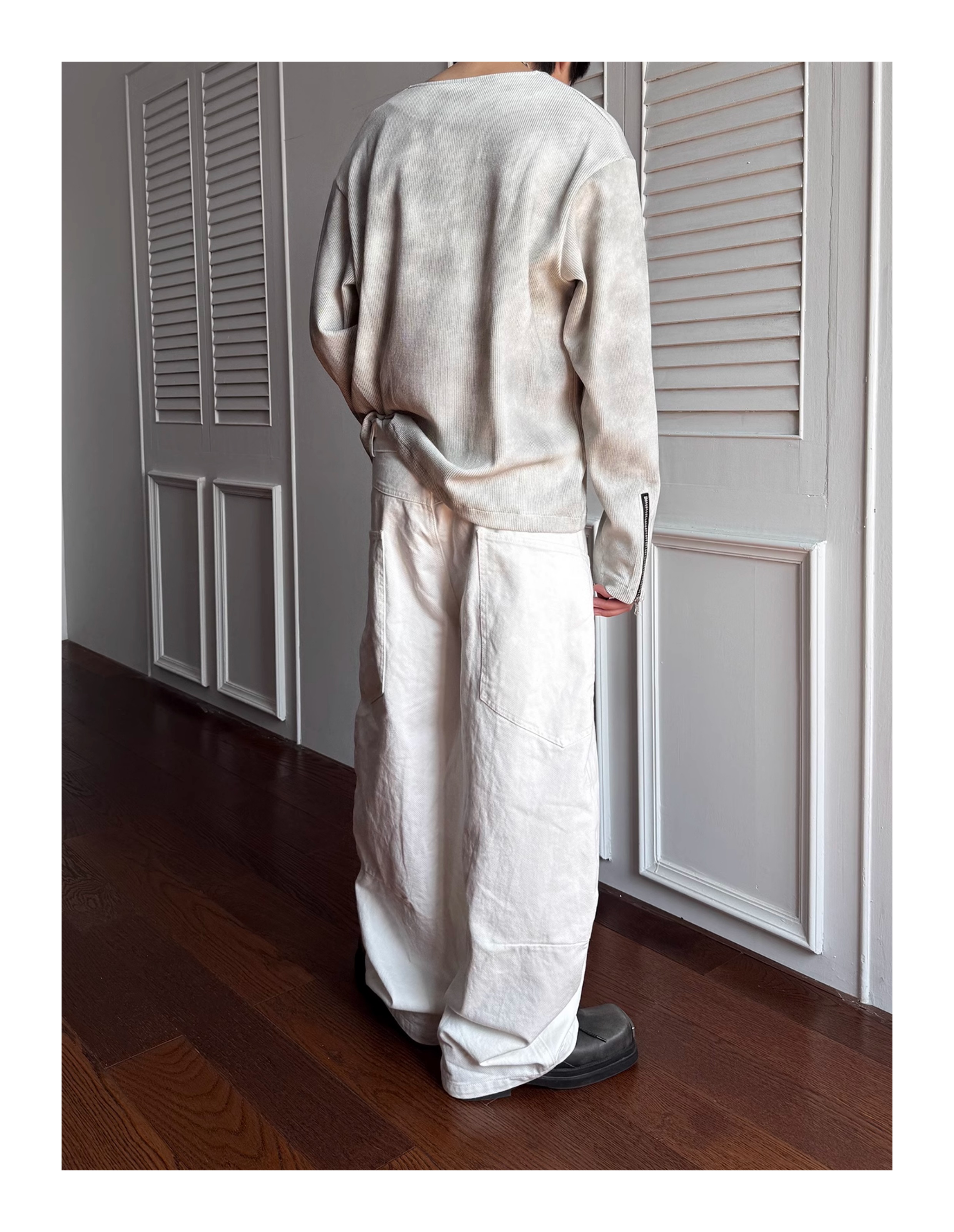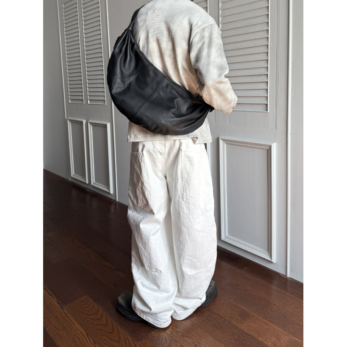 KUBU美式復古大口袋彎刀褲男痞帥高級感白色褲子寬松直筒濶腿褲潮