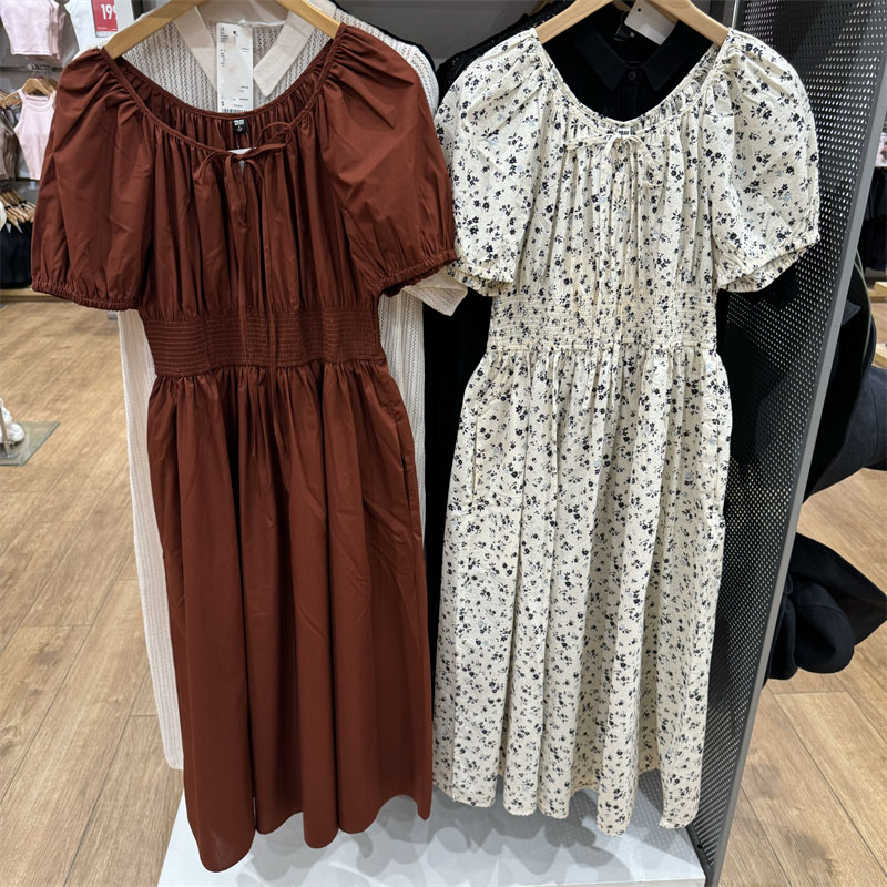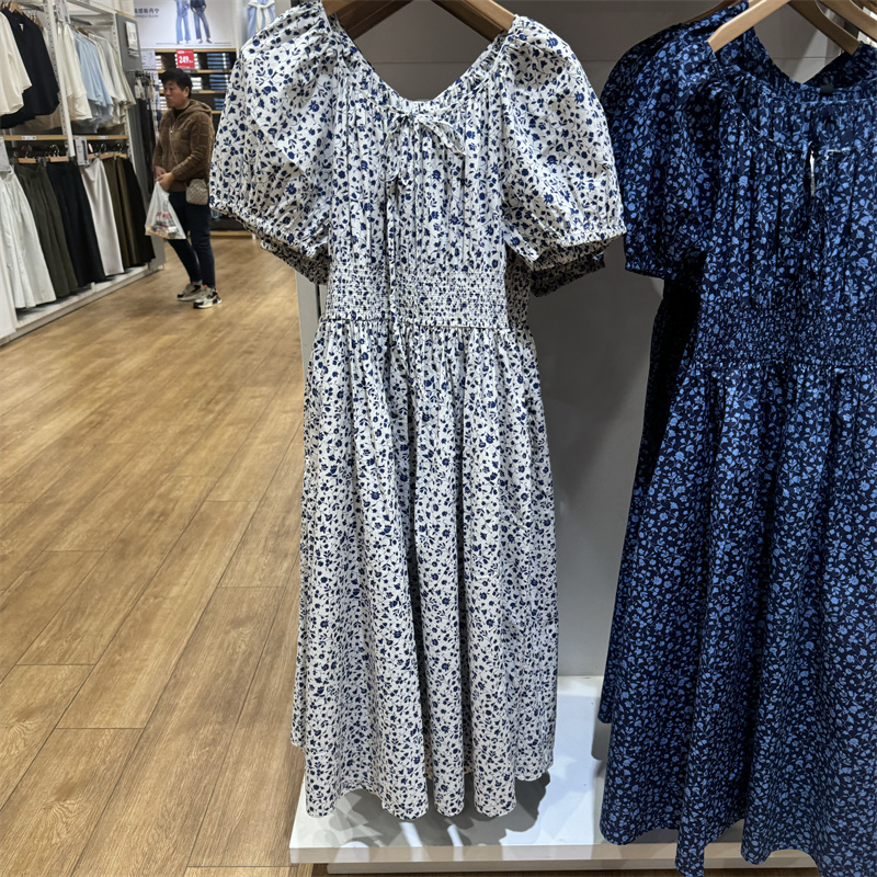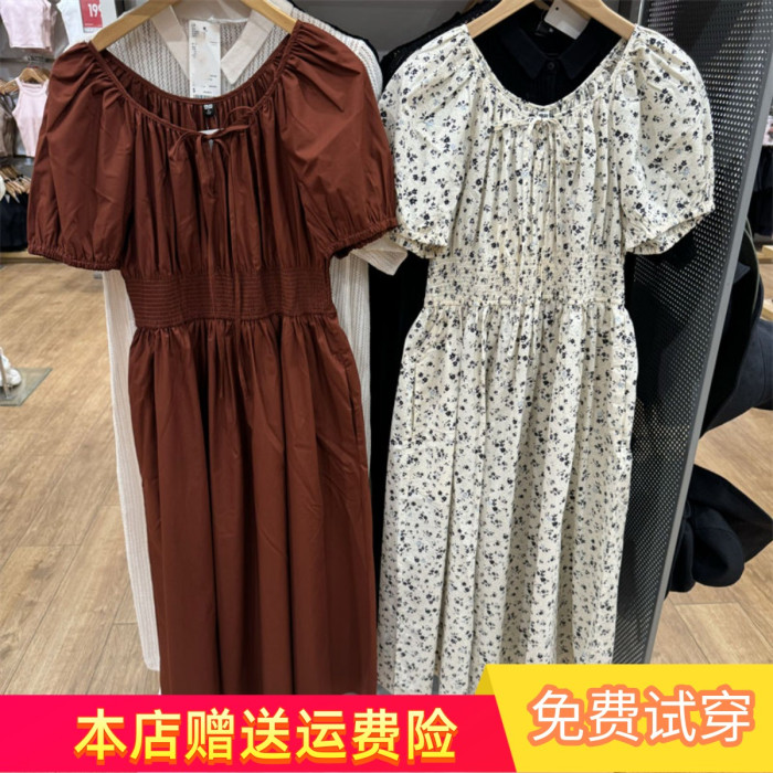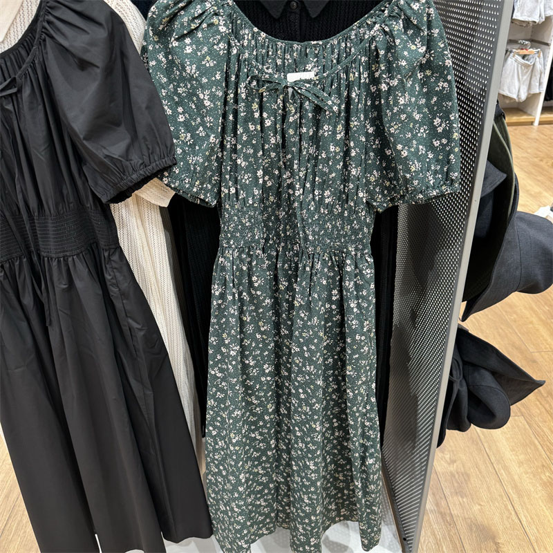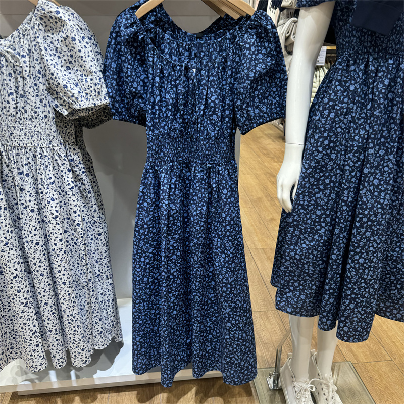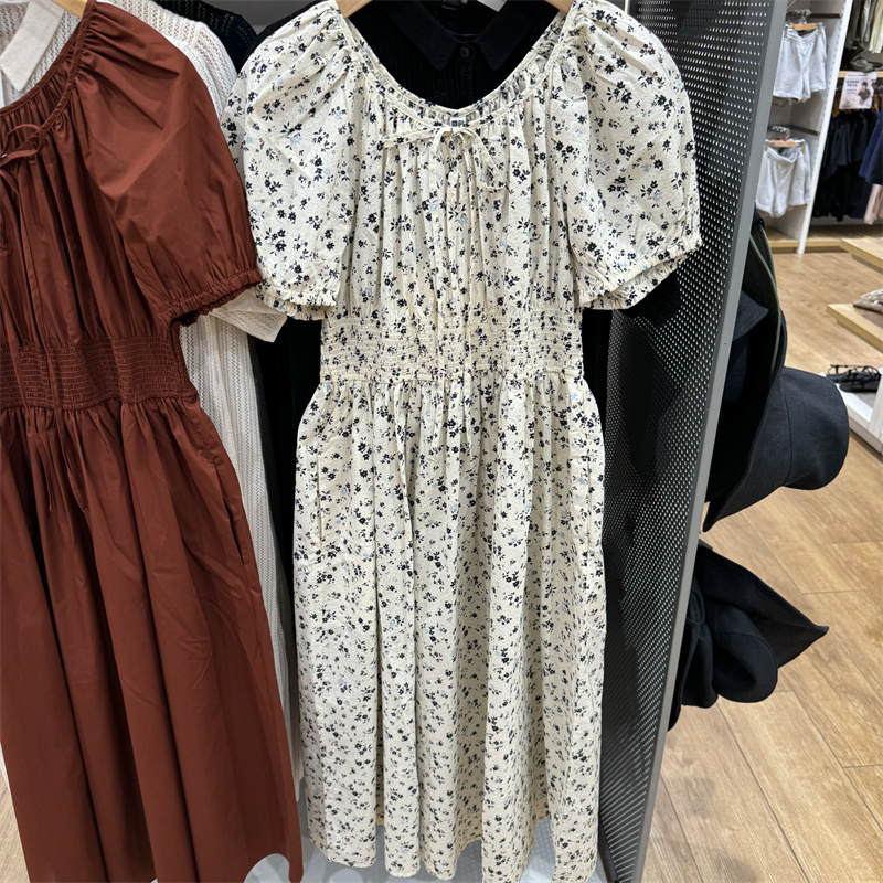 日單女裝泡泡袖印花顯瘦收腰短袖連衣裙24夏季長裙 473076 473075