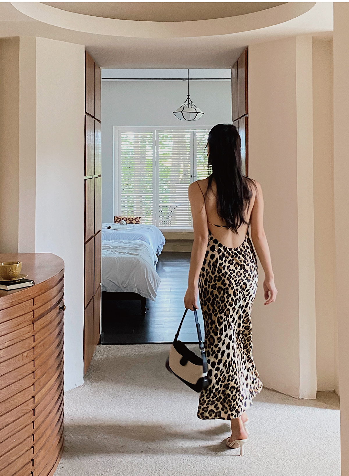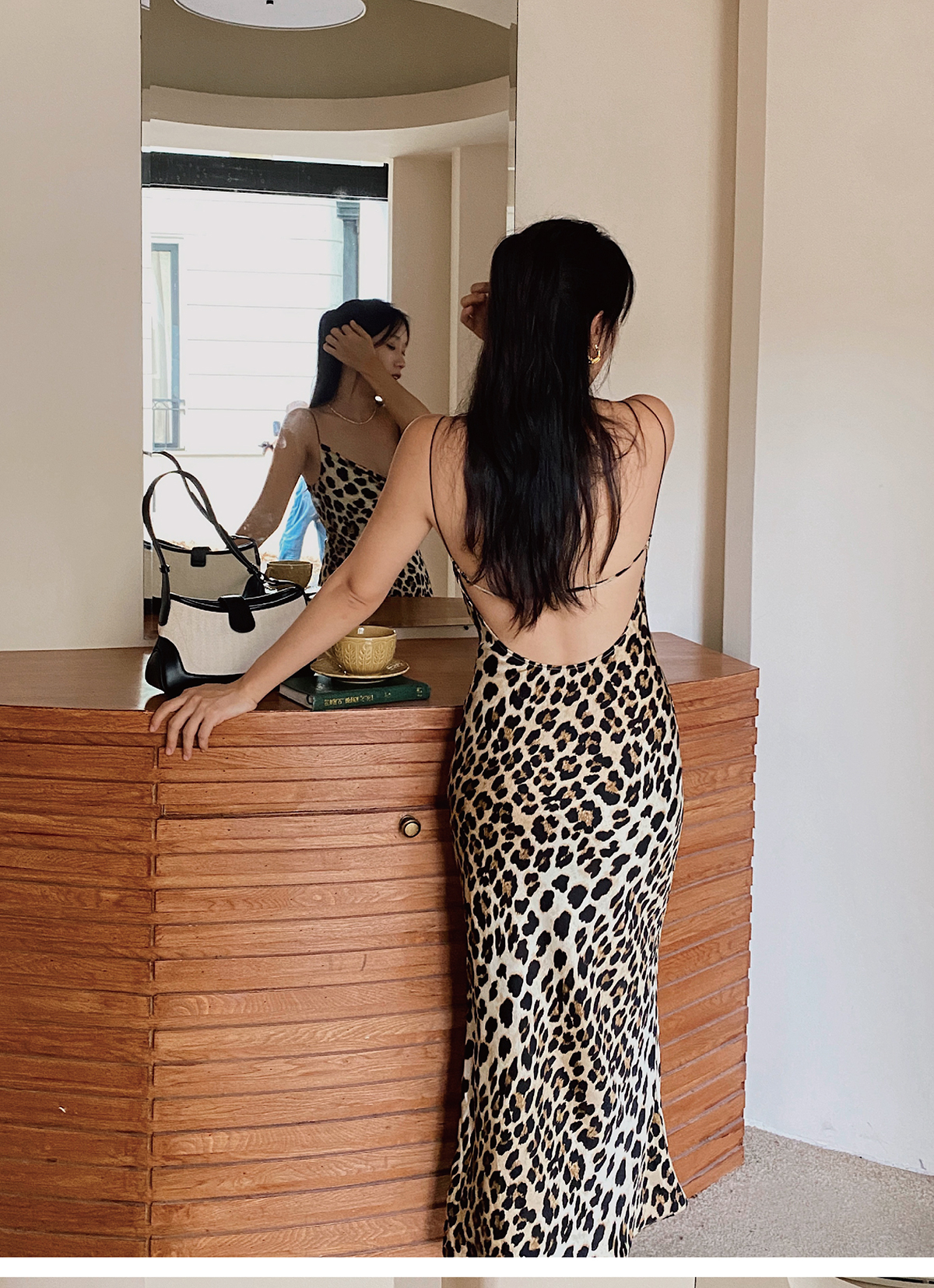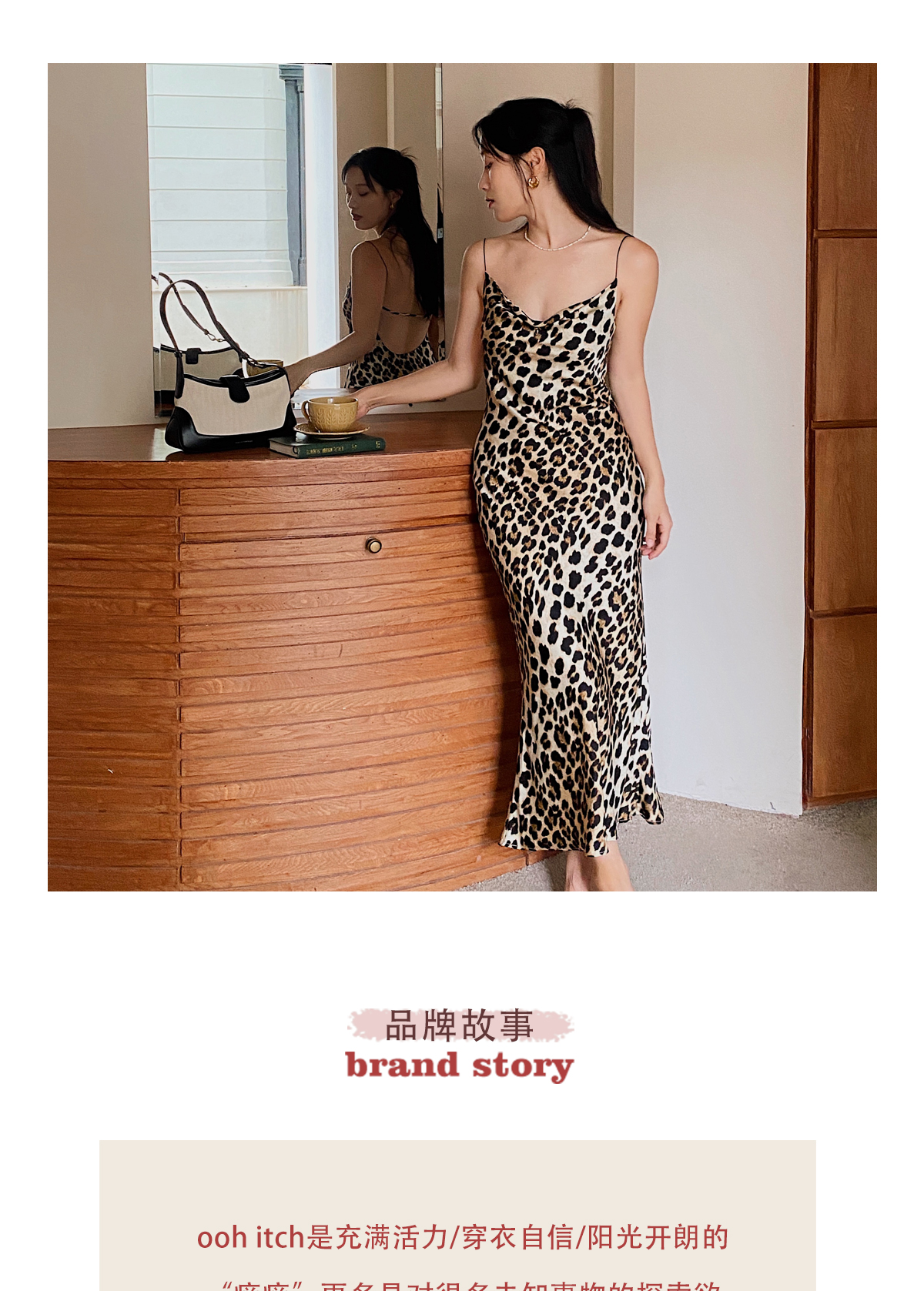 ooh itch癢癢 豹紋吊帶連衣裙法式蕩領性感大露背魚尾裙2024年秋