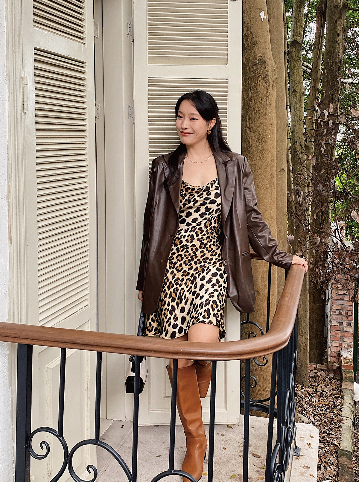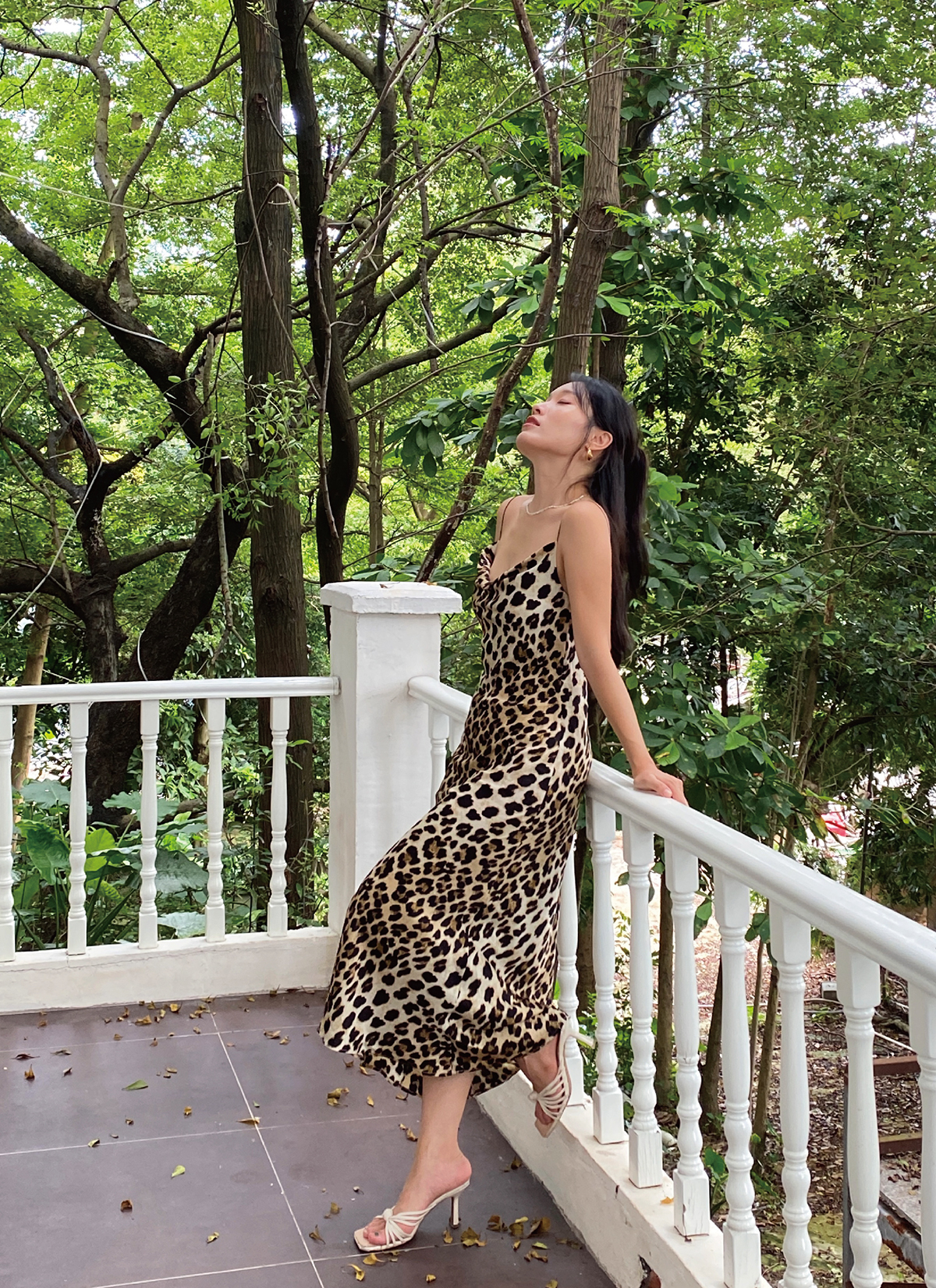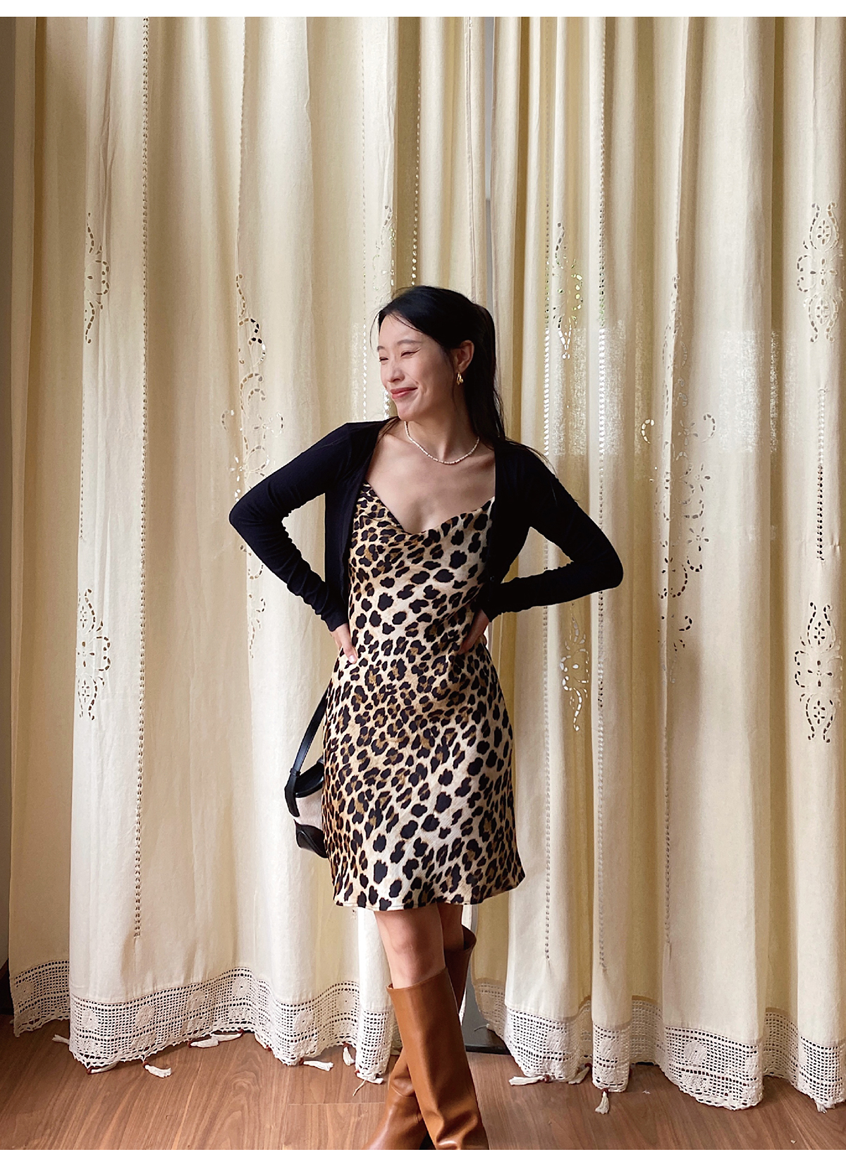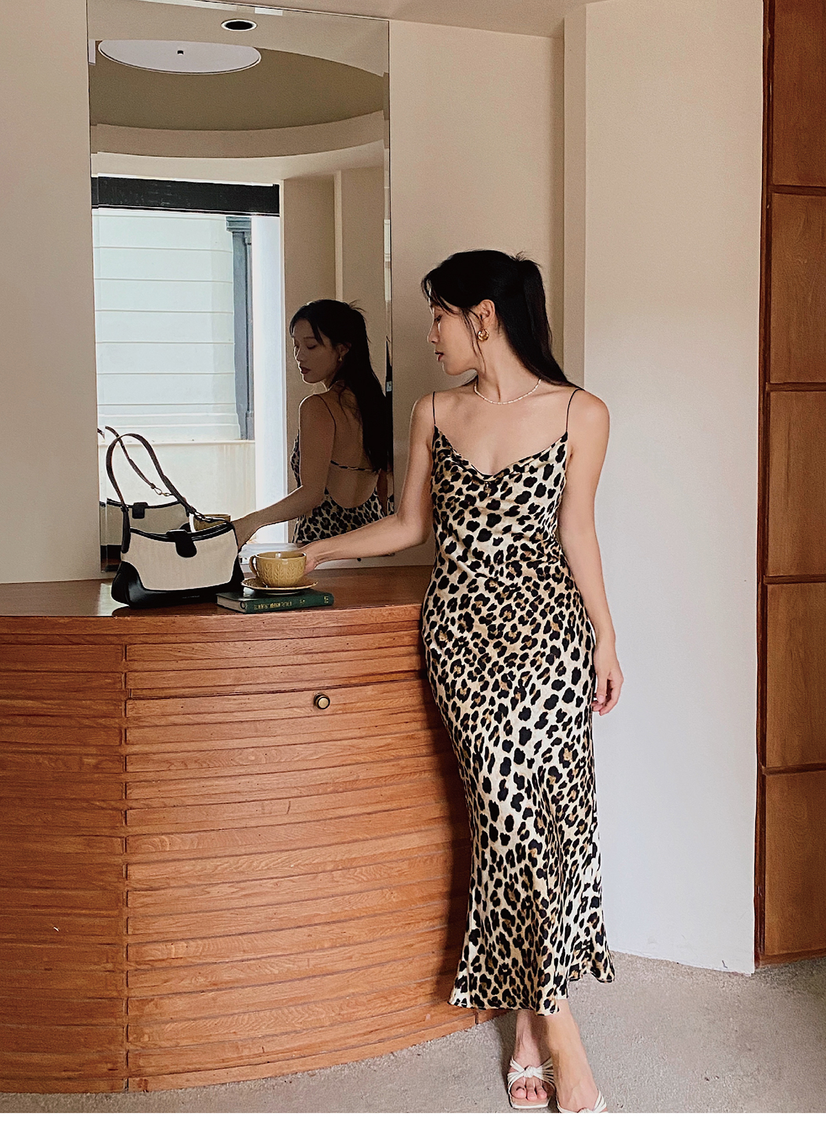 ooh itch癢癢 豹紋吊帶連衣裙法式蕩領性感大露背魚尾裙2024年秋