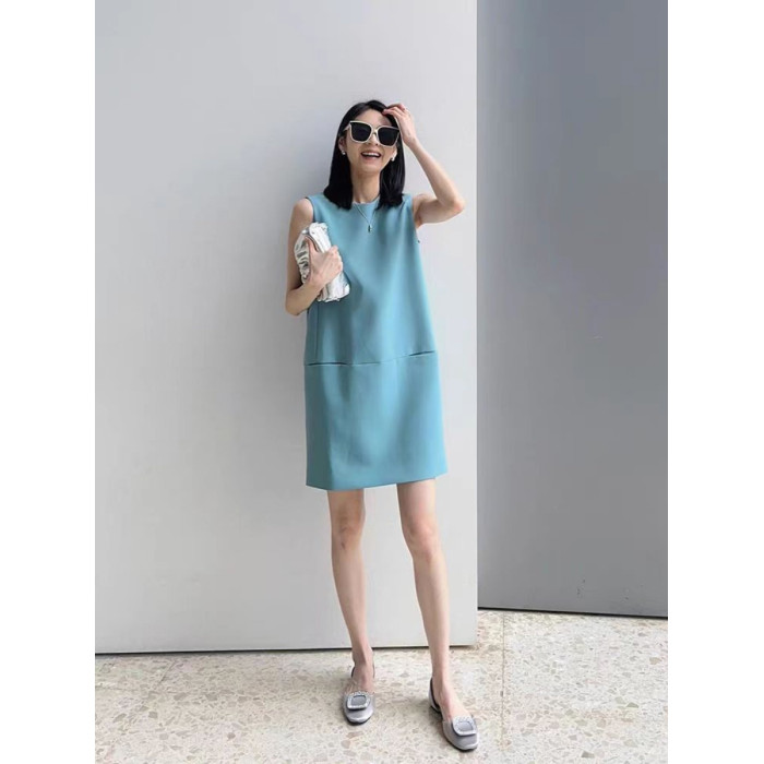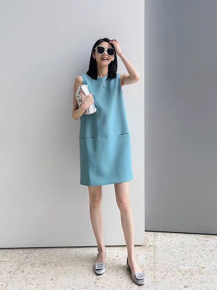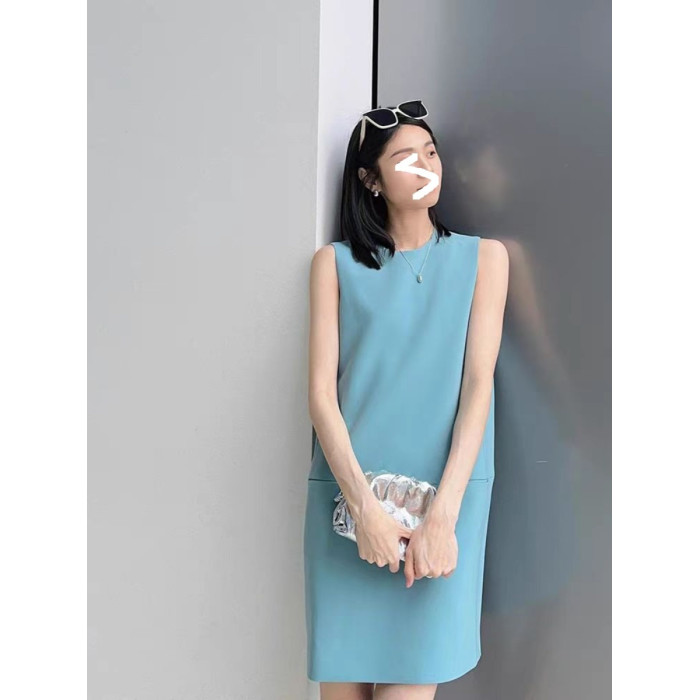 法式直筒裙高級感超好看夏季寬松顯瘦時尚休閒百搭無袖背心連衣裙