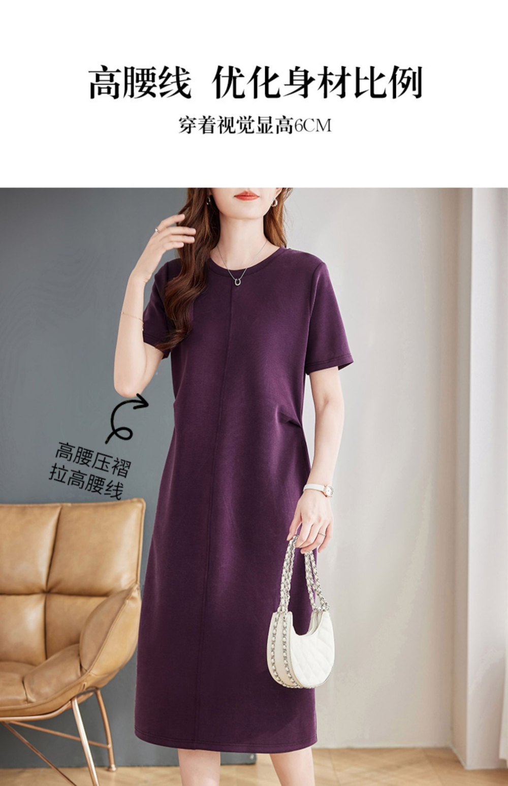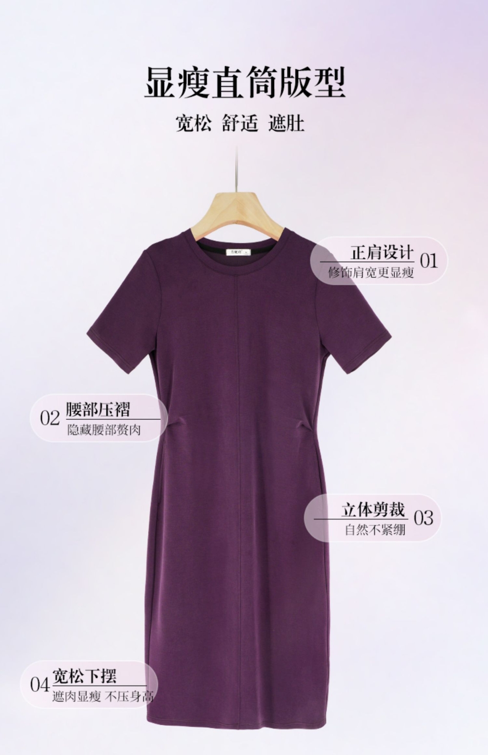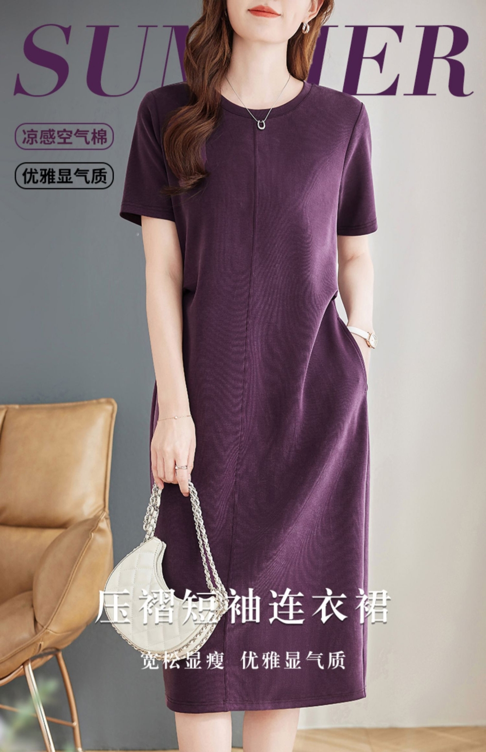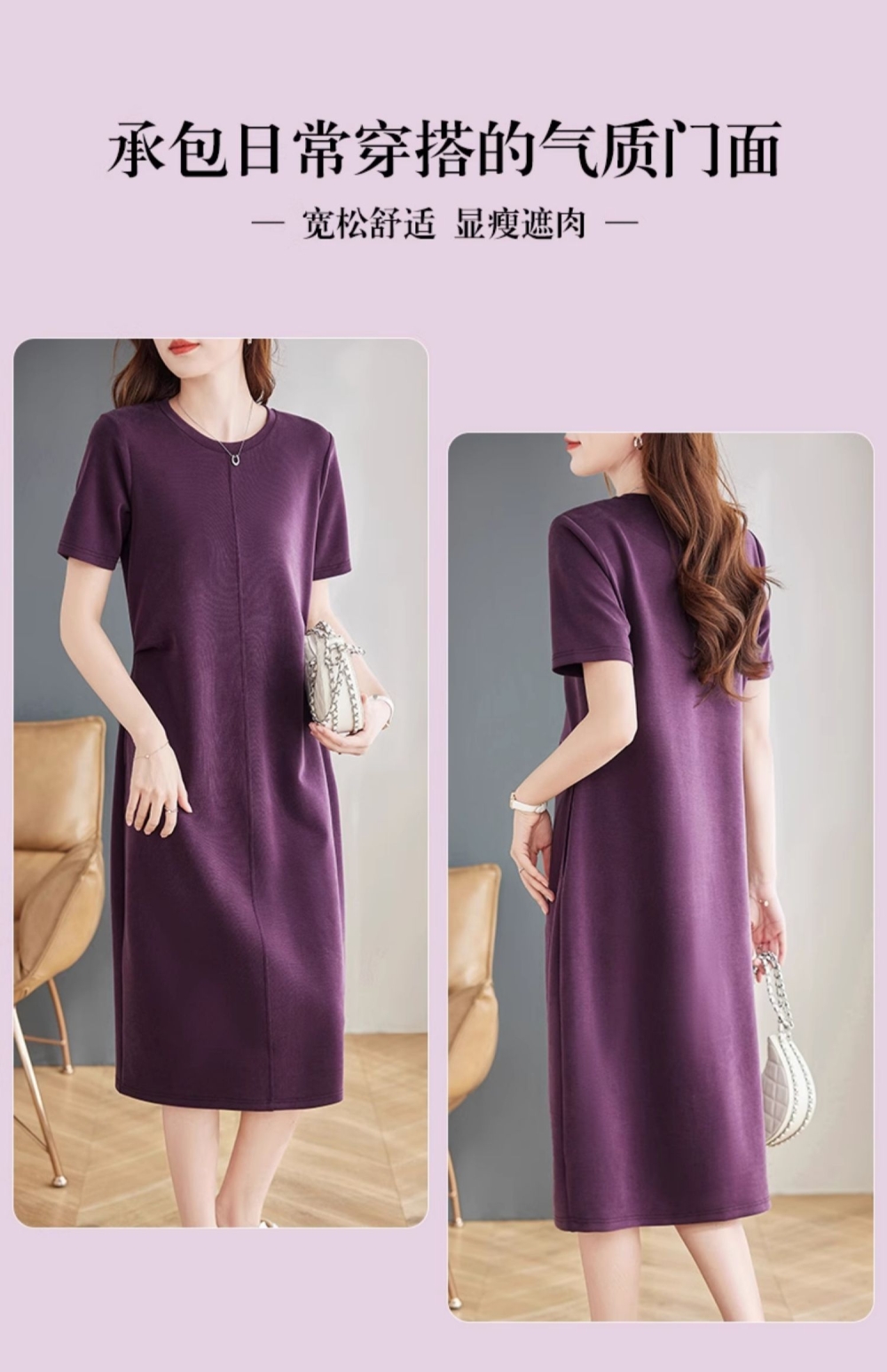 專櫃短袖連衣裙女士夏季2025年新款大碼女裝長款寬松直筒媽媽裙子