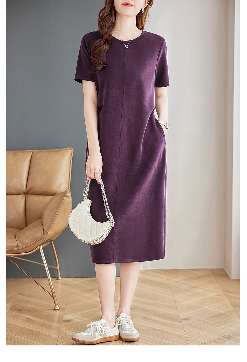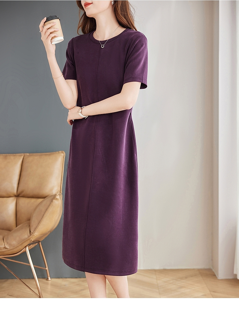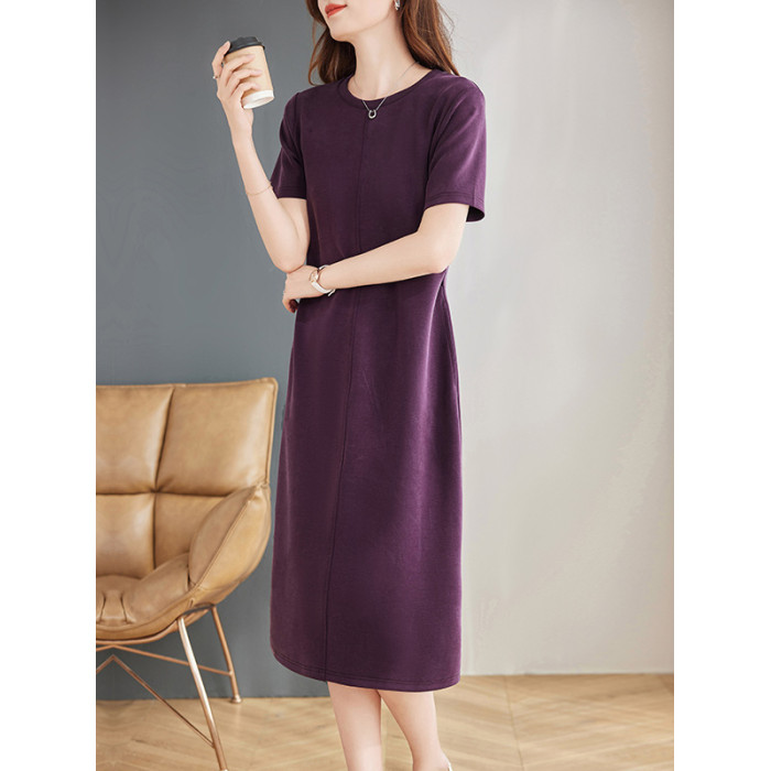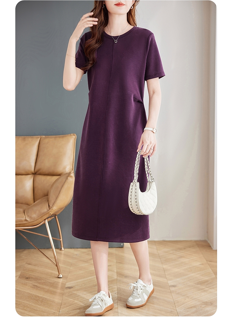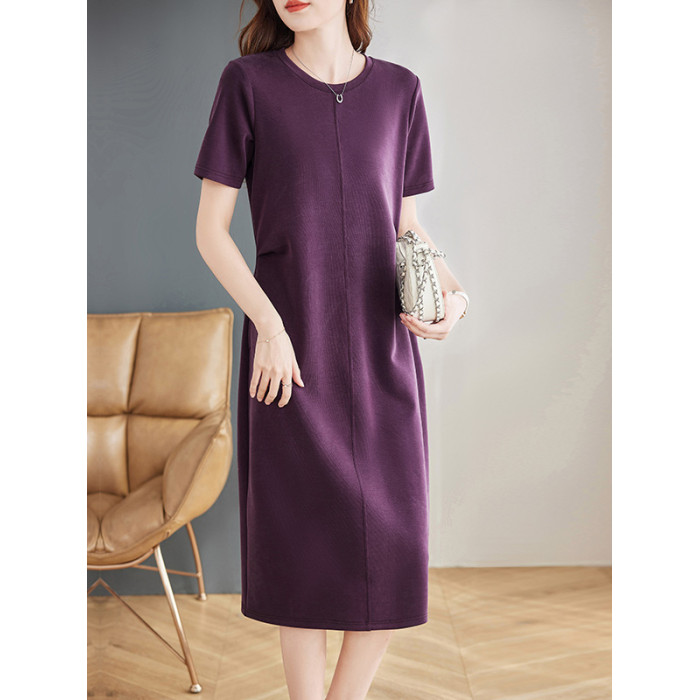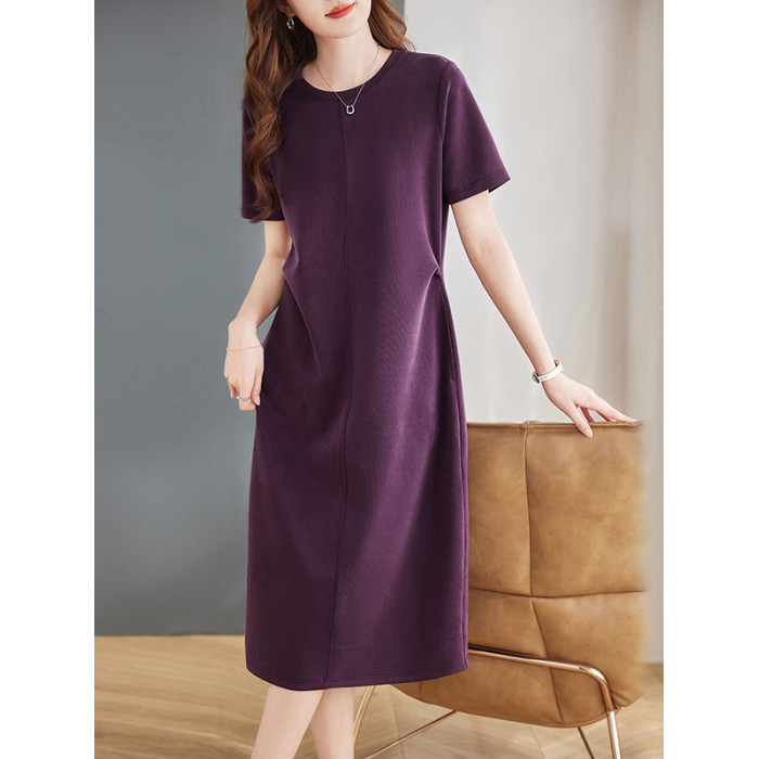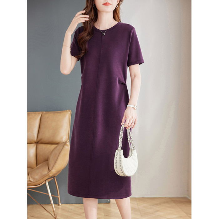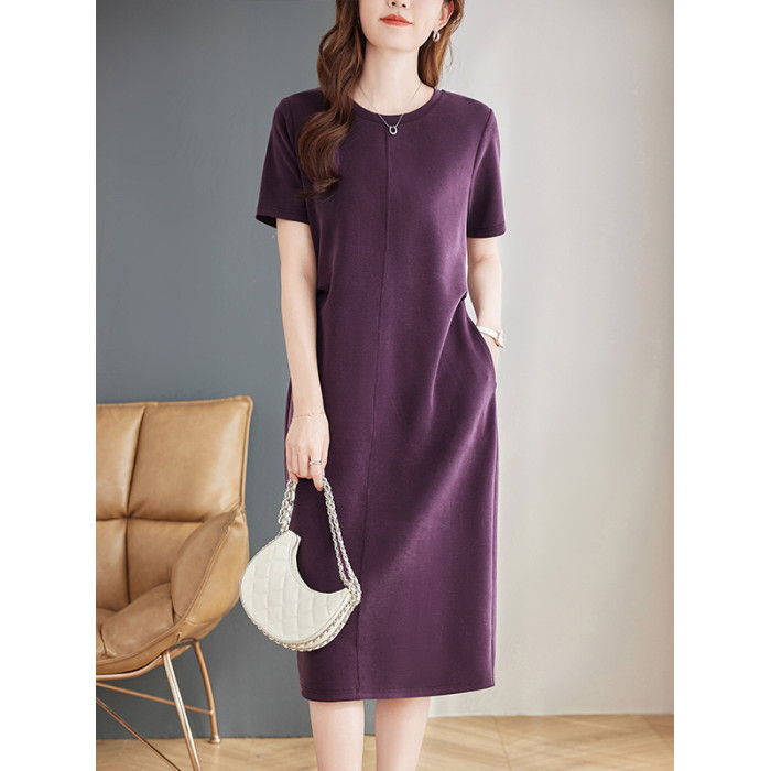 專櫃短袖連衣裙女士夏季2025年新款大碼女裝長款寬松直筒媽媽裙子