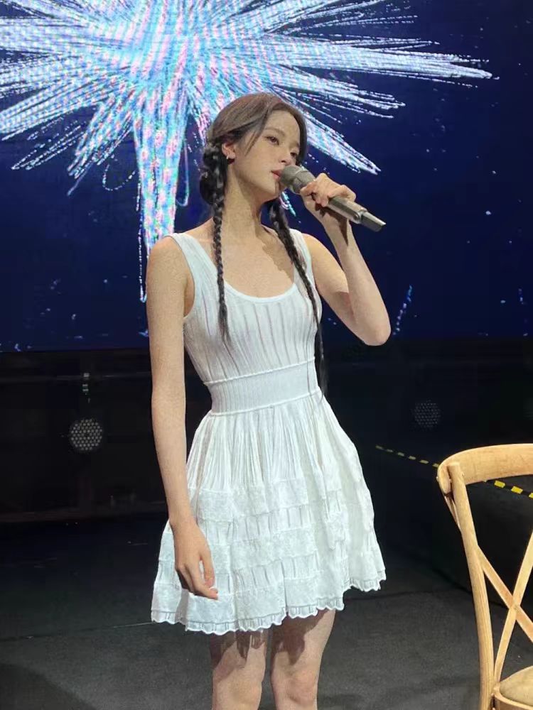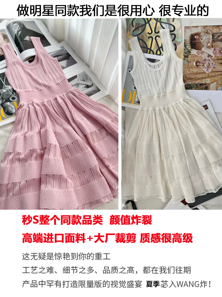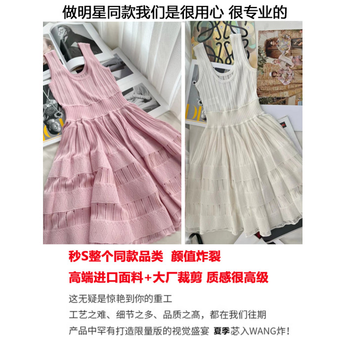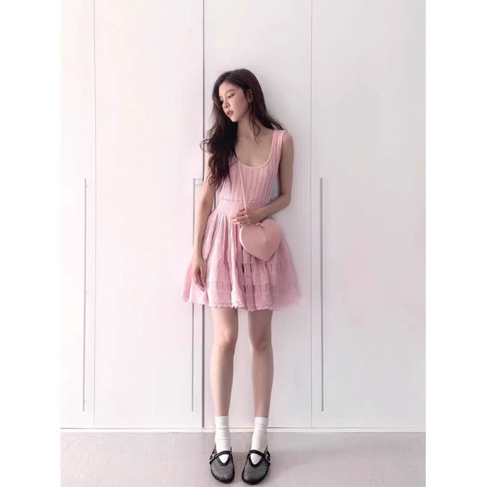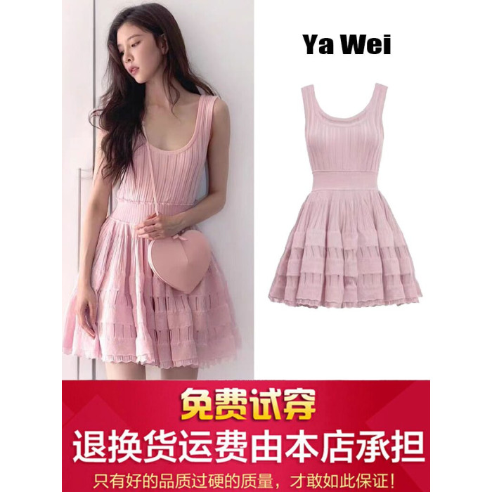 宋妍霏同款粉色無袖背心針織吊帶連衣裙女夏季2025新款小個子裙子