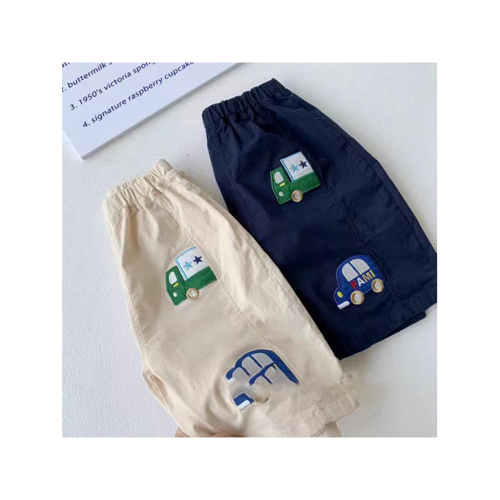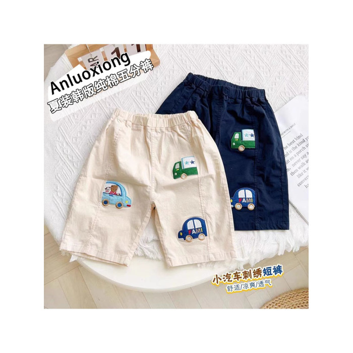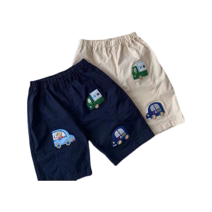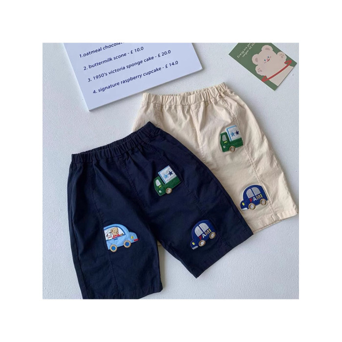 兒童短褲夏季新款韓版百搭男童卡通小汽車純棉五分褲休閒洋氣褲子
